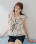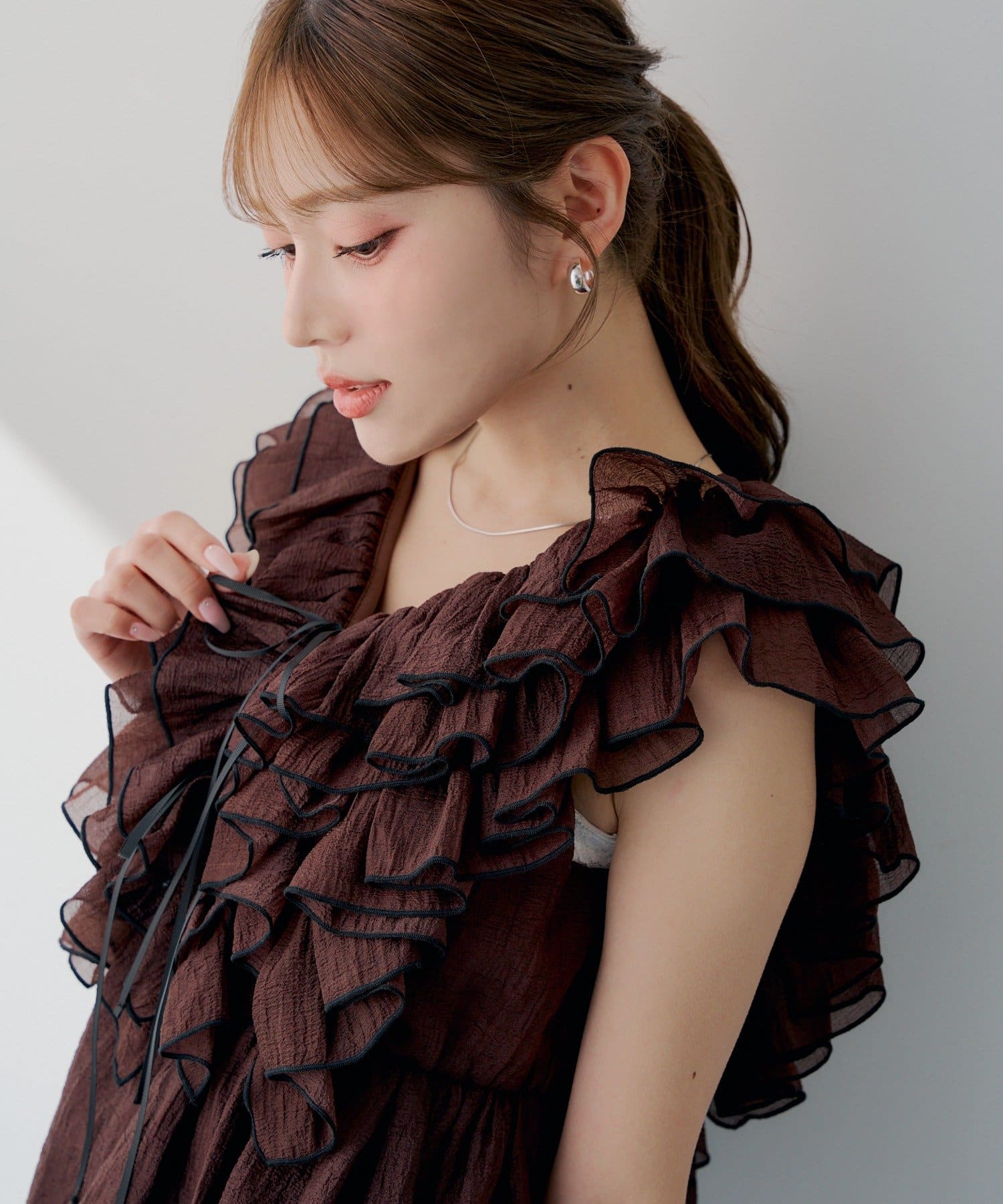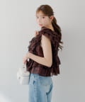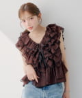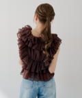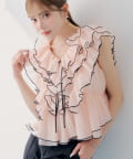・軽やかなシアー素材で、甘さの中に抜け感をプラスしてくれます。胸元のリボンディテールが女性らしさを引き立てる一枚です。