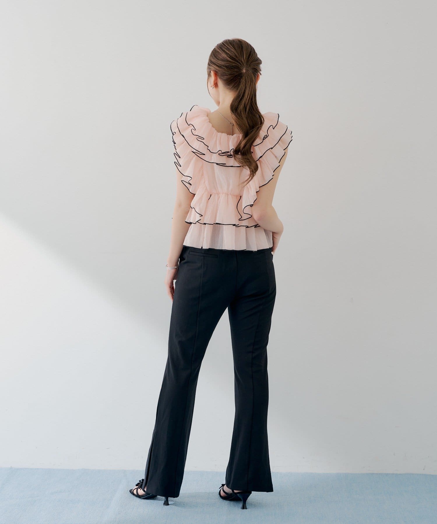 【SALON by Chico】バイカラーラッフルフリルペプラムブラウス