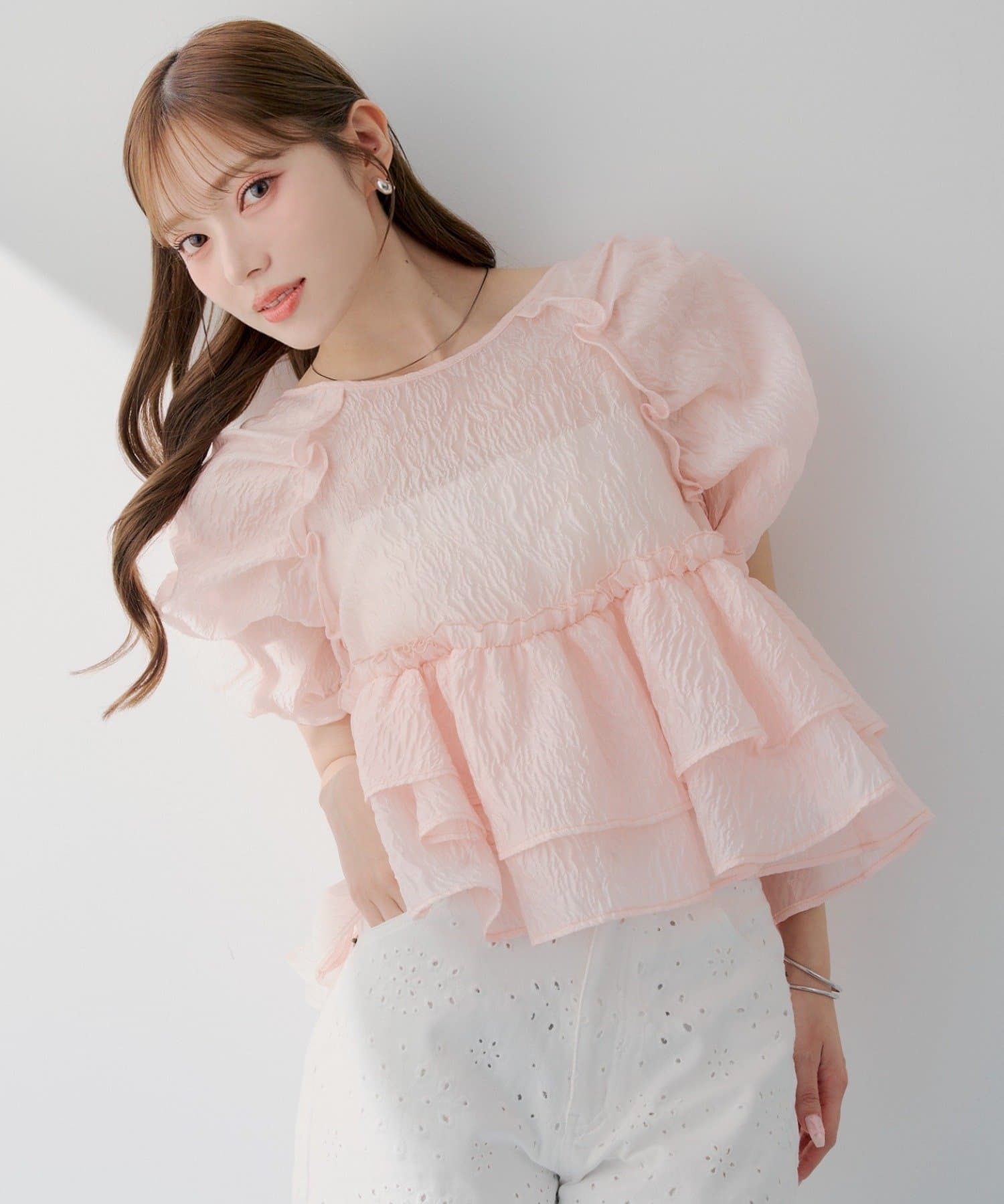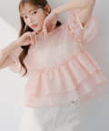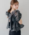 ・ボリュームパフスリーブ×バックリボンで後ろ姿まで抜かりなく華やかな印象に。シアー素材で