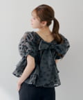 【SALON by Chico】デザインパフ袖バックリボンペプラムブラウス