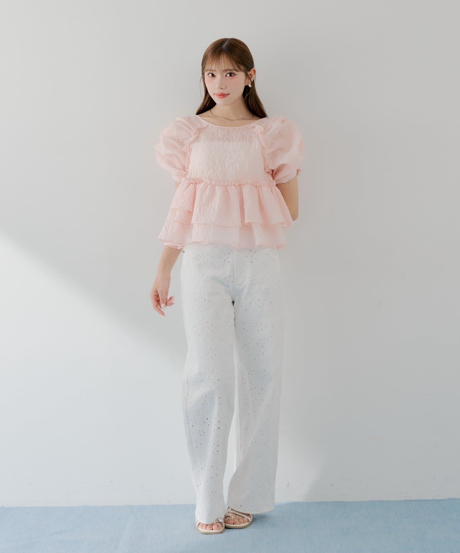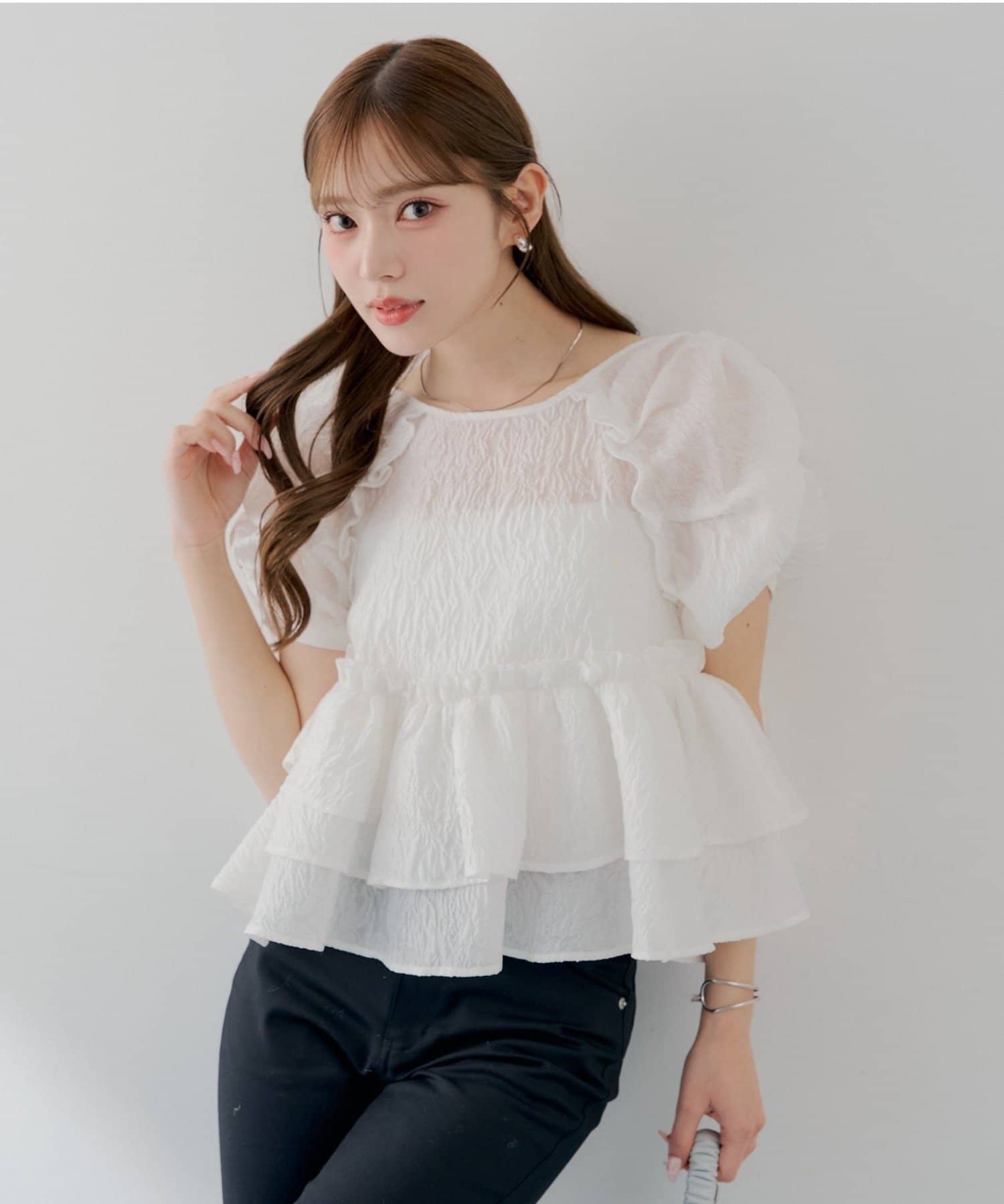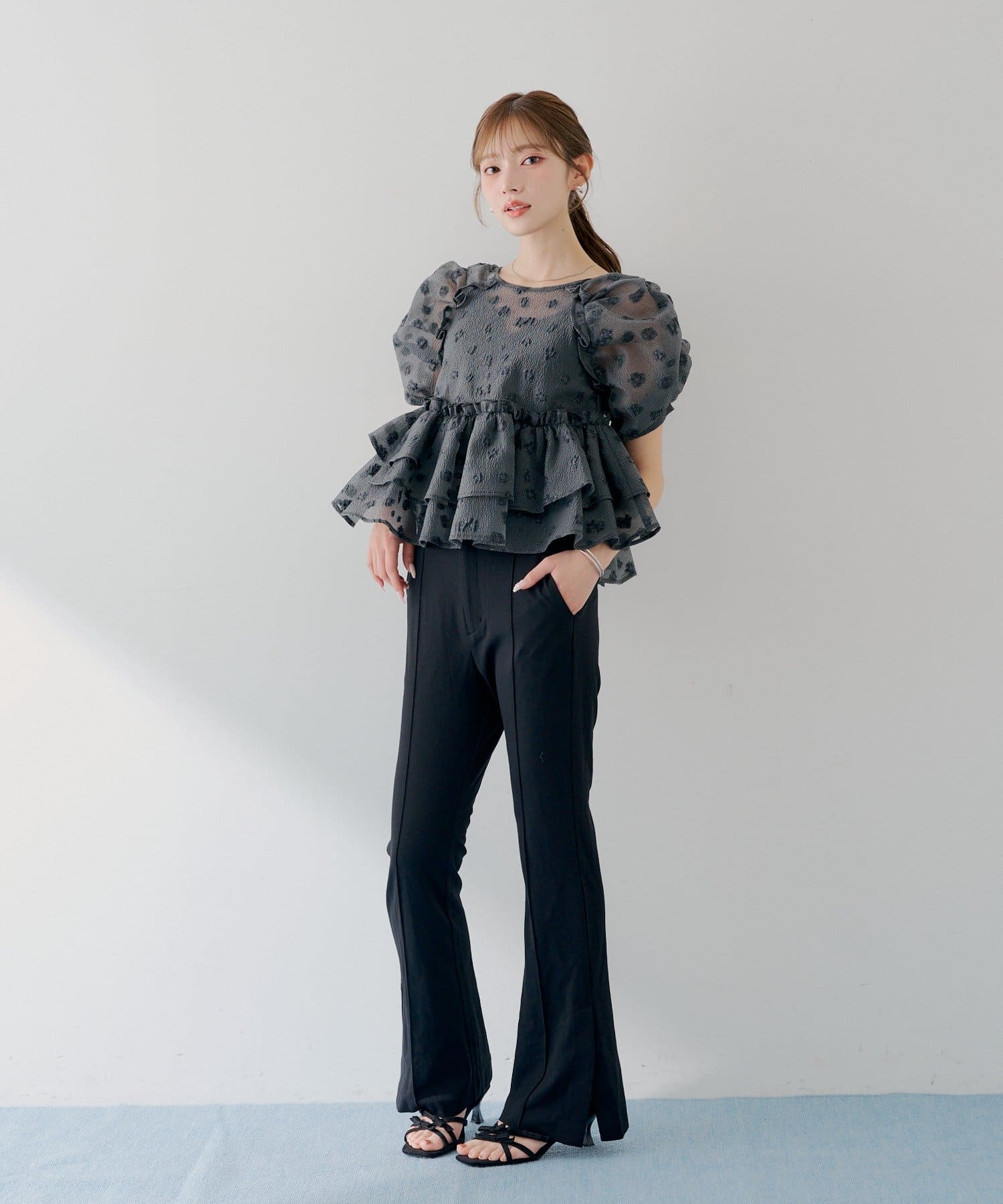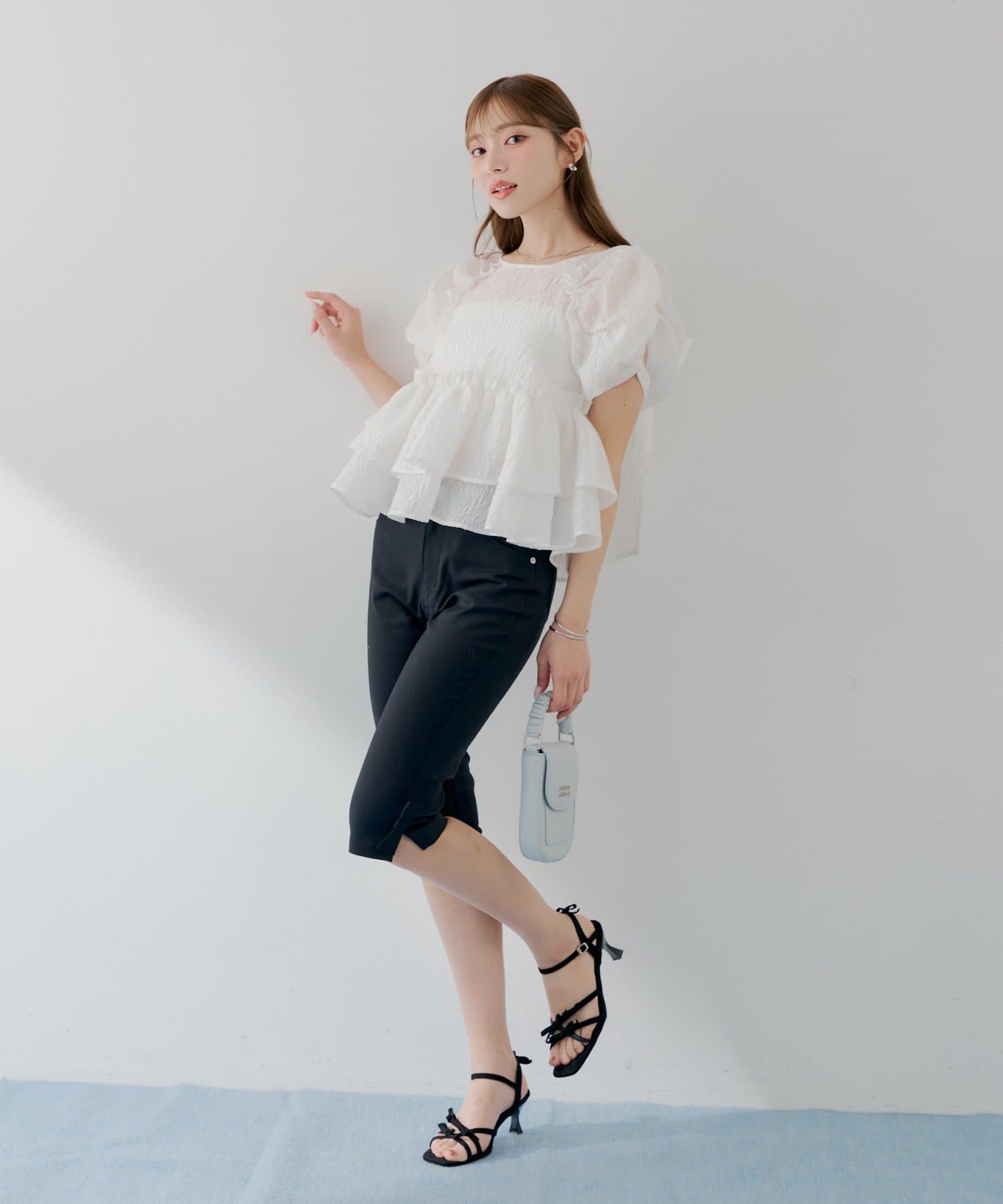 ・ふんわりとしたペプラムシルエットで自然にスタイルアップが叶う一枚