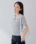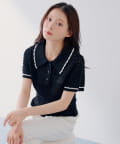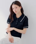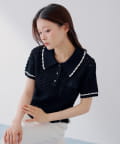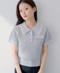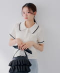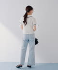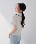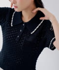 【SALON by Chico】クロシェポロ袖ラインサマーニット