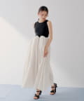 ・上身頃はすっきりとしたリブ素材、スカート部分は表情のあるふんわり素材でメリハリのあるシルエット