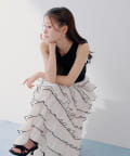 コンパクトなリブトップス×軽やかなシフォン素材で、