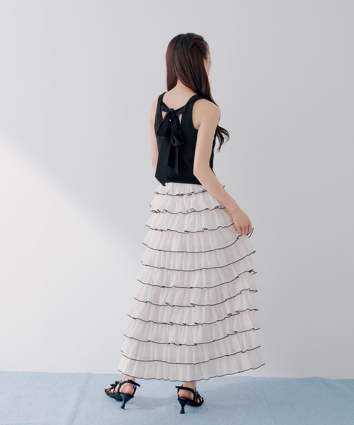 ・ふんわり広がる段々スカートで、動きのある女性らしい印象