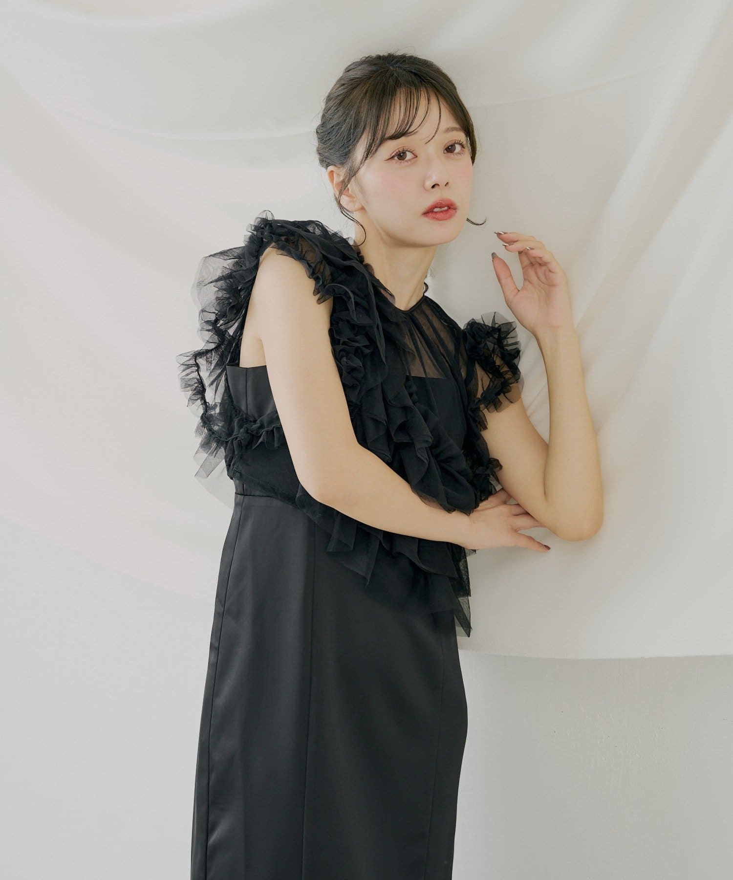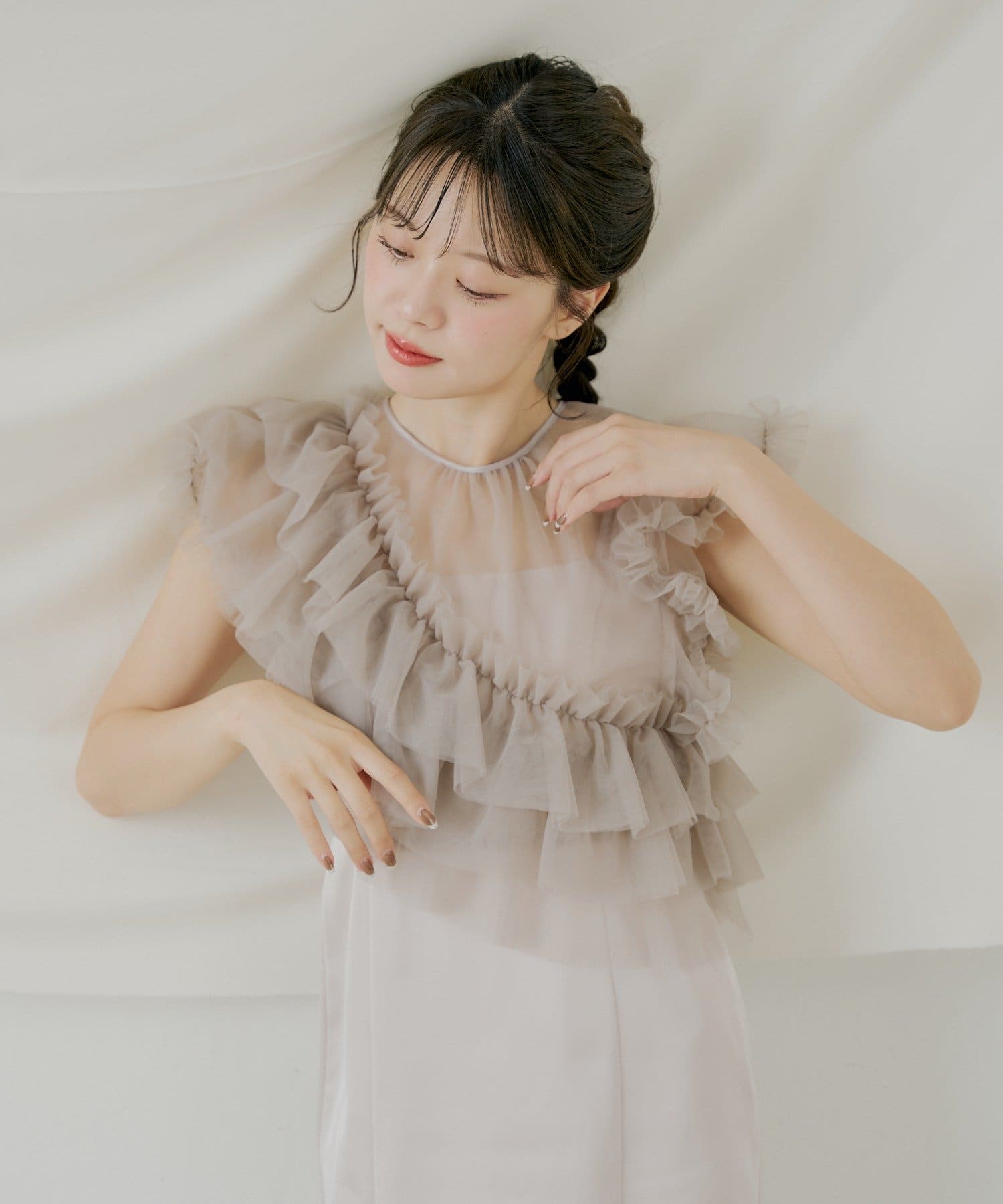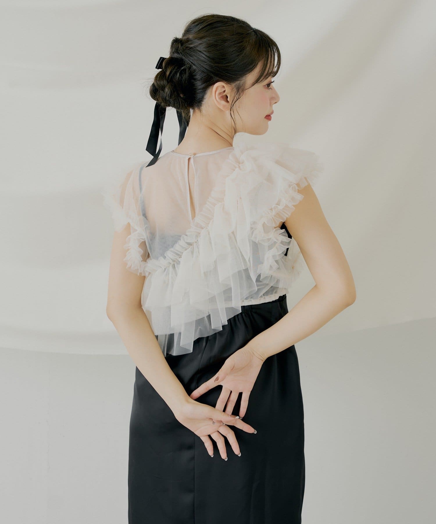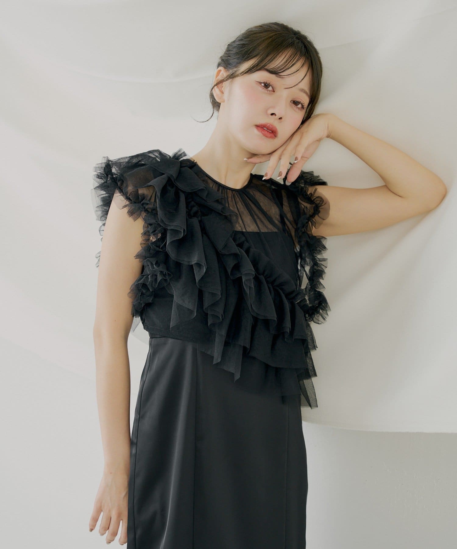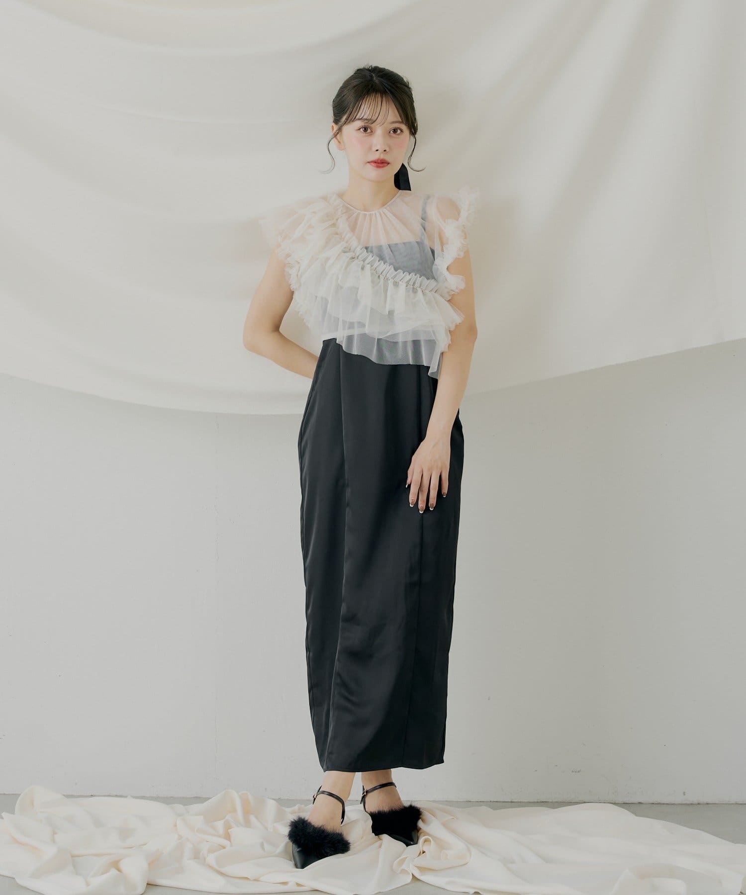 【オケージョン】アシメフリルトップス+キャミワンピース【SALON by Chico】
