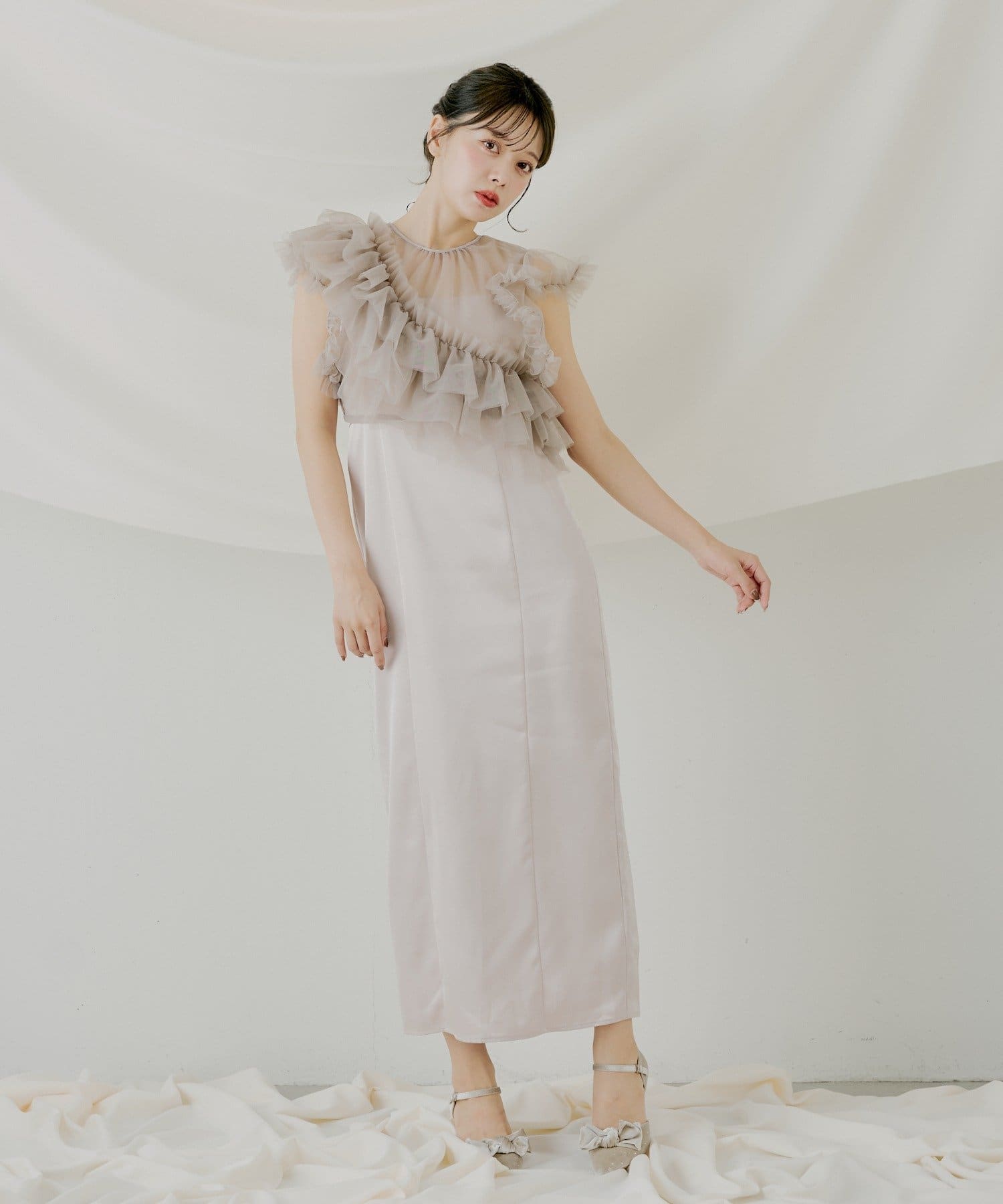 アシメフリルトップスがセットになった一枚で着映えるオケージョンワンピース!