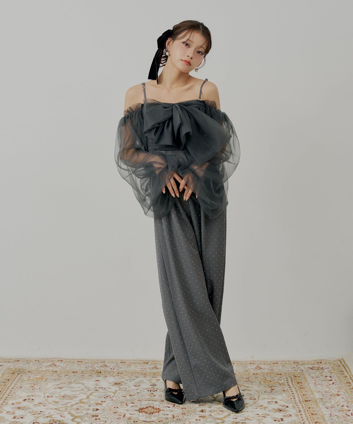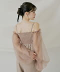 ・肩を少し落としてオフショルダーとしても着ても可愛くておすすめです。