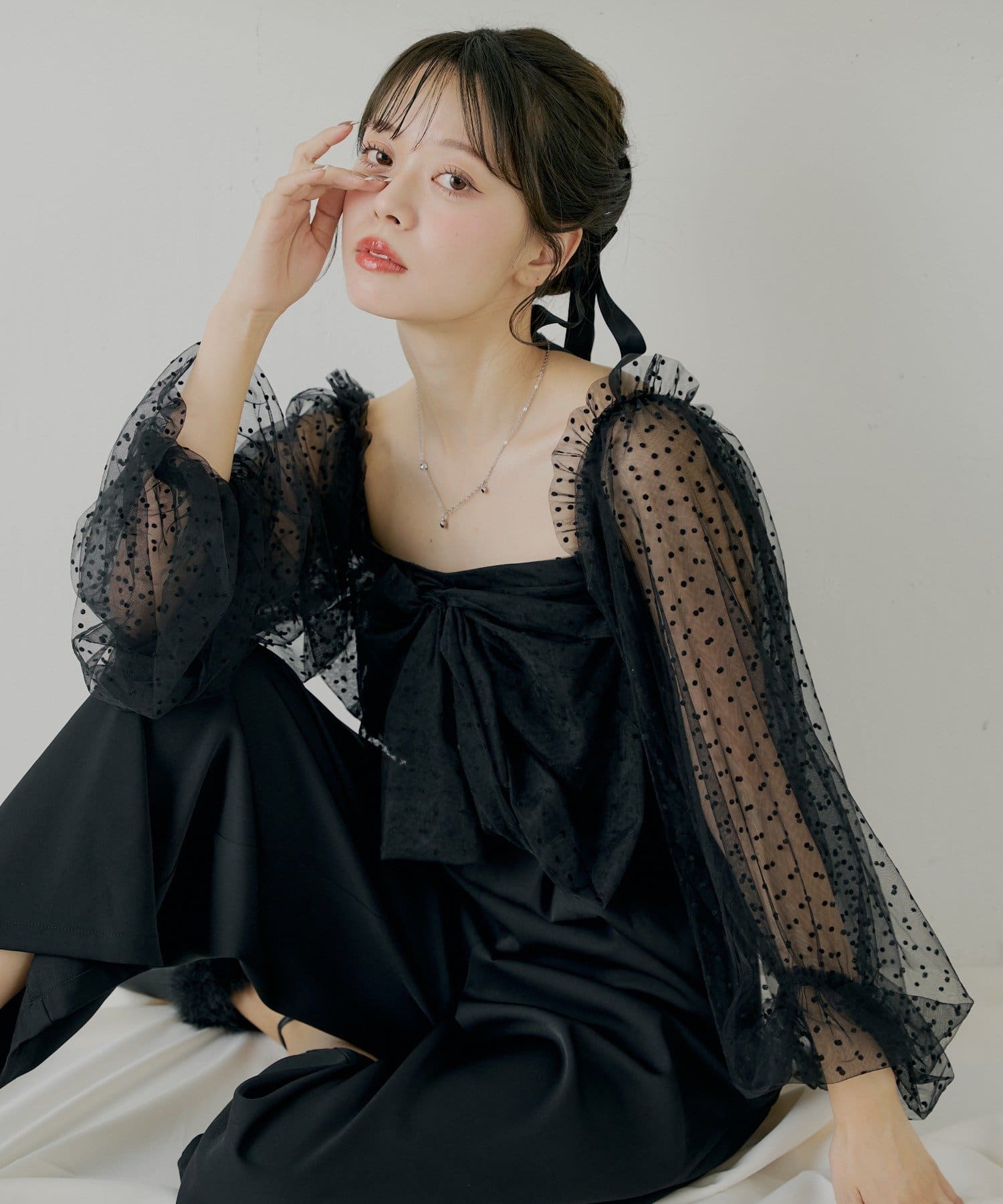 ・立体感のあるフロントリボンが、顔周りを華やかに彩ります。