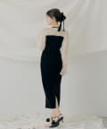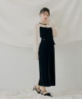【オケージョン】配色シアーリボンベロアワンピース【SALON by Chico】