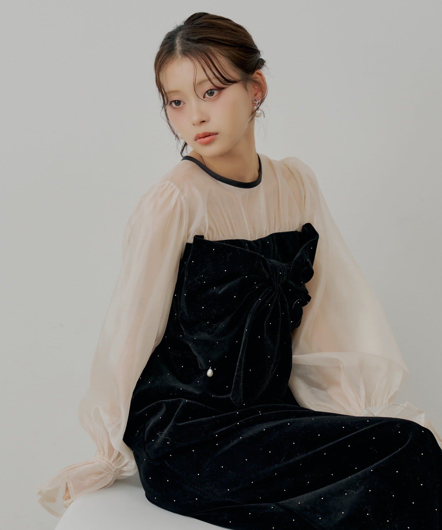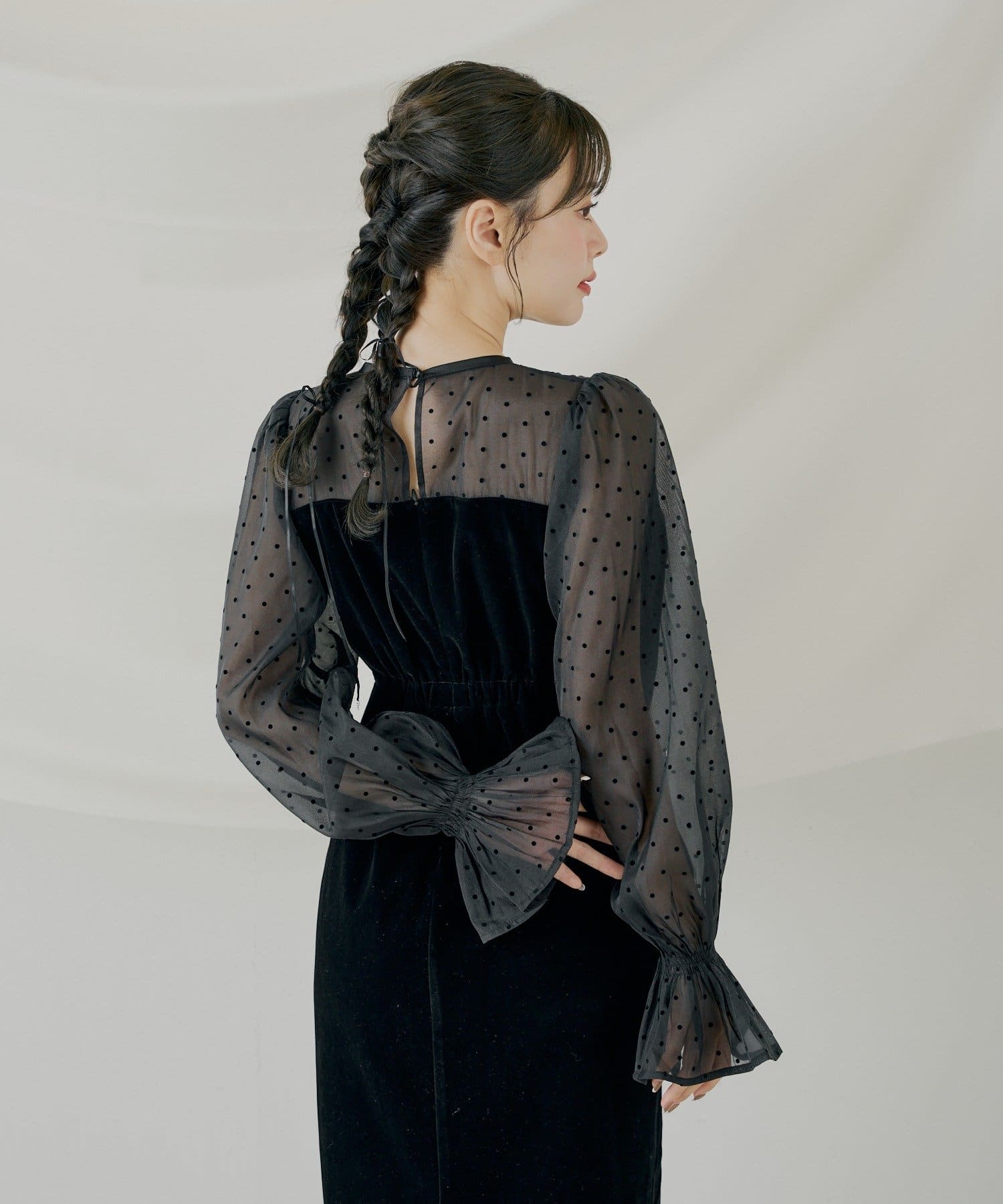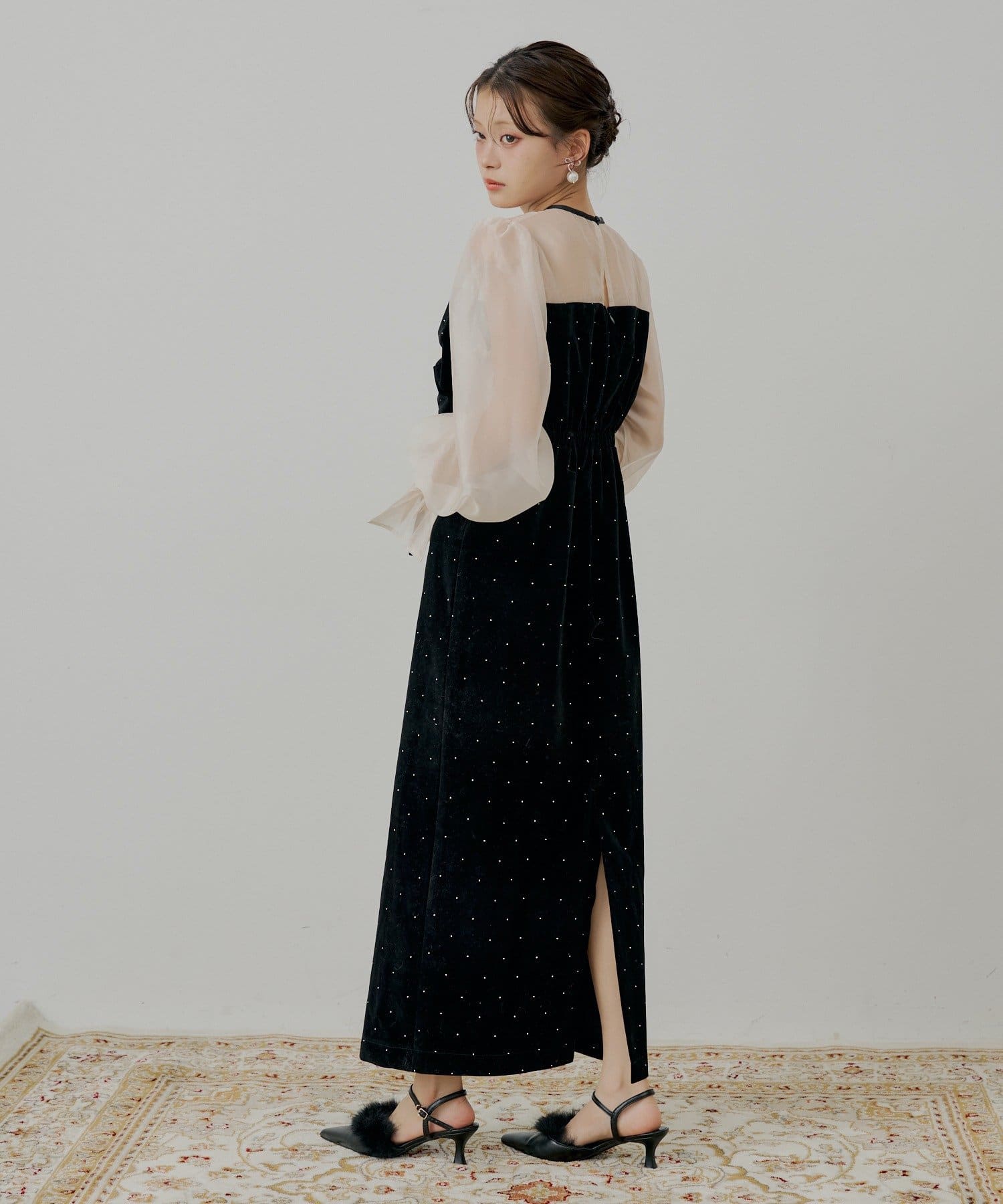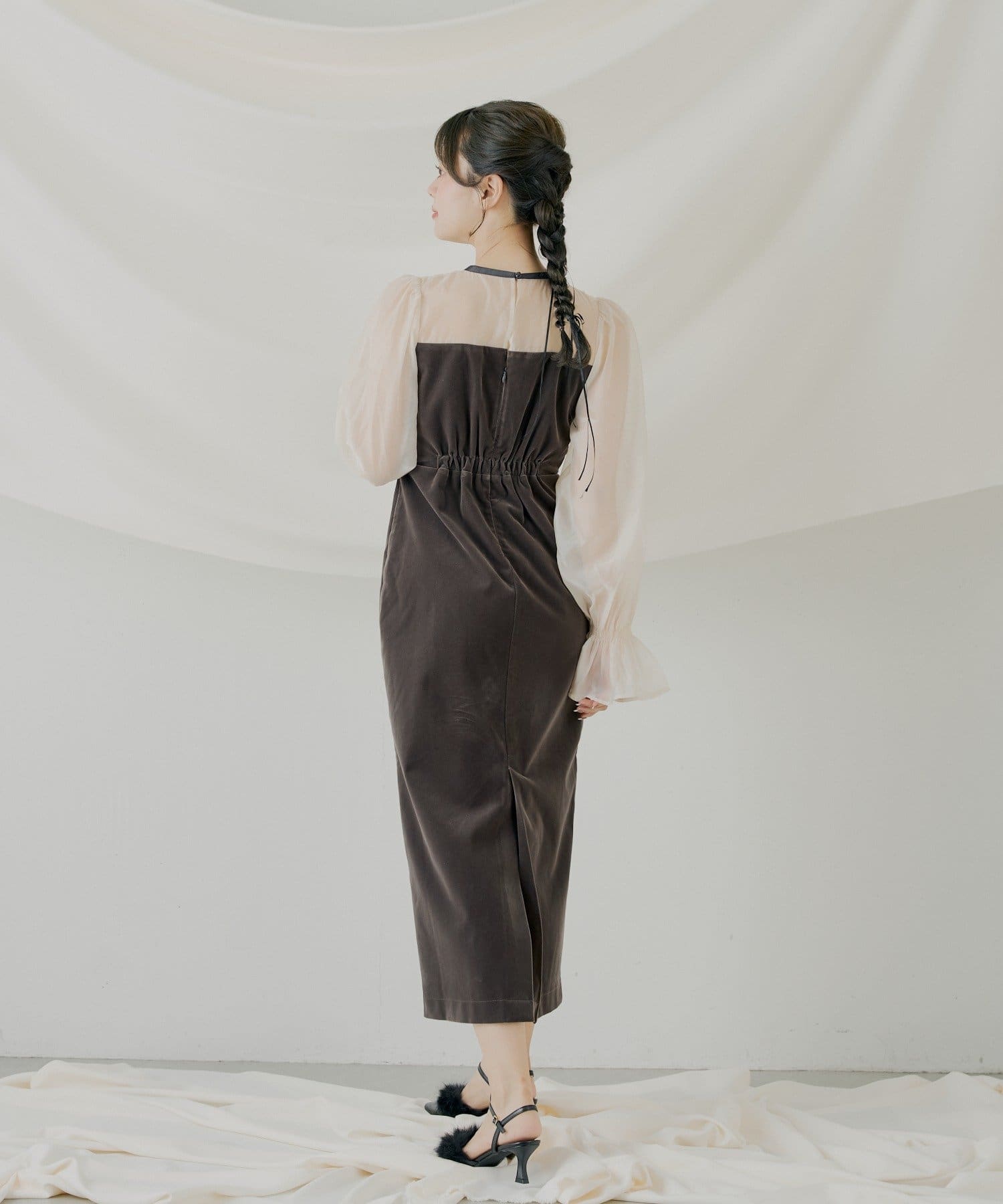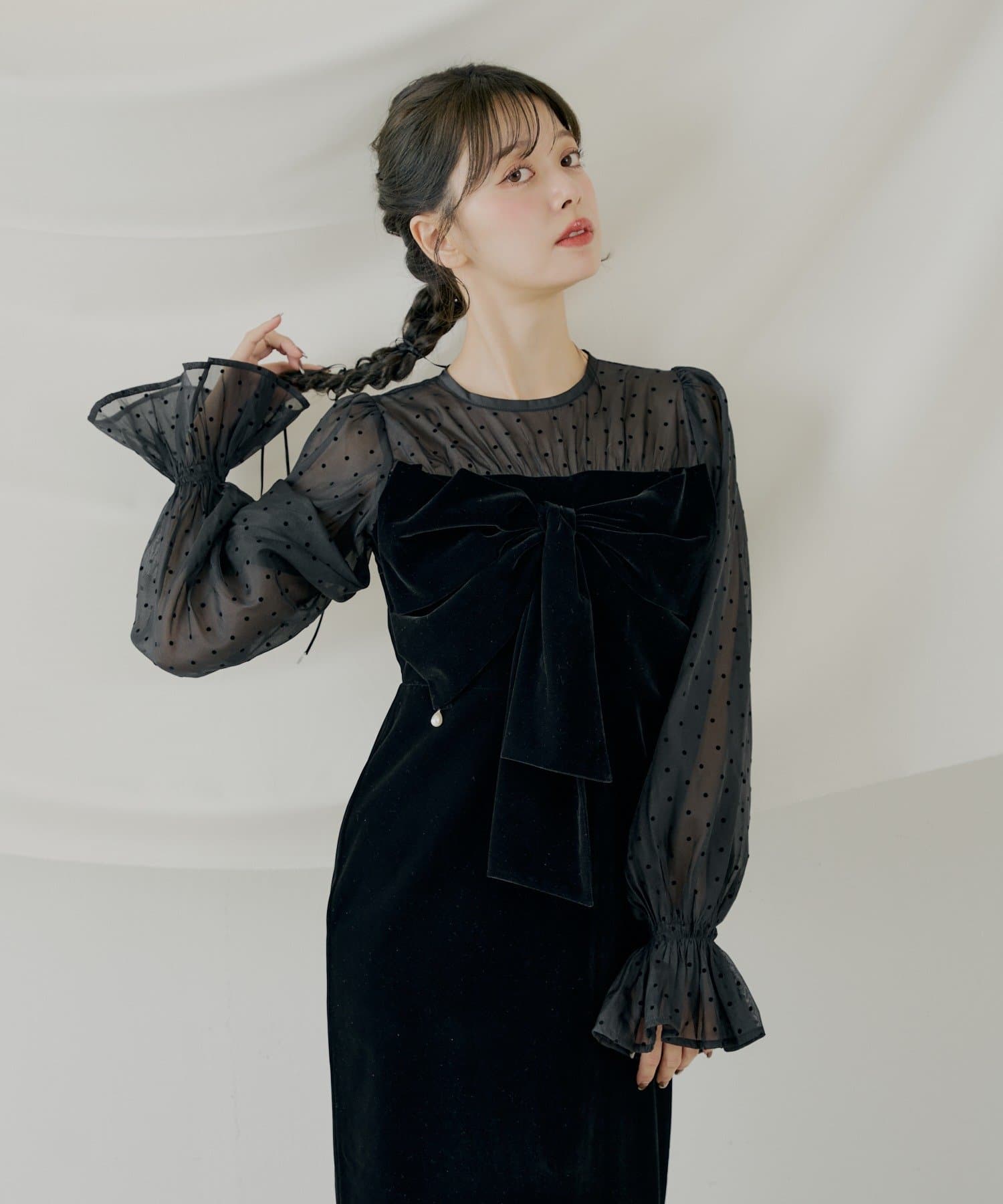 繊細なシアー素材と上品なベロアが大人の女性らしさを引き立てるオケージョンワンピース!