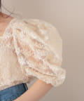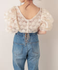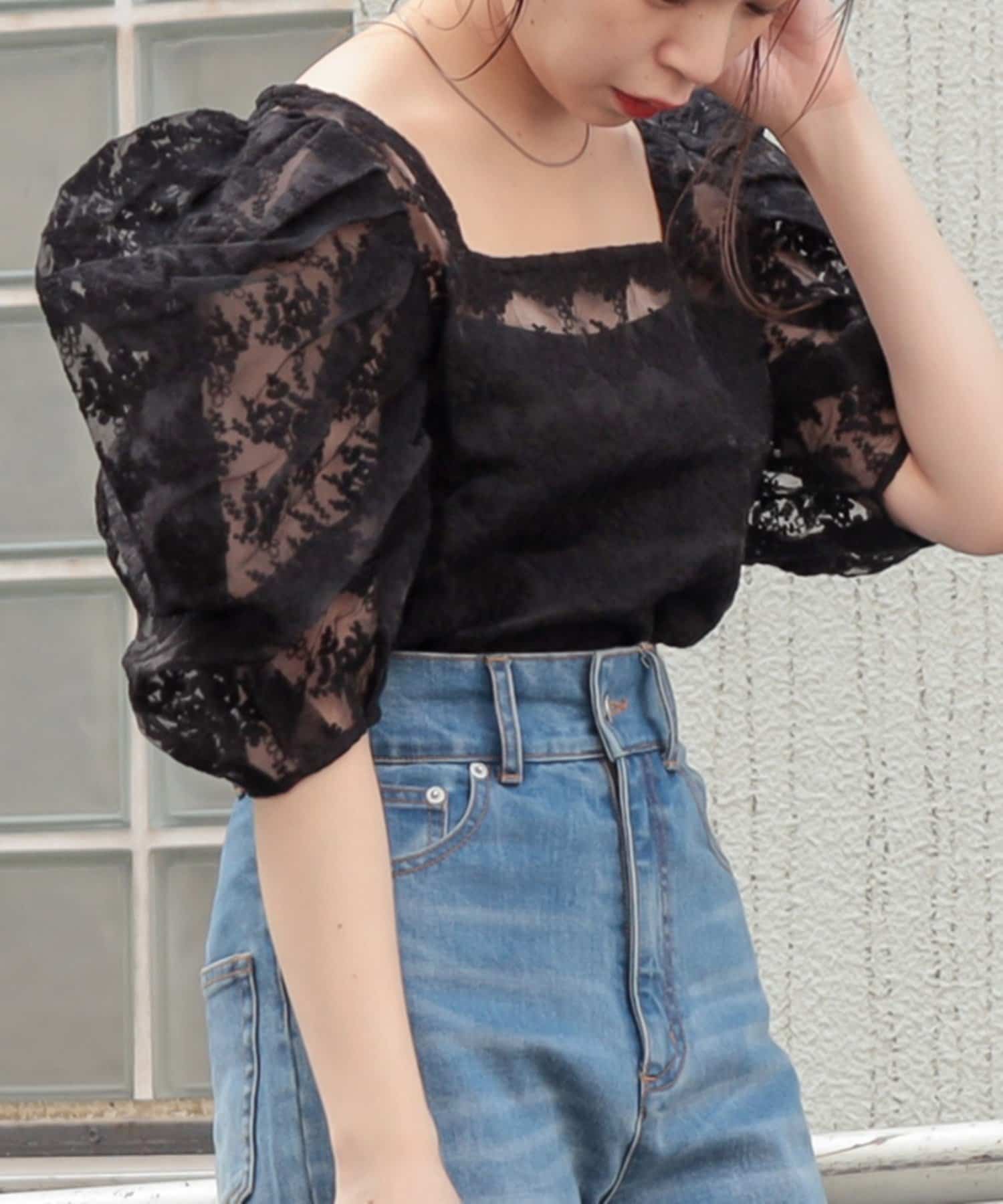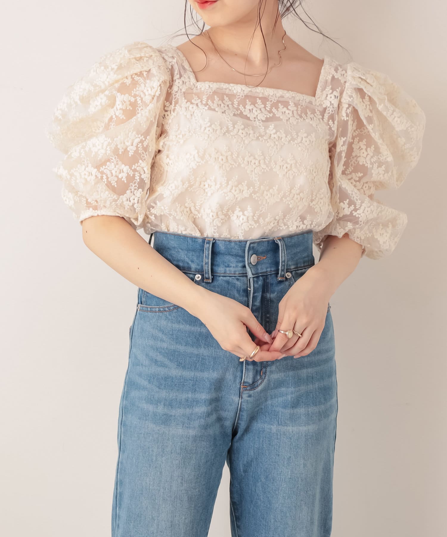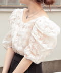 【who's who Chico】5分袖キャミ付きオーガンジーボリュームブラウス