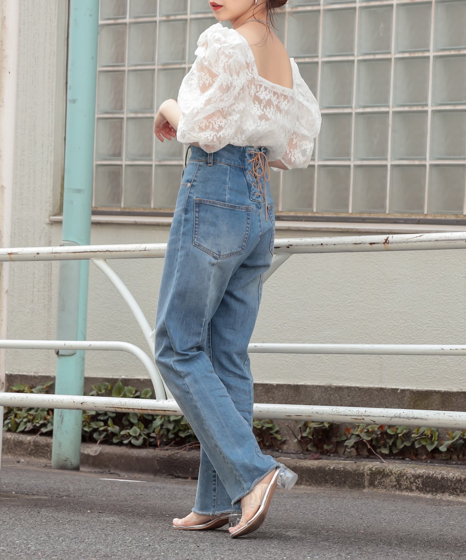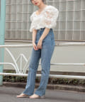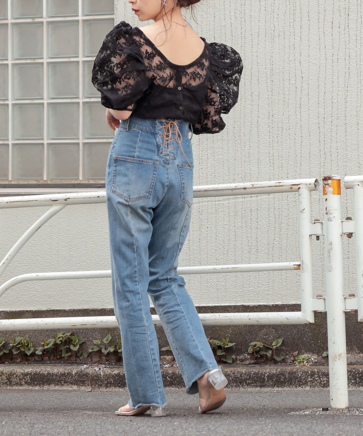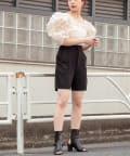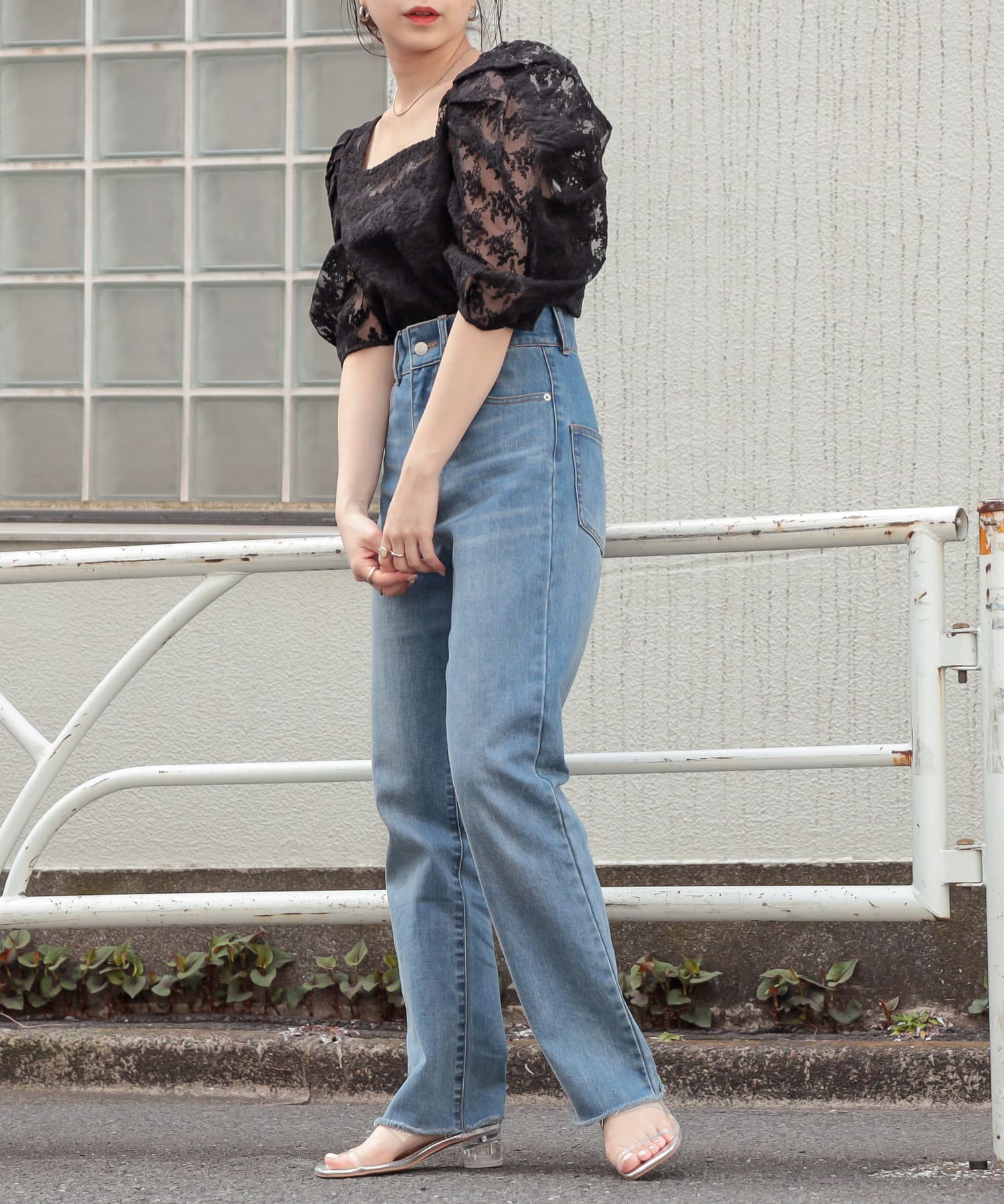 袖のボリュームがポイントのブラウスなので、細身のボトムスとの相性が良いです。