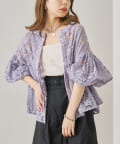 【who's who Chico】5分袖フラワーレーススタンドカラーブラウス