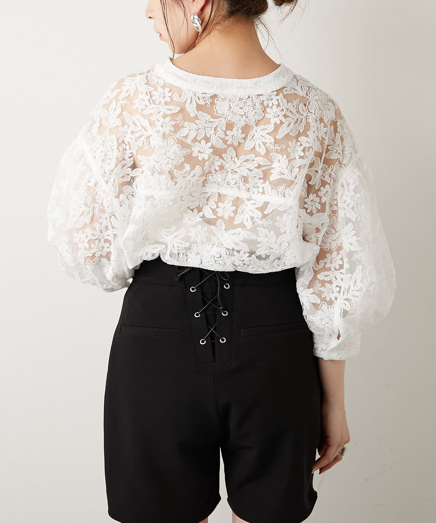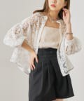 TOP > OUTLET > レディース > トップス > シャツ/ブラウス(ボタン) > 【who's who Chico】5分袖フラワーレーススタンドカラーブラウス
