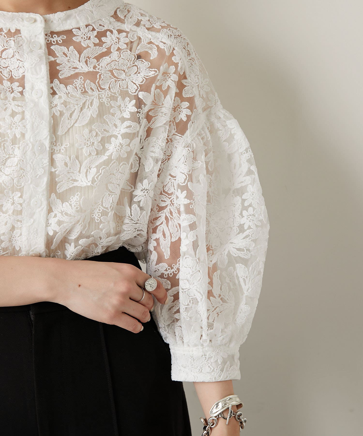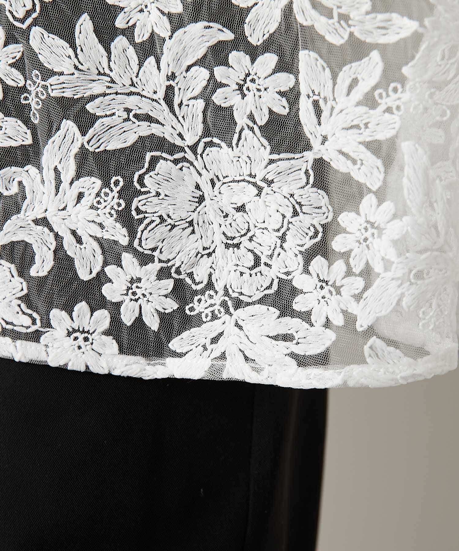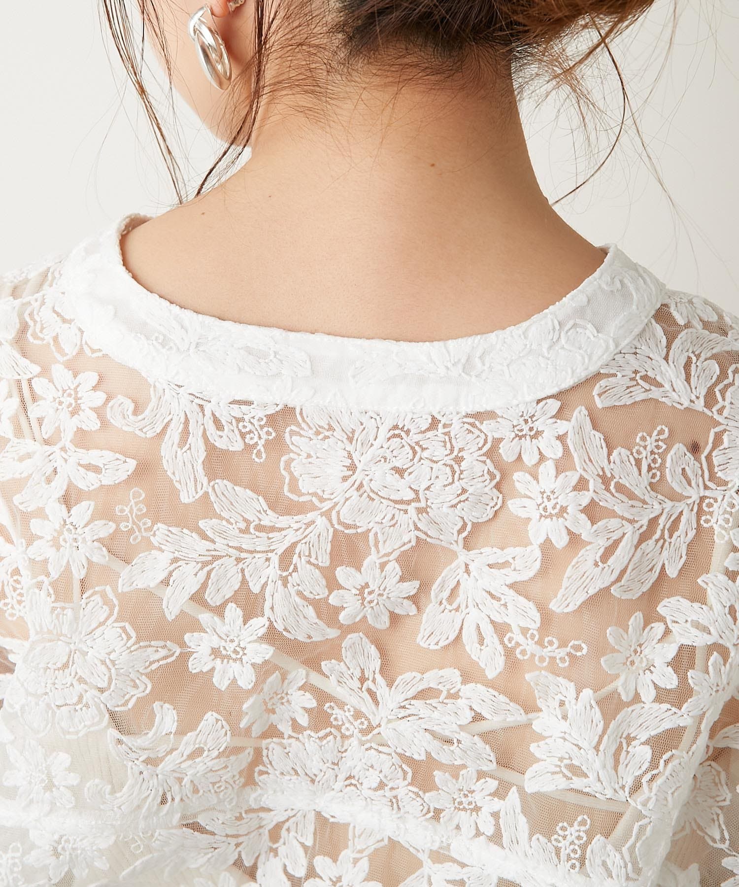 繊細な刺繍フラワーが施されたこだわりが詰まった1枚で、