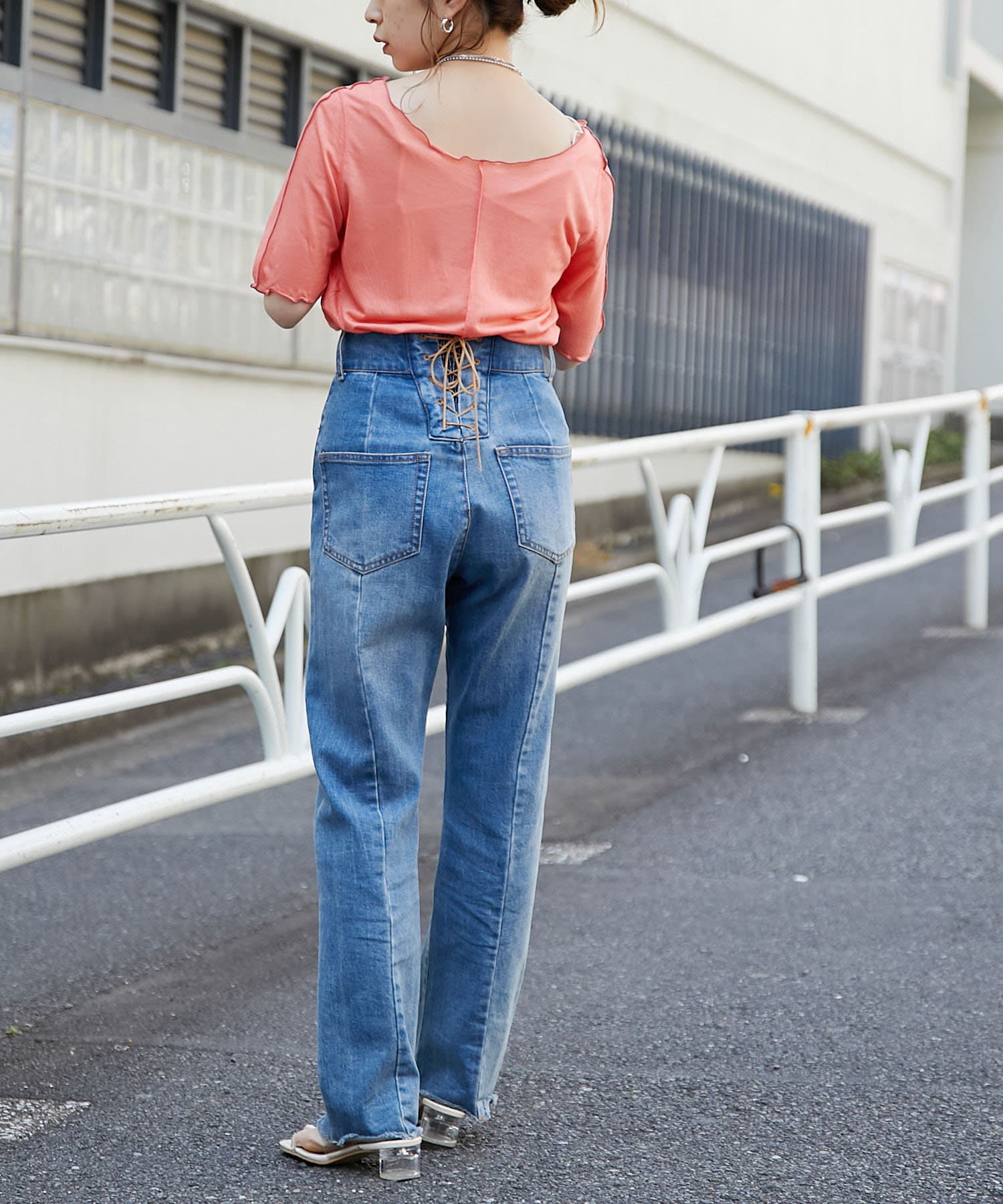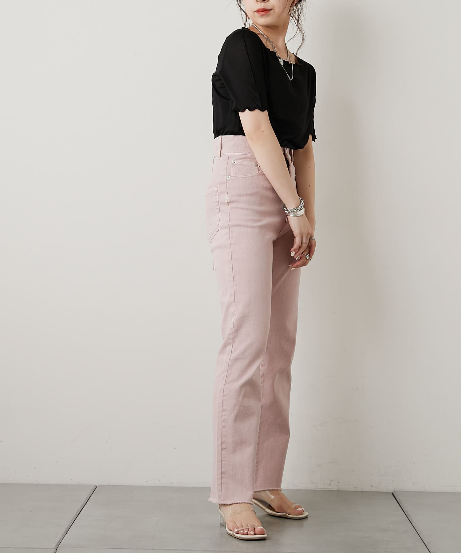 スラックスやデニムパンツと合わせていただくとすっきりとした印象に、
