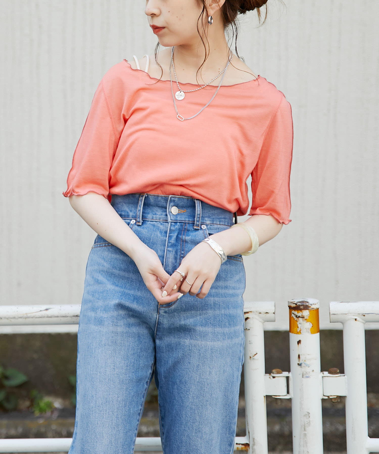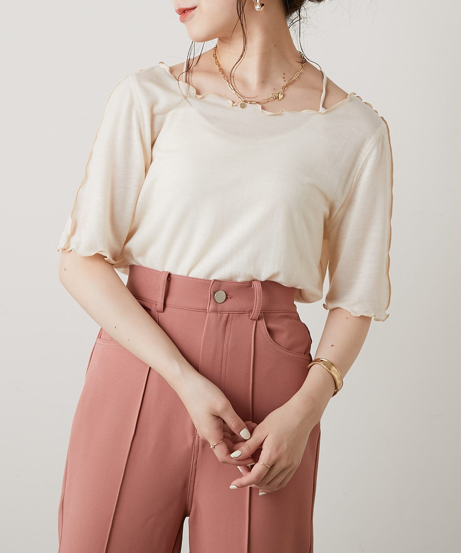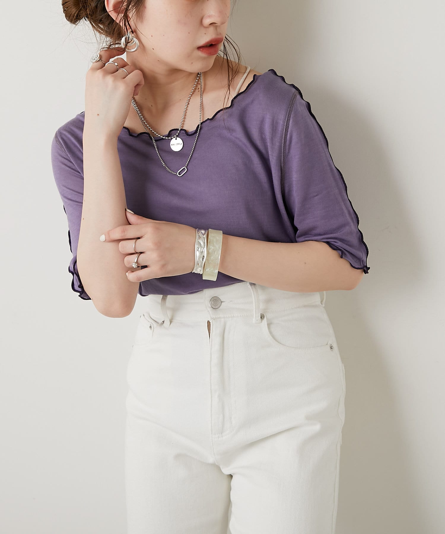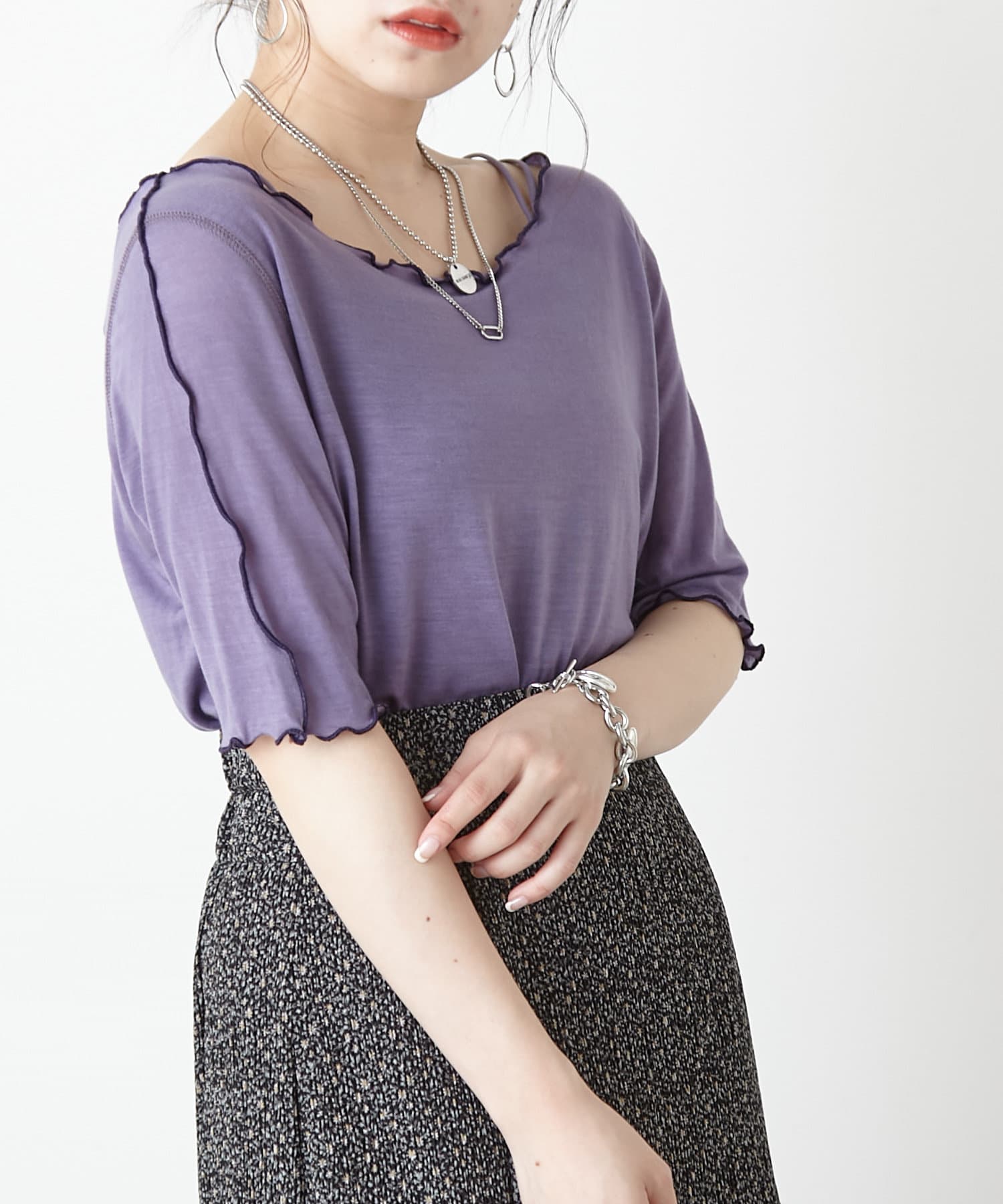 5分袖デザインのシアーTで長く活躍してくれる1枚。