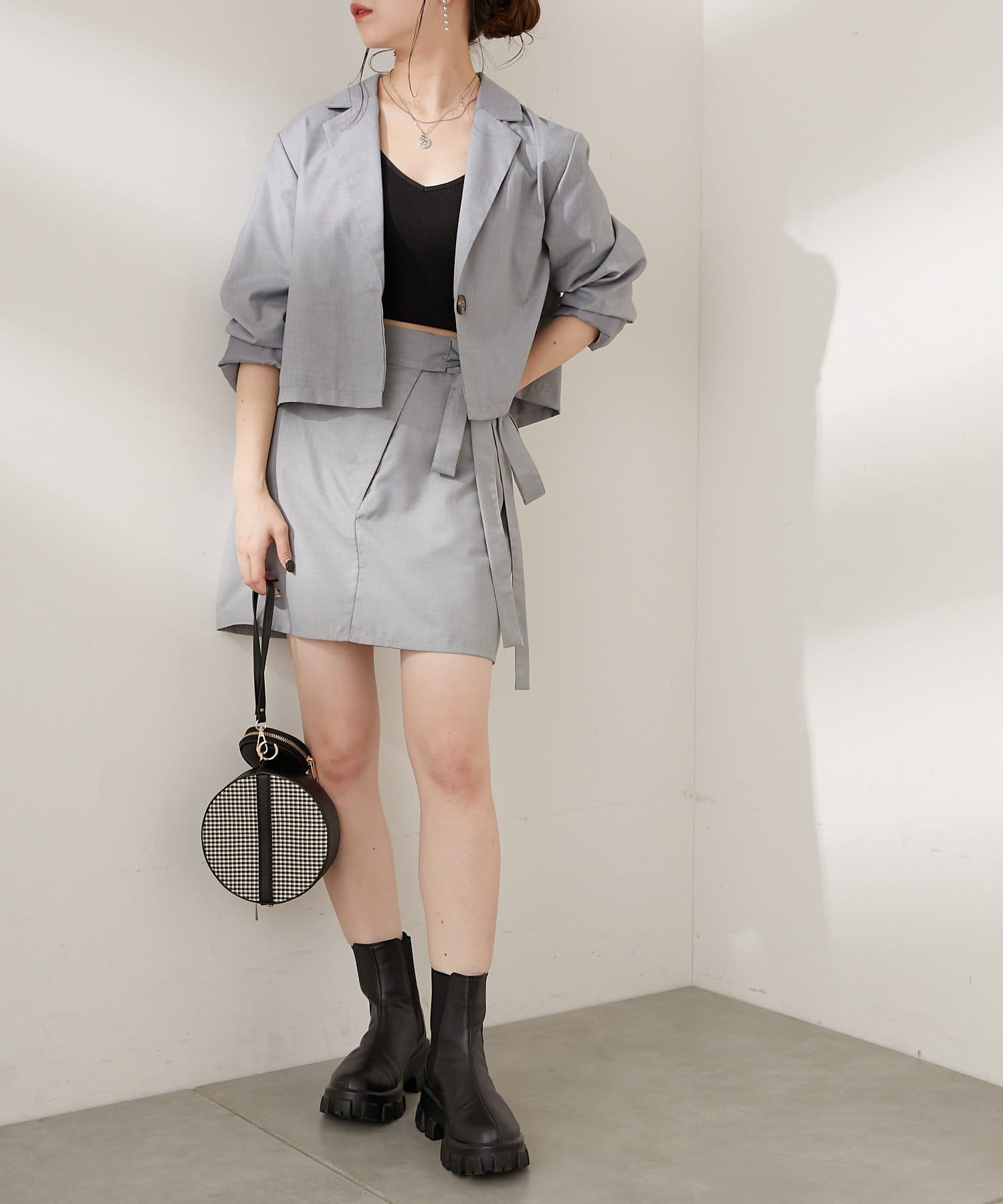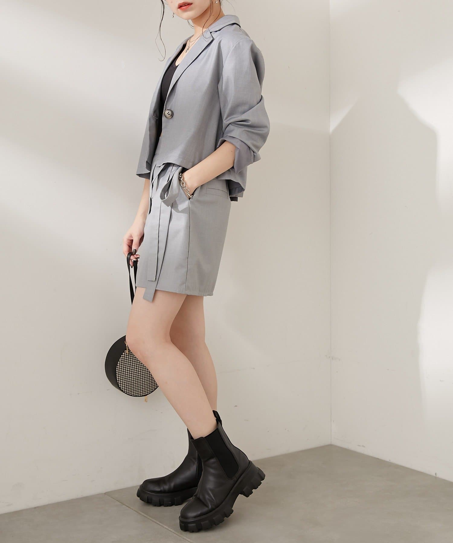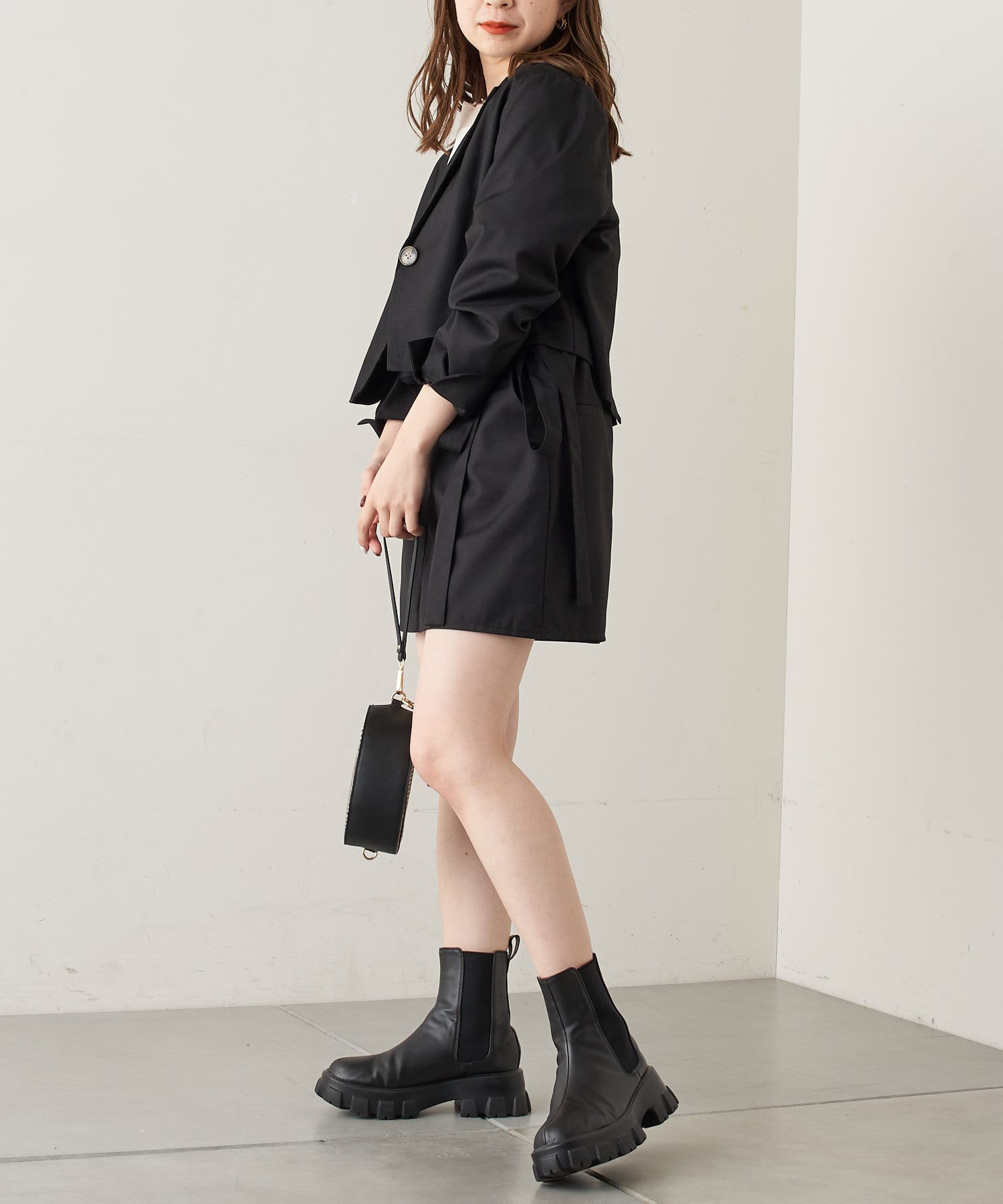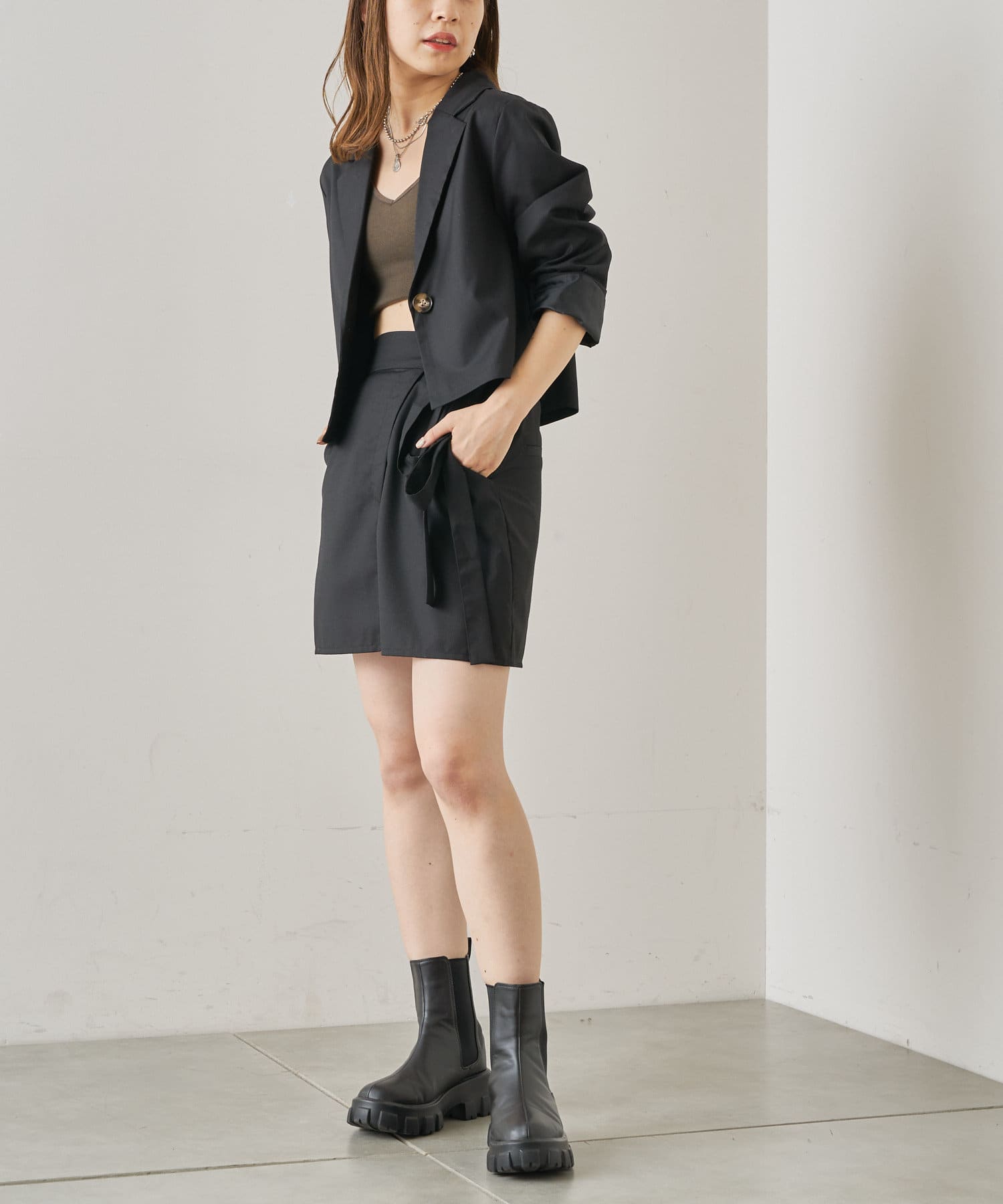 同色で同素材のミニスカート、ショートパンツ、ロングパンツがあるので