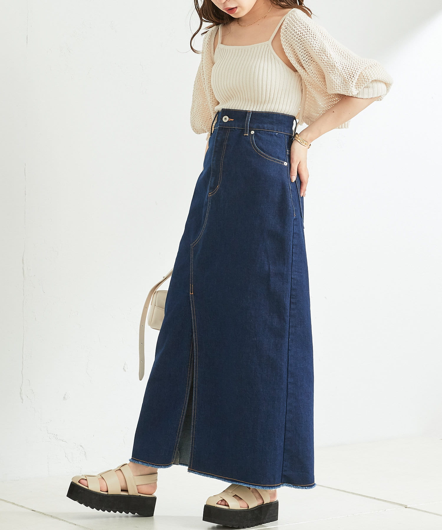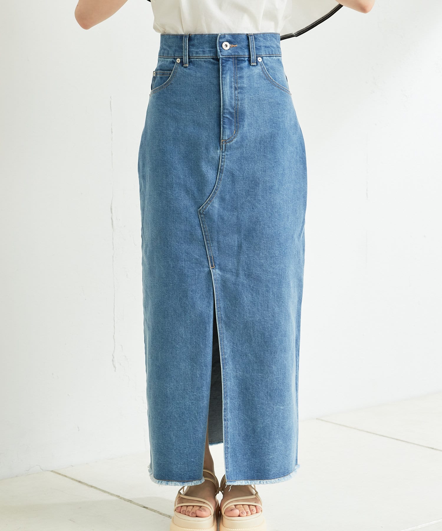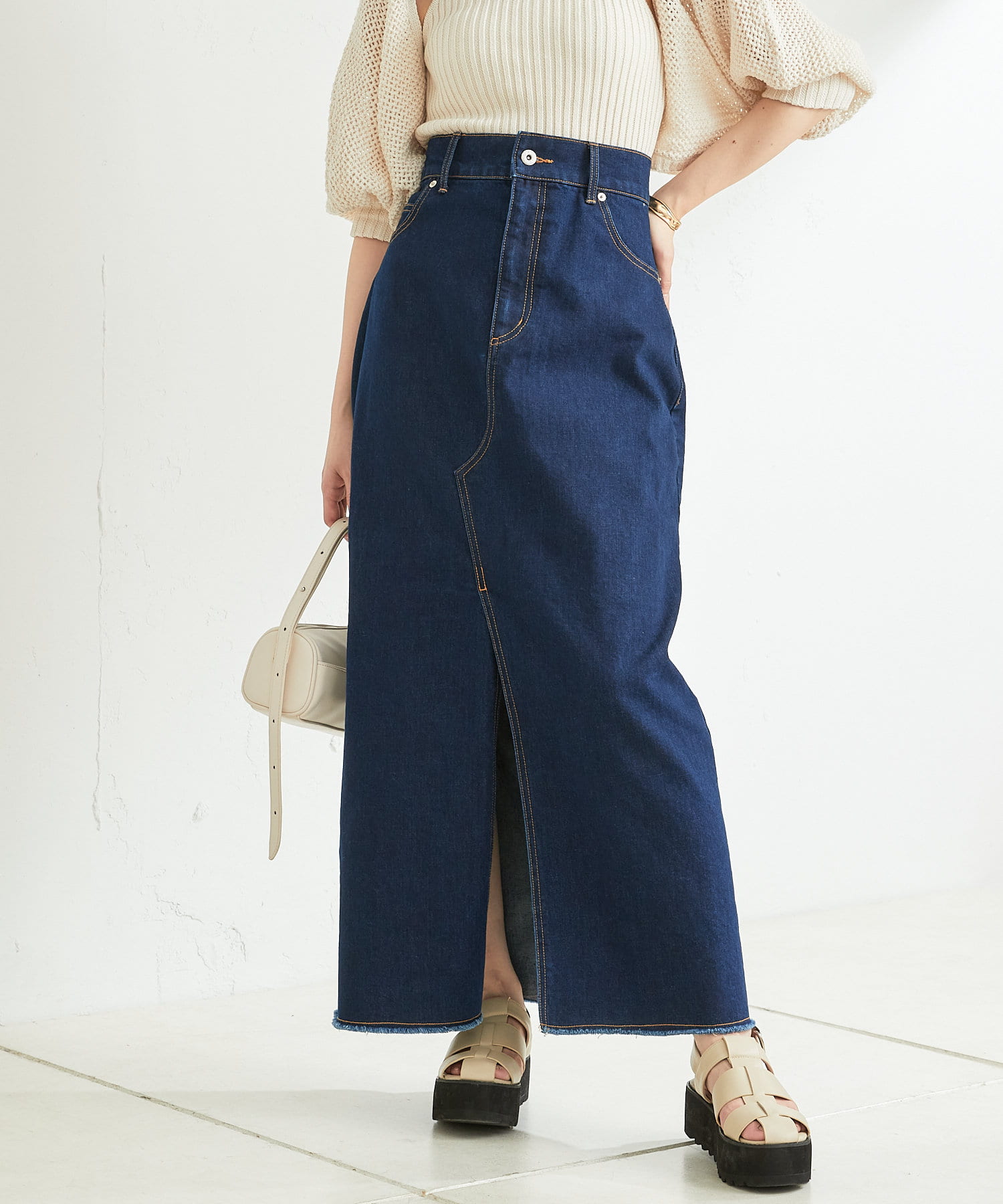 OUTLET(アウトレット) 【Chico】スリットロングデニムスカート