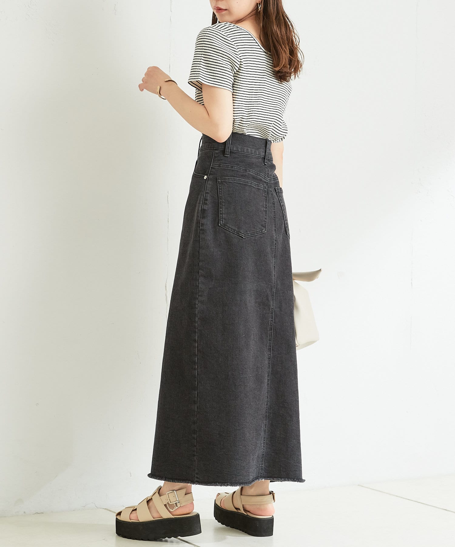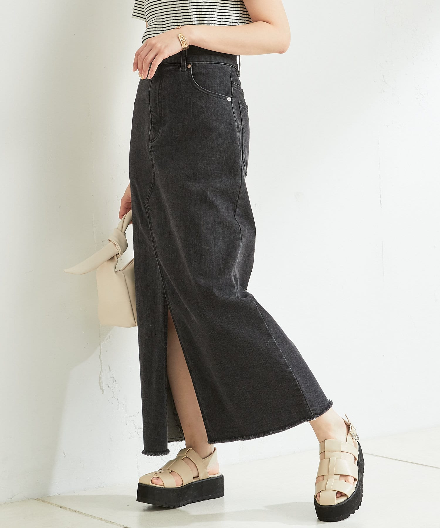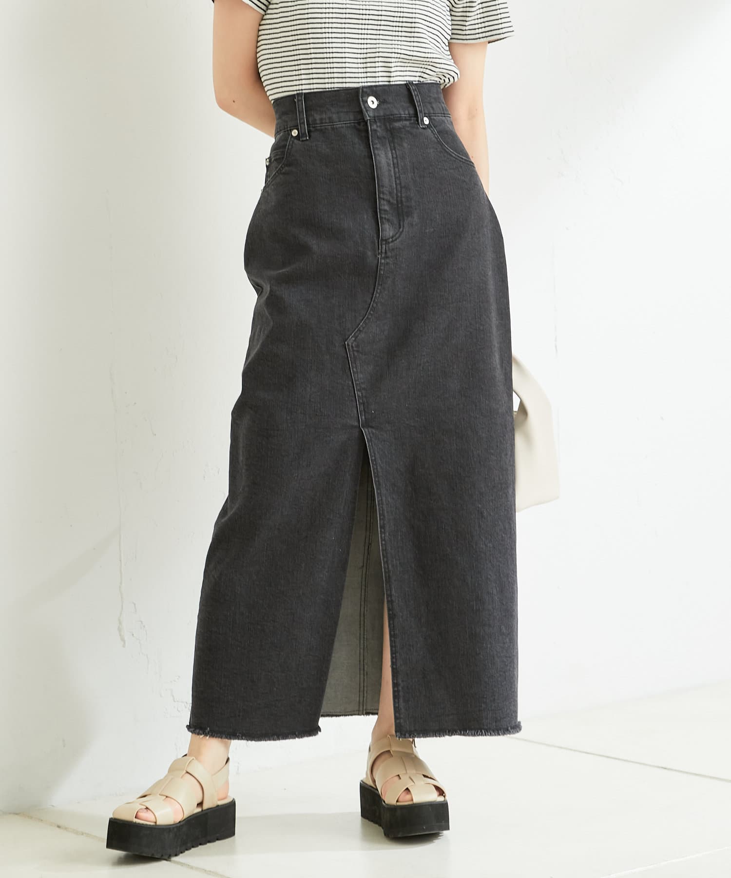 OUTLET(アウトレット) 【Chico】スリットロングデニムスカート