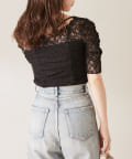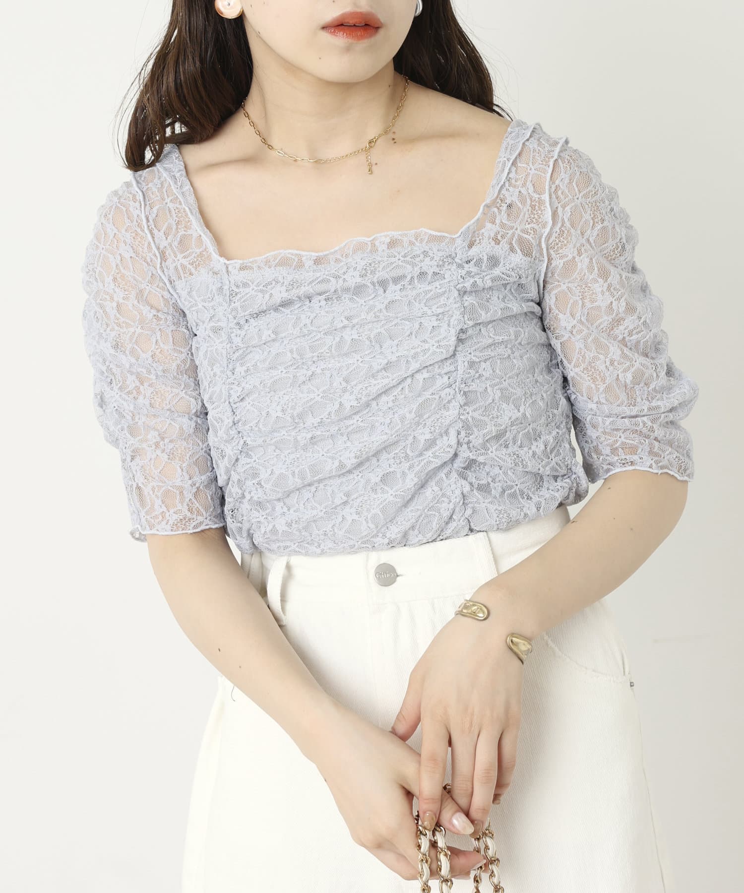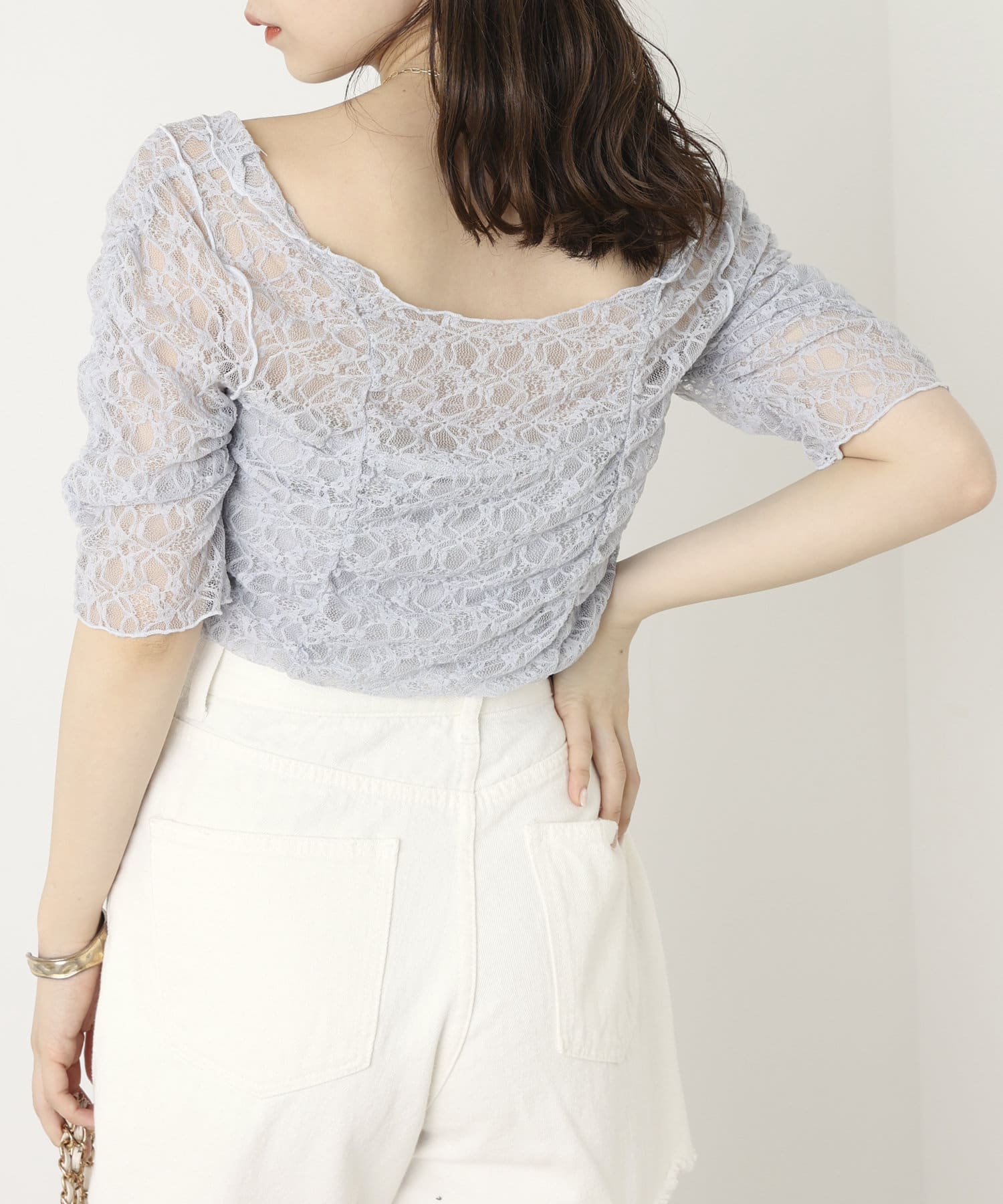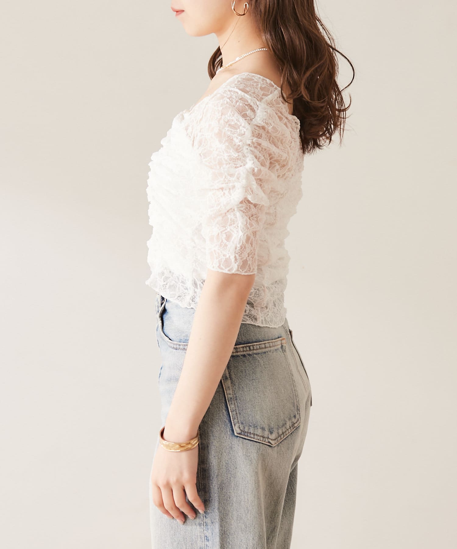 OUTLET(アウトレット) 【Chico】5分袖総レースギャザーメロウトップス