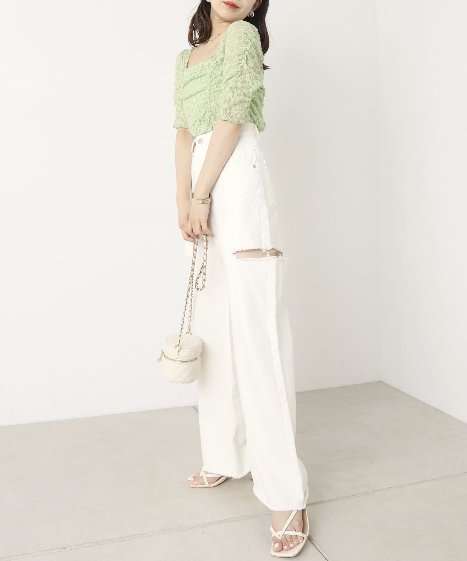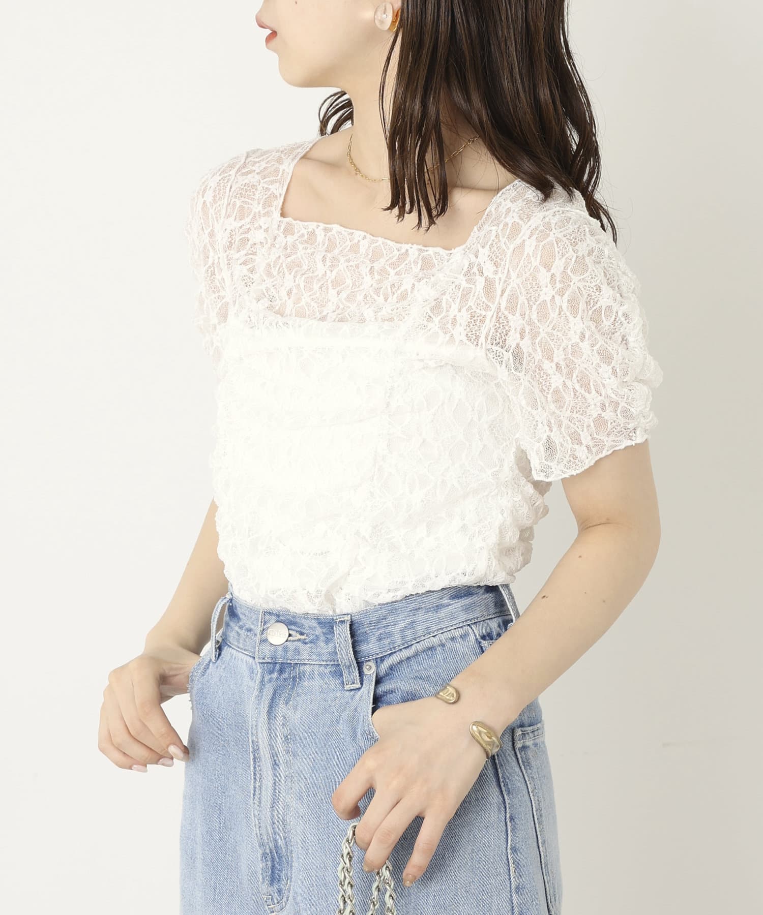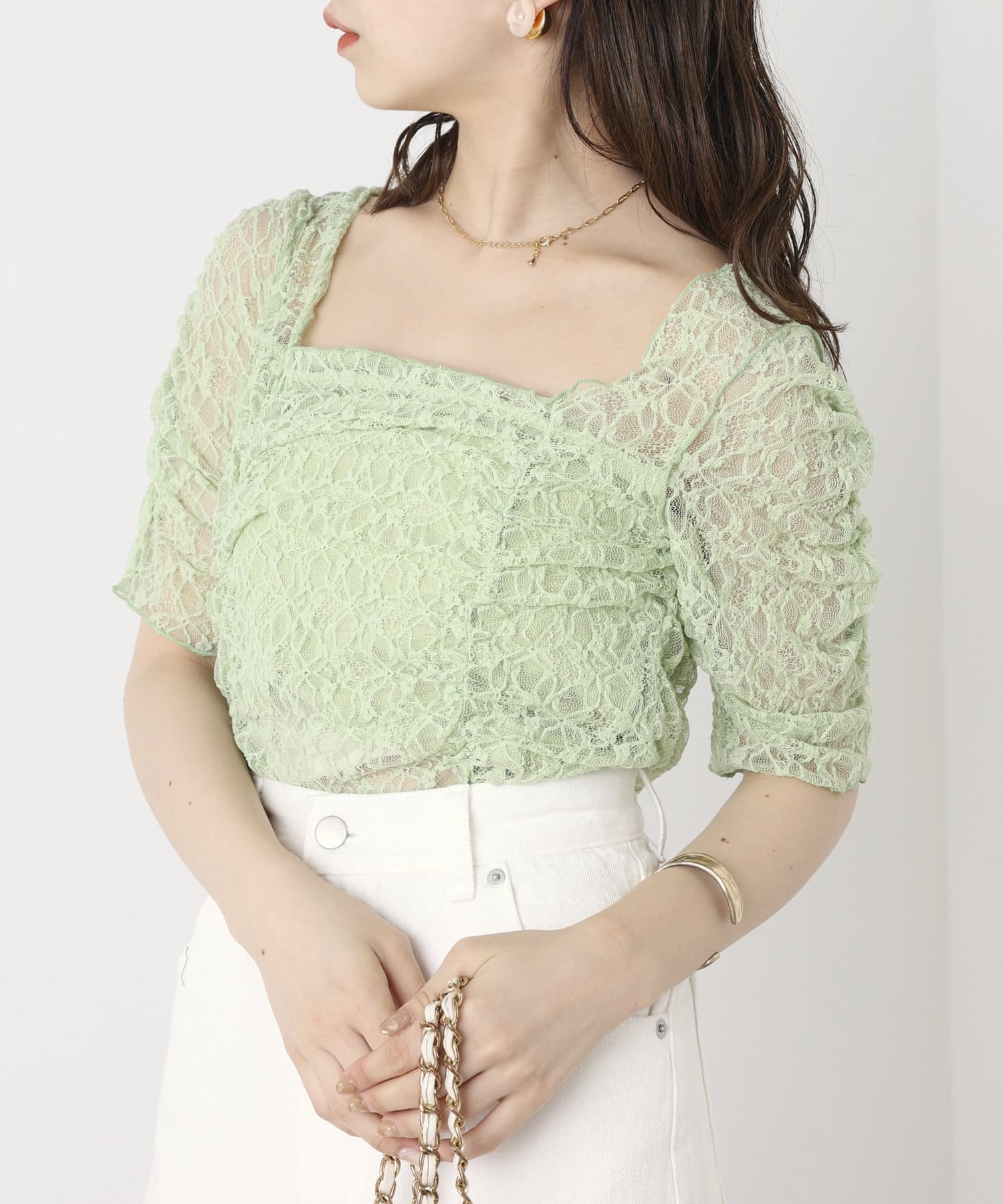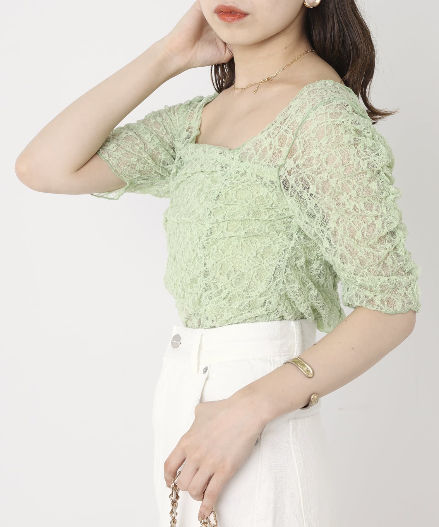 OUTLET(アウトレット) 【Chico】5分袖総レースギャザーメロウトップス