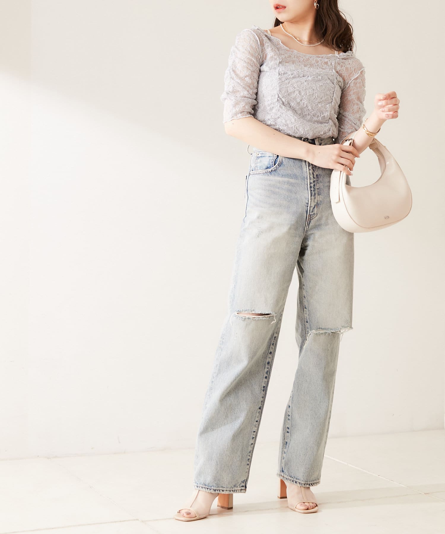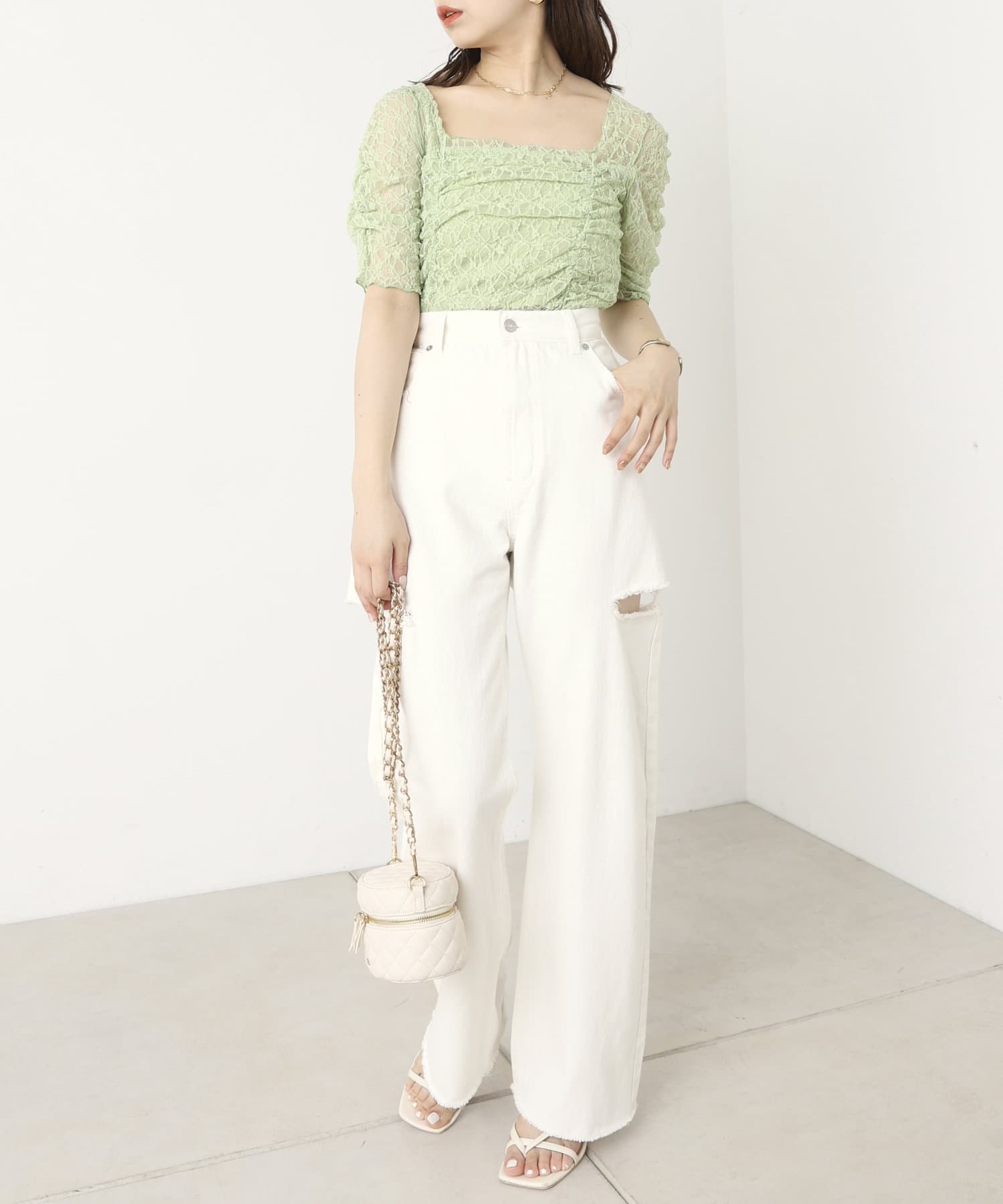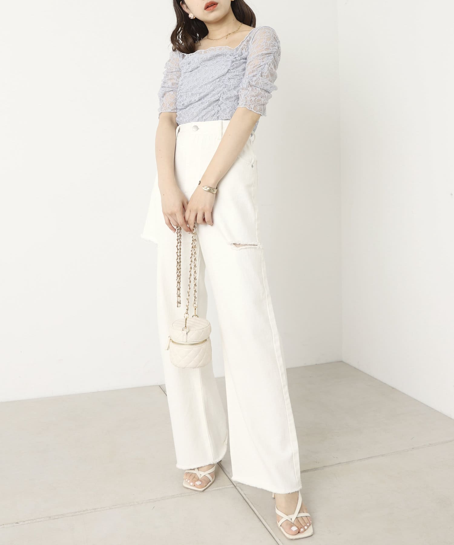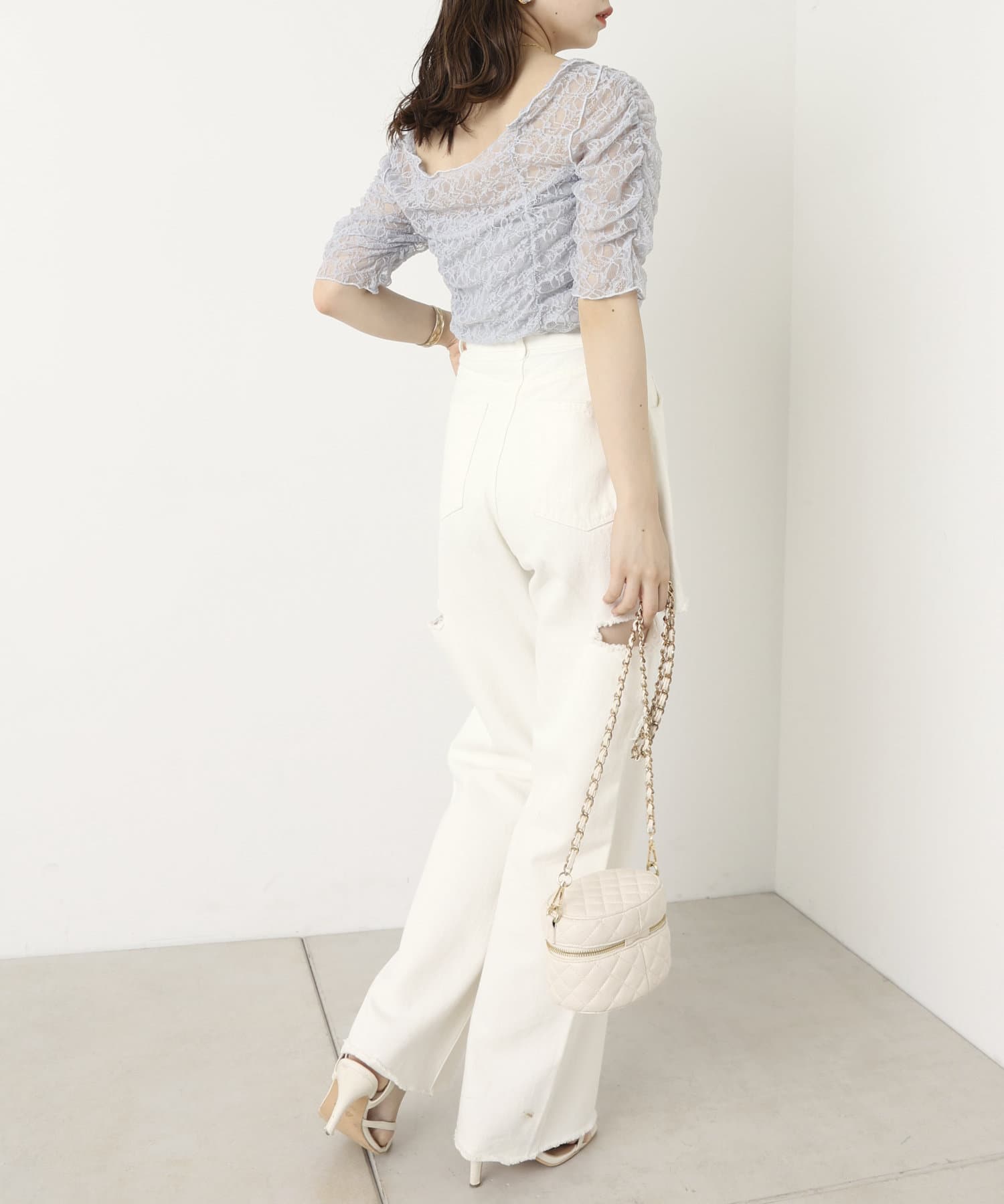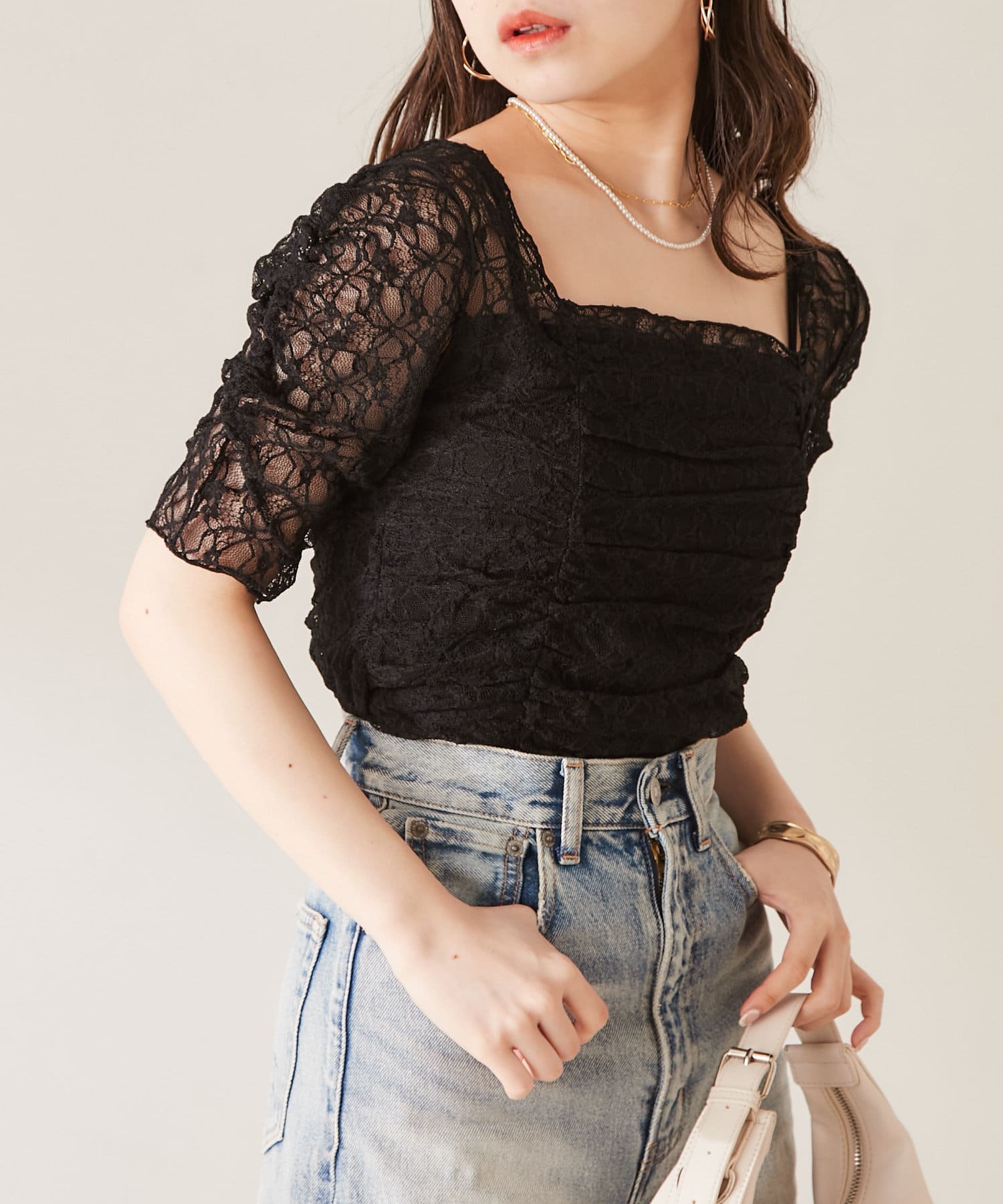 • OUTLET(アウトレット) 【Chico】5分袖総レースギャザーメロウトップス