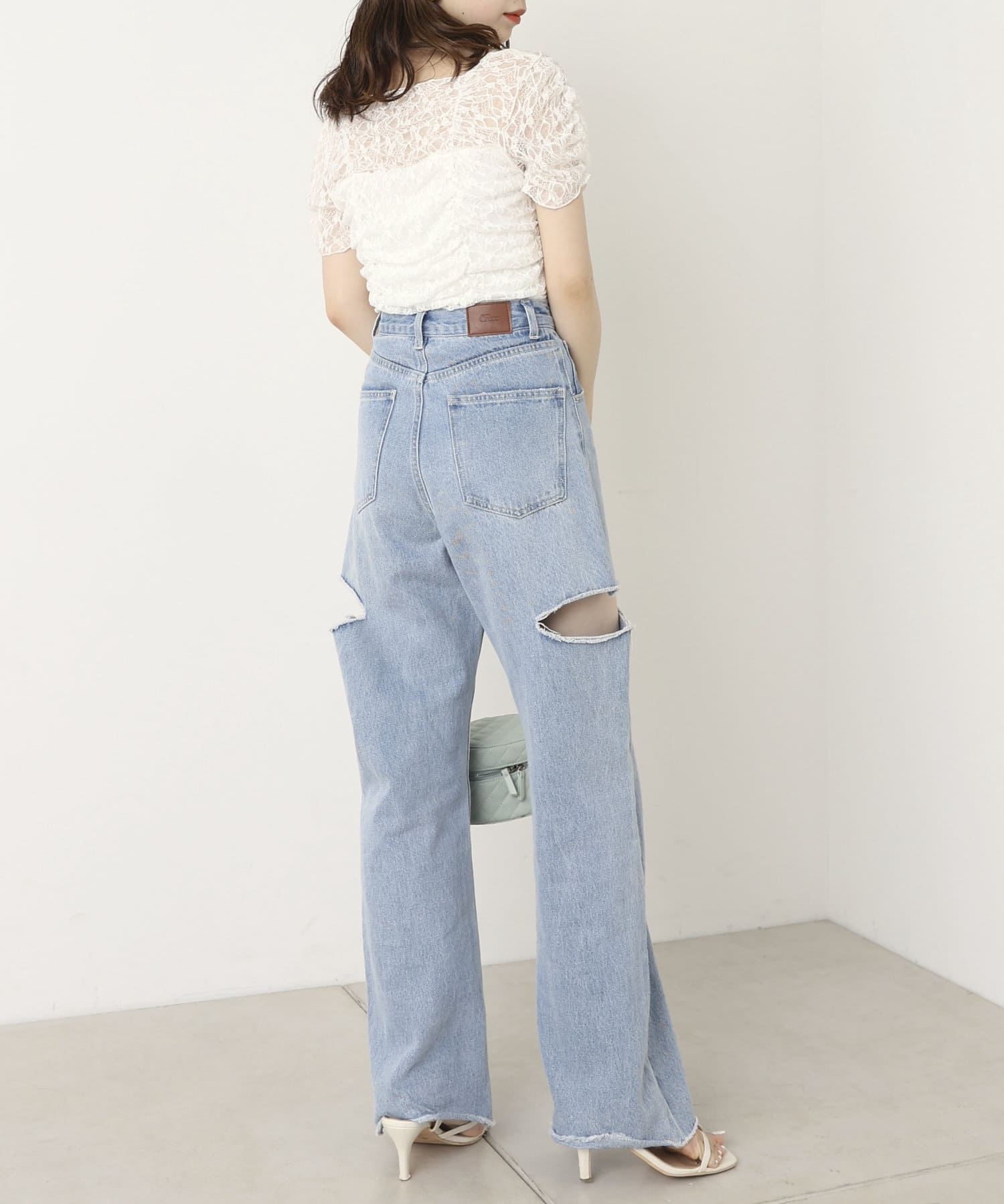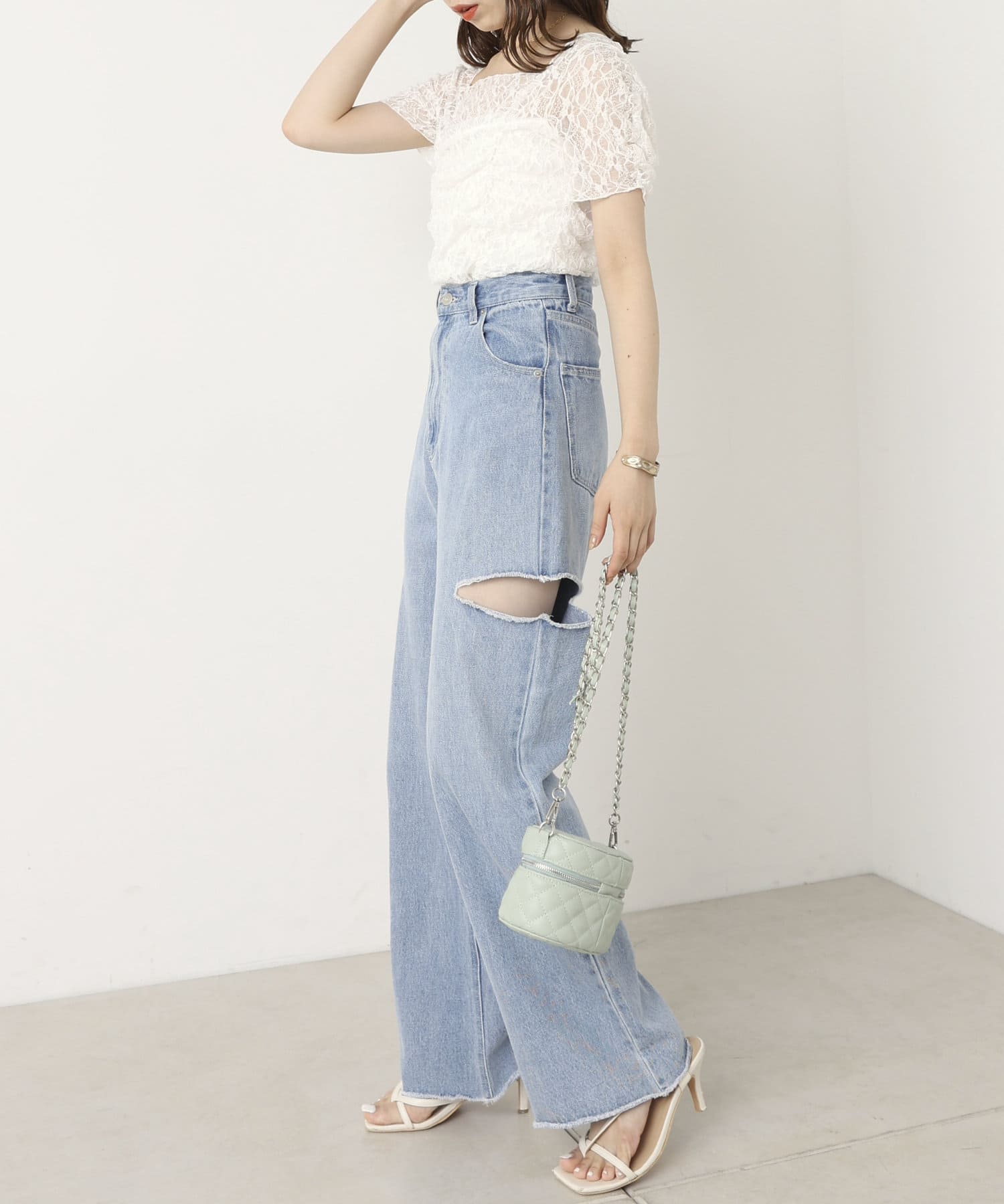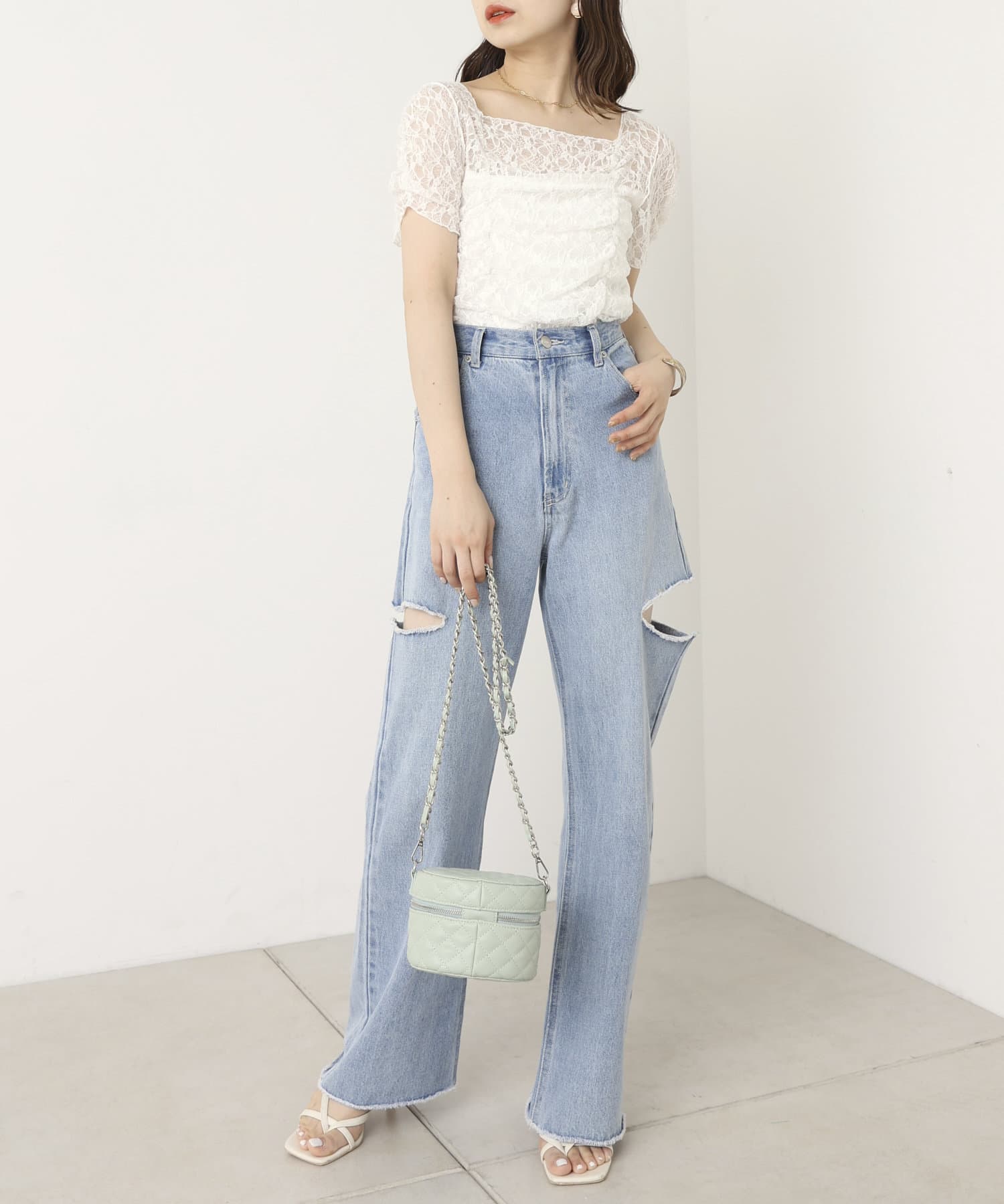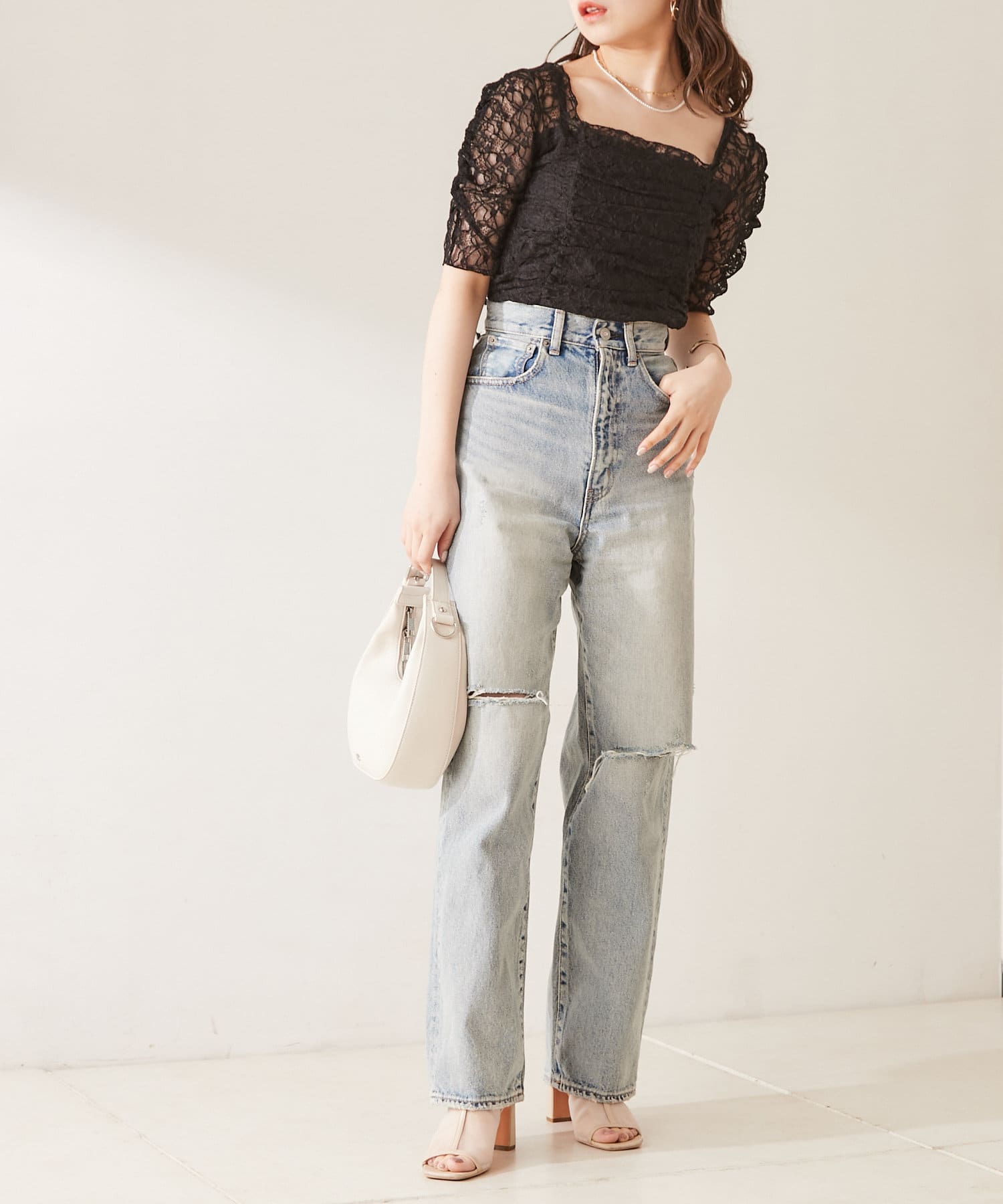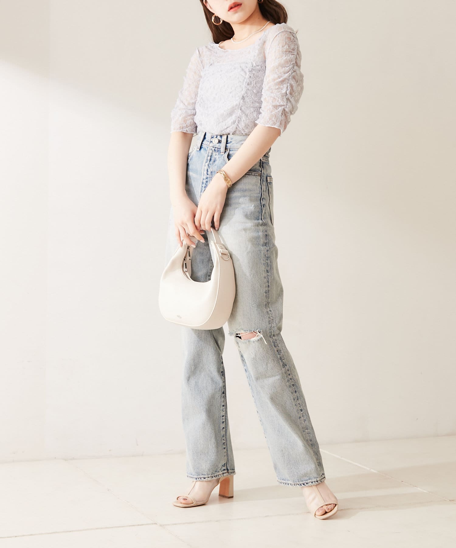 • OUTLET(アウトレット) 【Chico】5分袖総レースギャザーメロウトップス