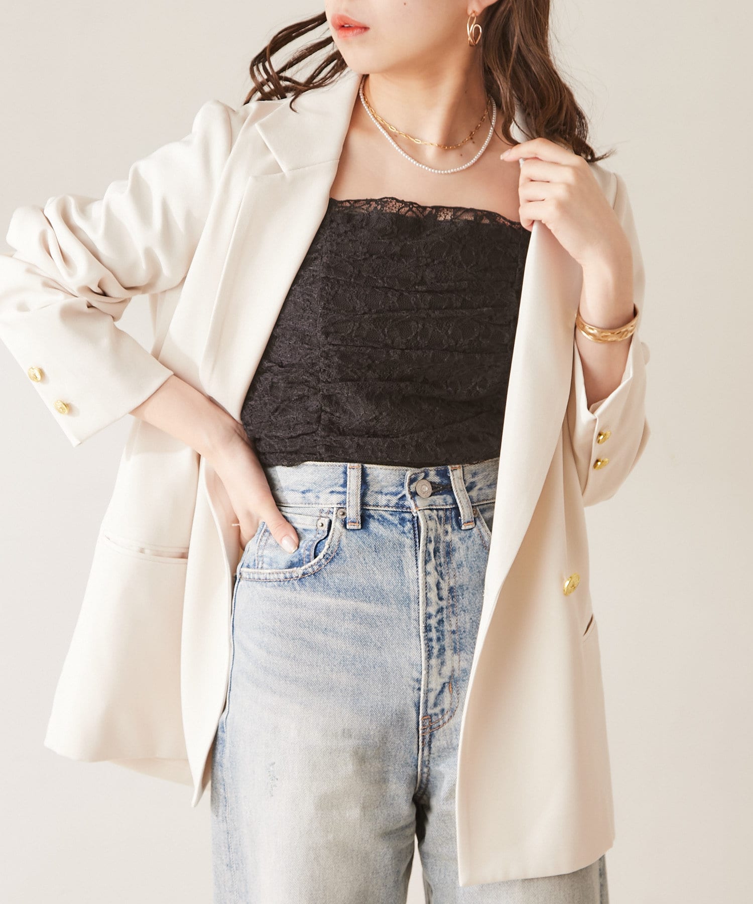 ・総レースですがデコルテ部分から下は裏地がついているので、インナーの透けを気にせず着用していただけます。