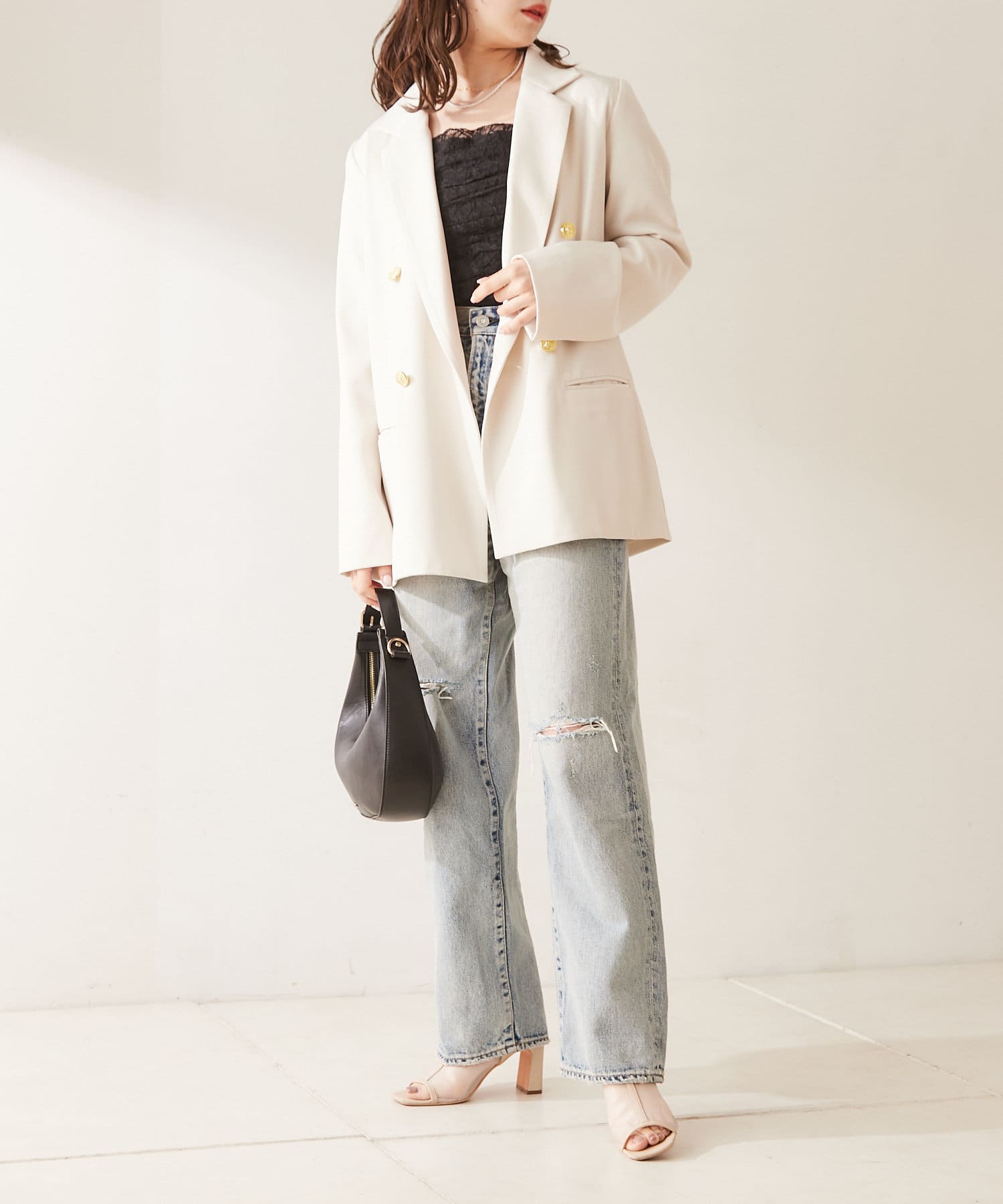 ・シンプルに着こなしたい方はデニムと合わせて足元はヒールにするとコーディネートのバランスがとれます。