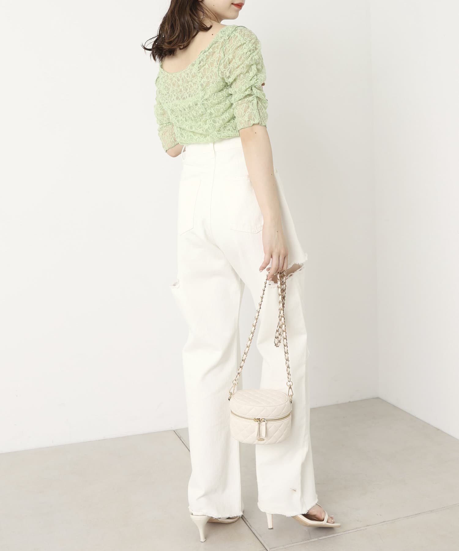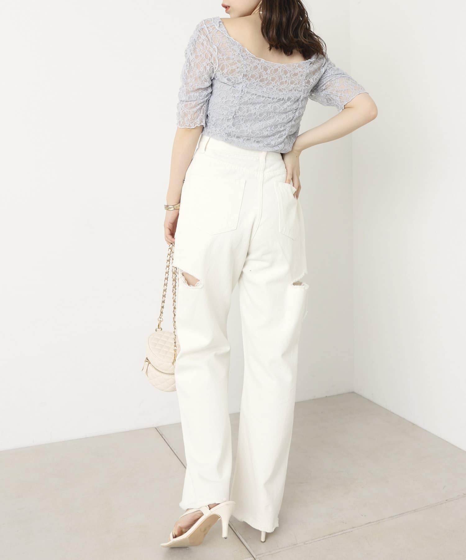 TOP > OUTLET > レディース > トップス > Tシャツ/カットソー > 【Chico】5分袖総レースギャザーメロウトップス