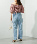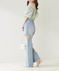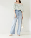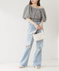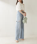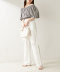 ・カジュアルに着たい方は、フレアパンツやデニムと合わせて足元はフラットシューズにするとリラクシーに着こなせます。