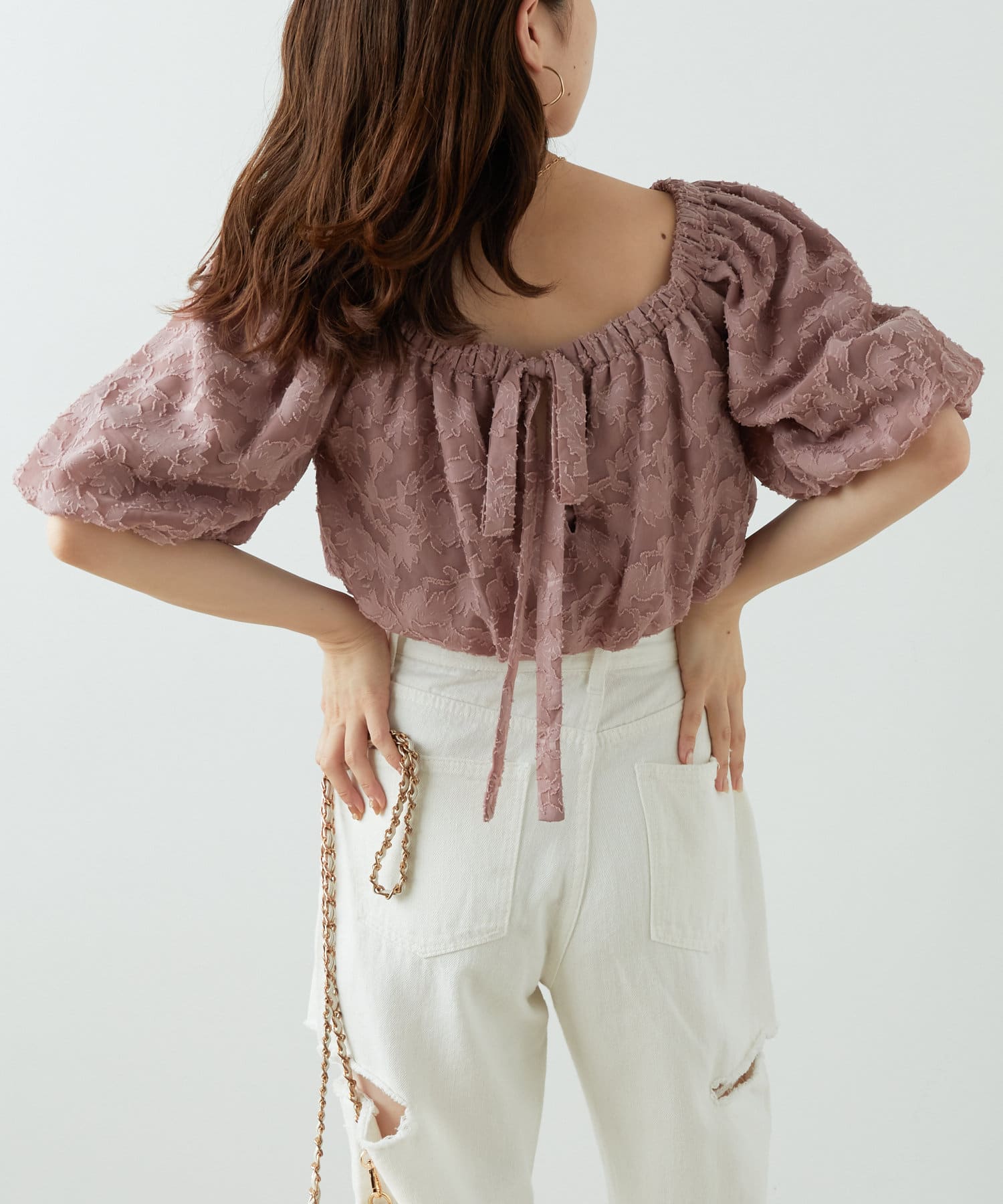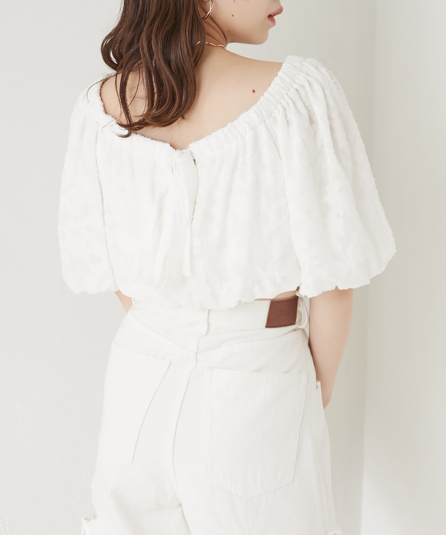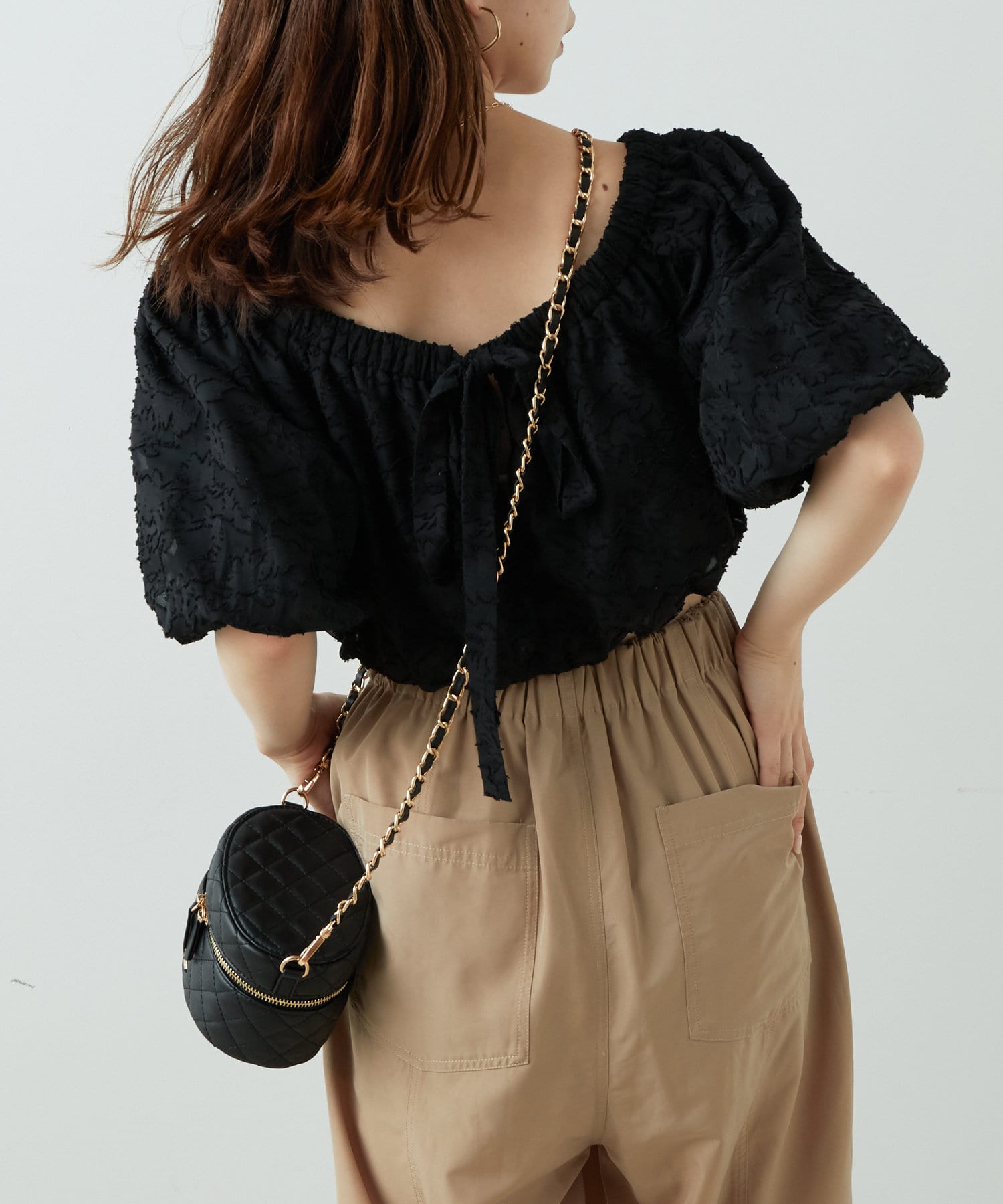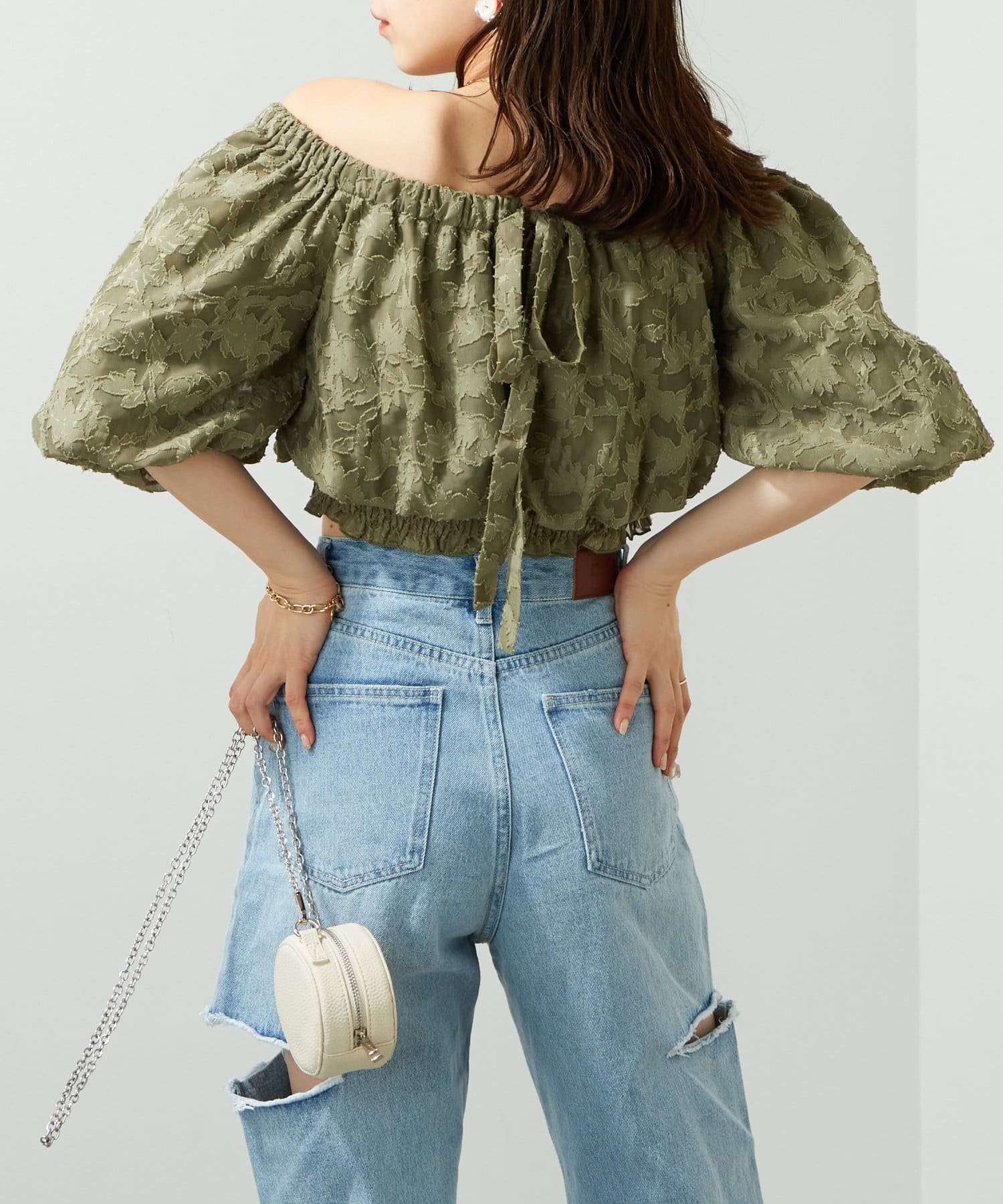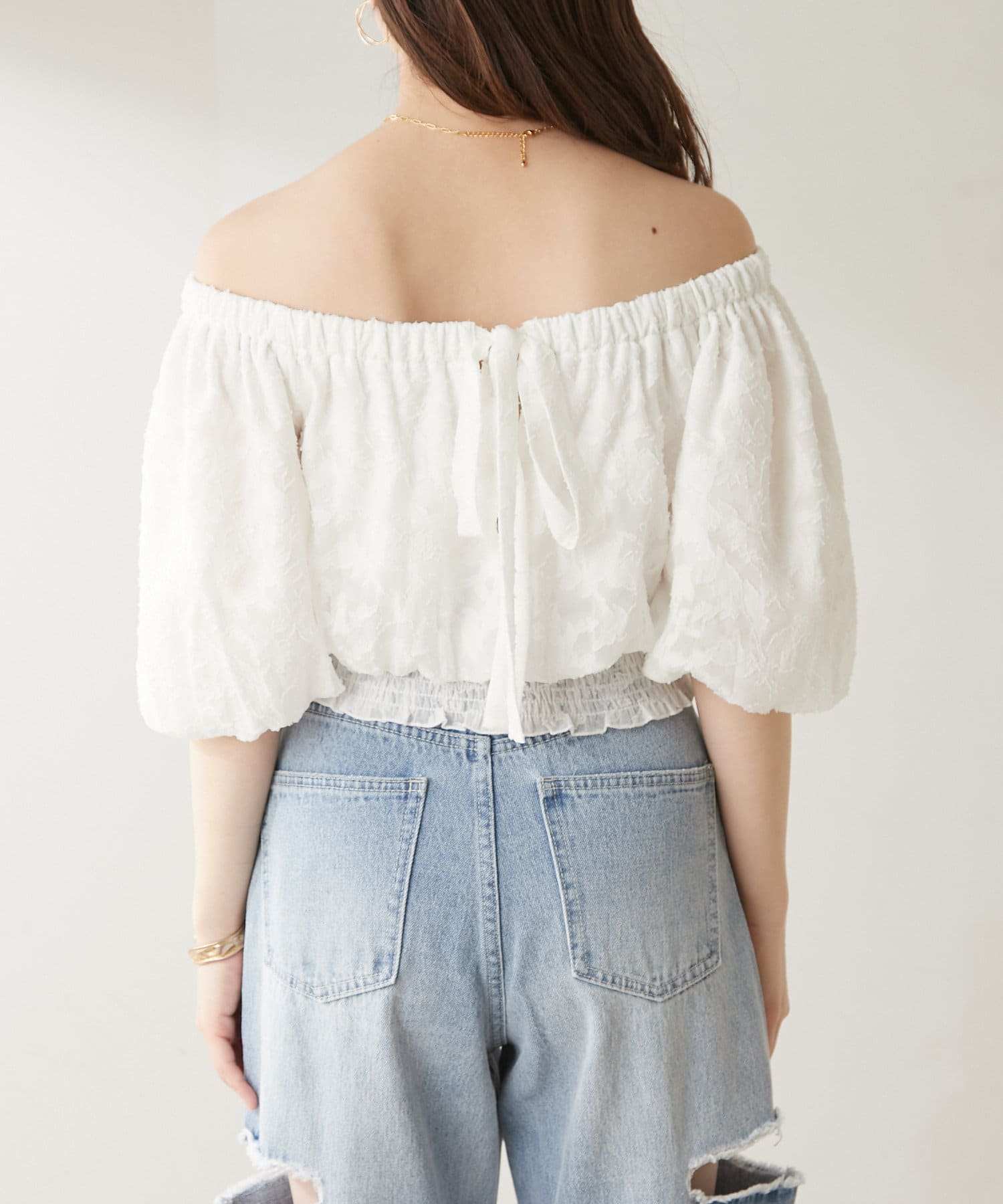 【Chico】バックリボンシアーバルーンオフショルブラウス