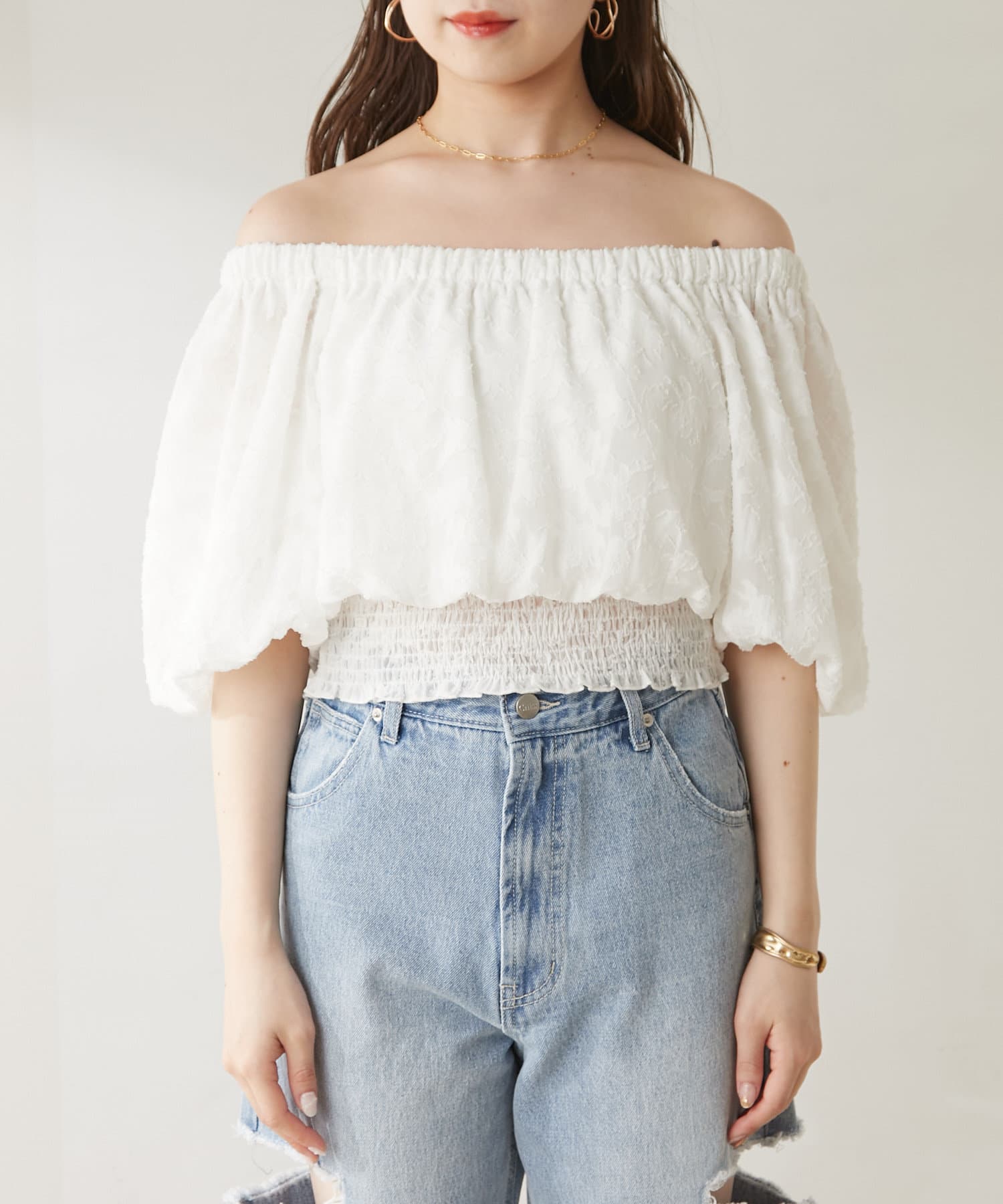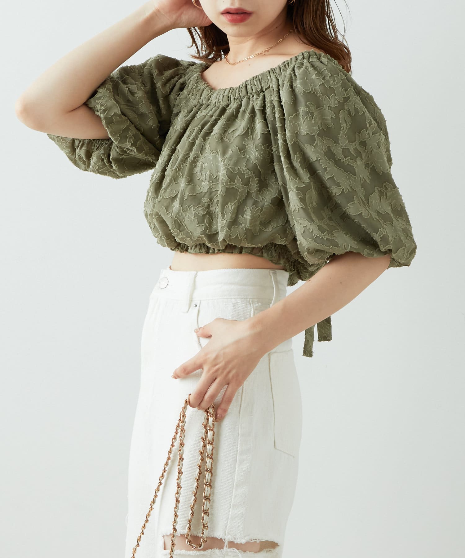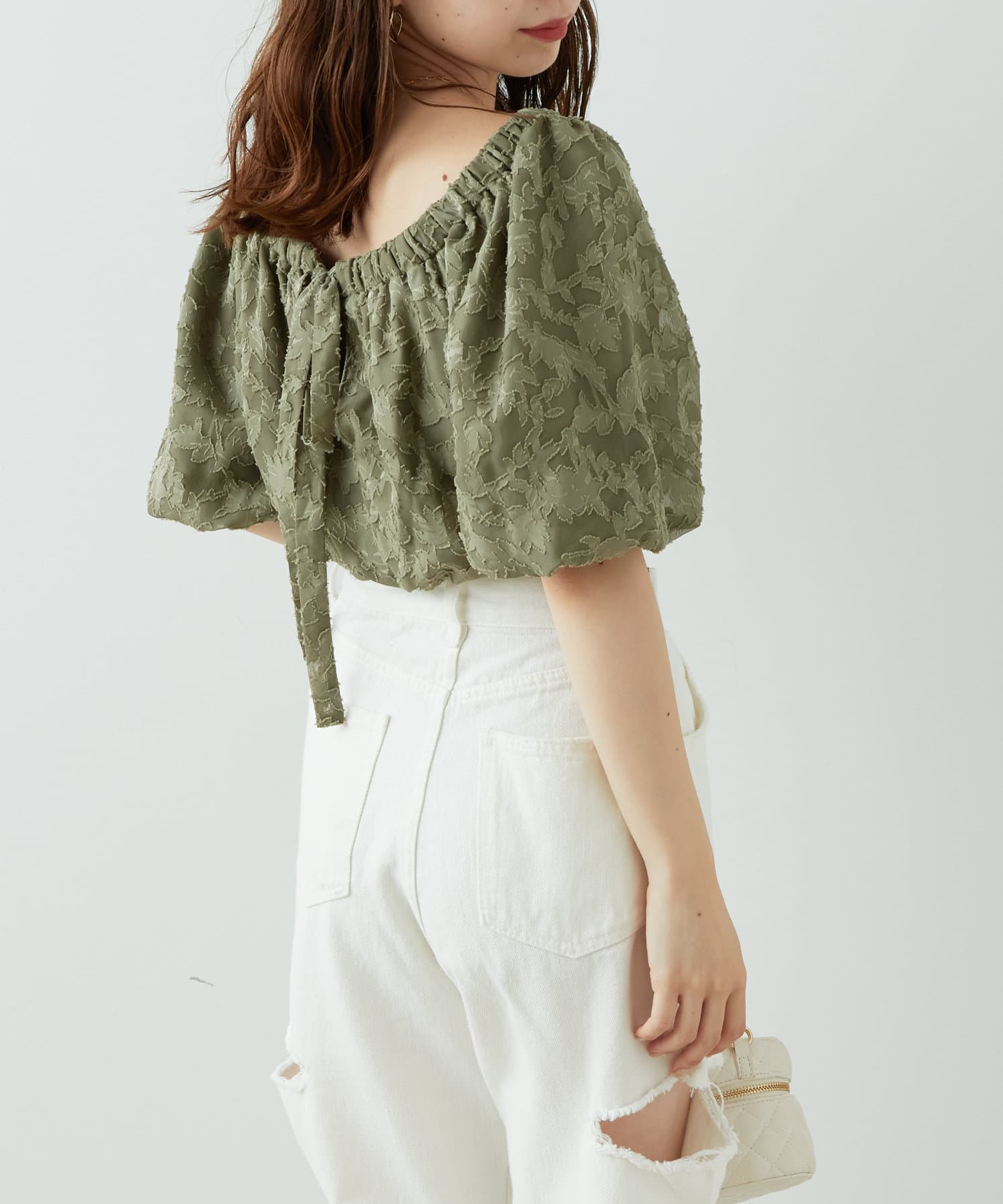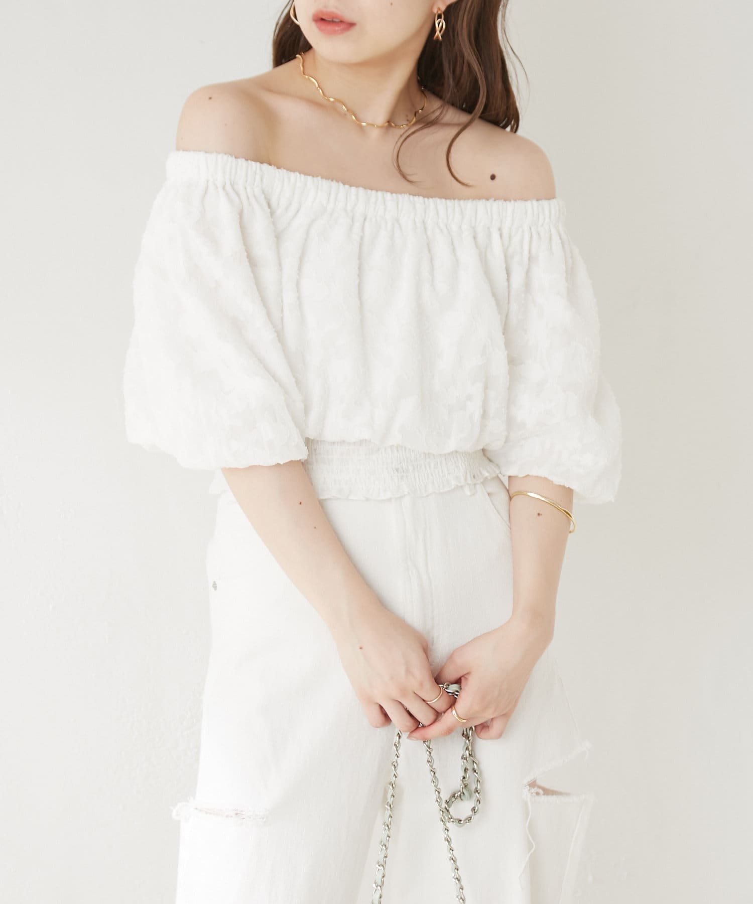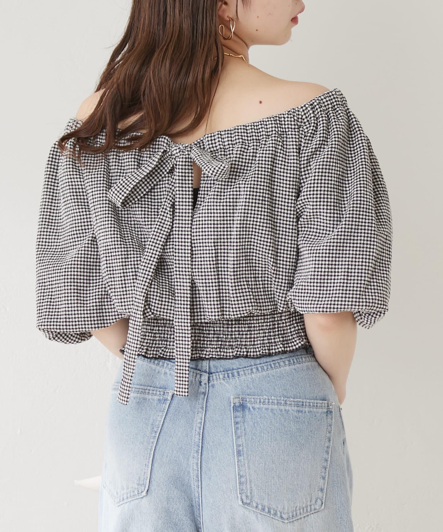 【Chico】バックリボンシアーバルーンオフショルブラウス