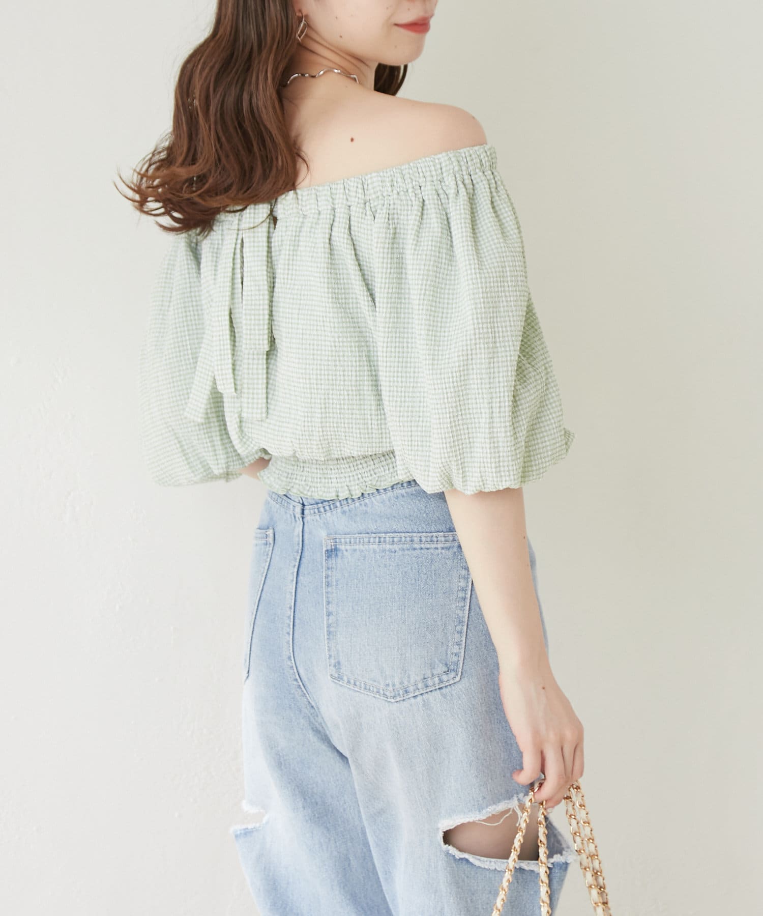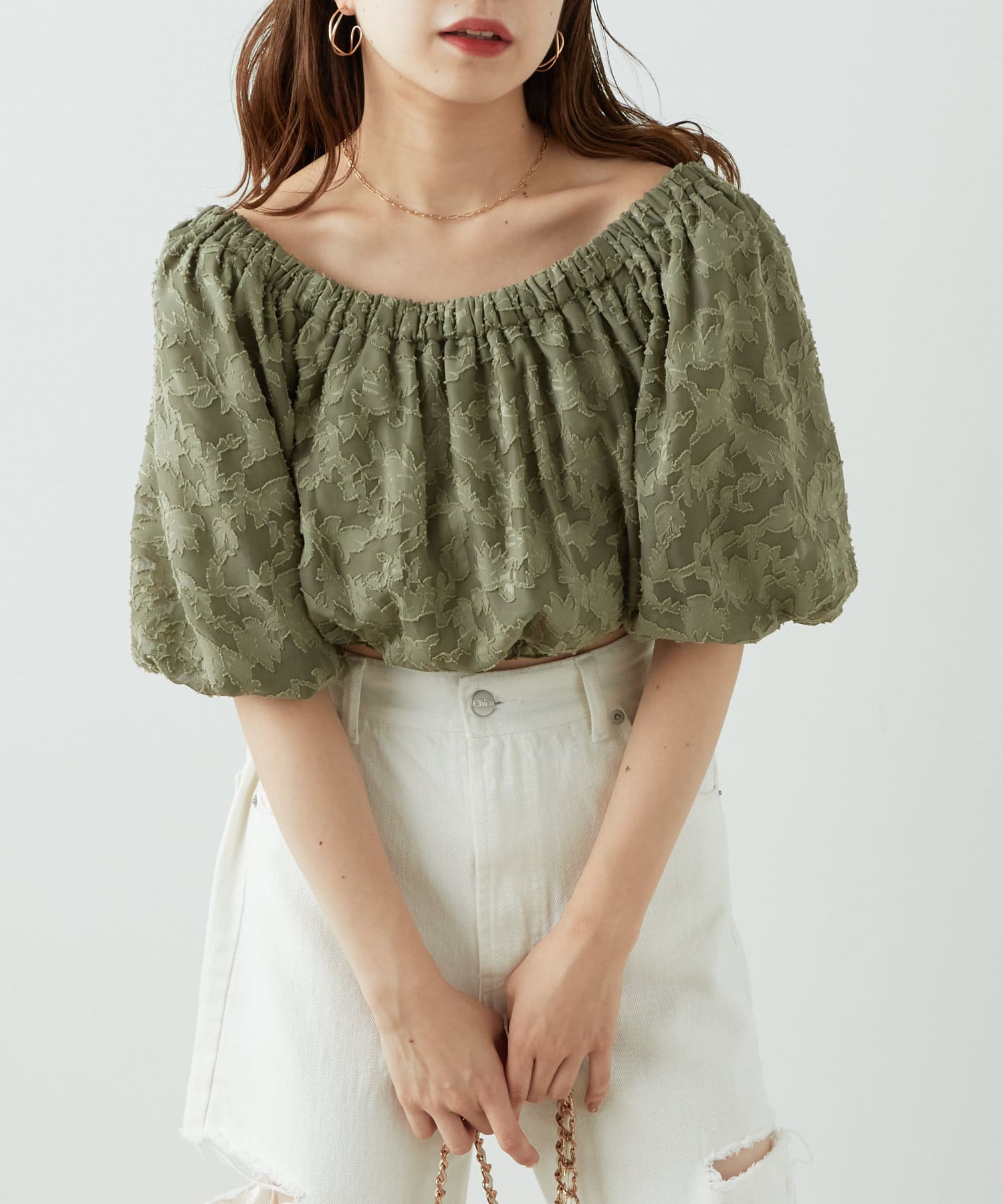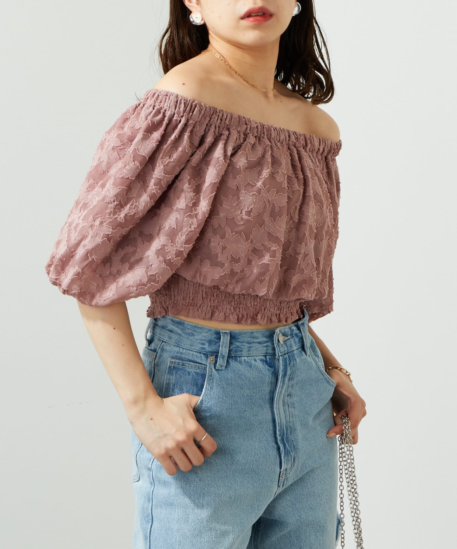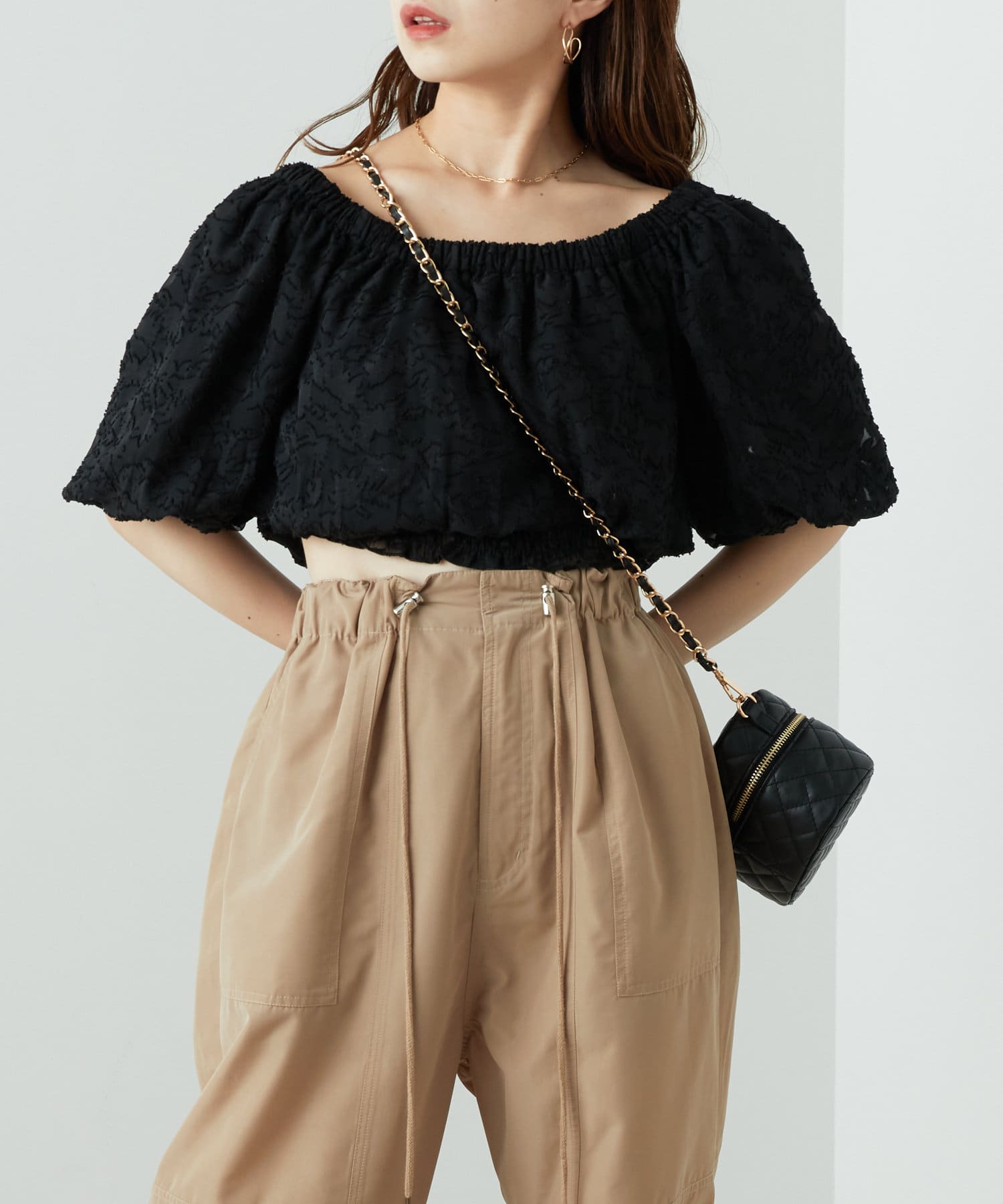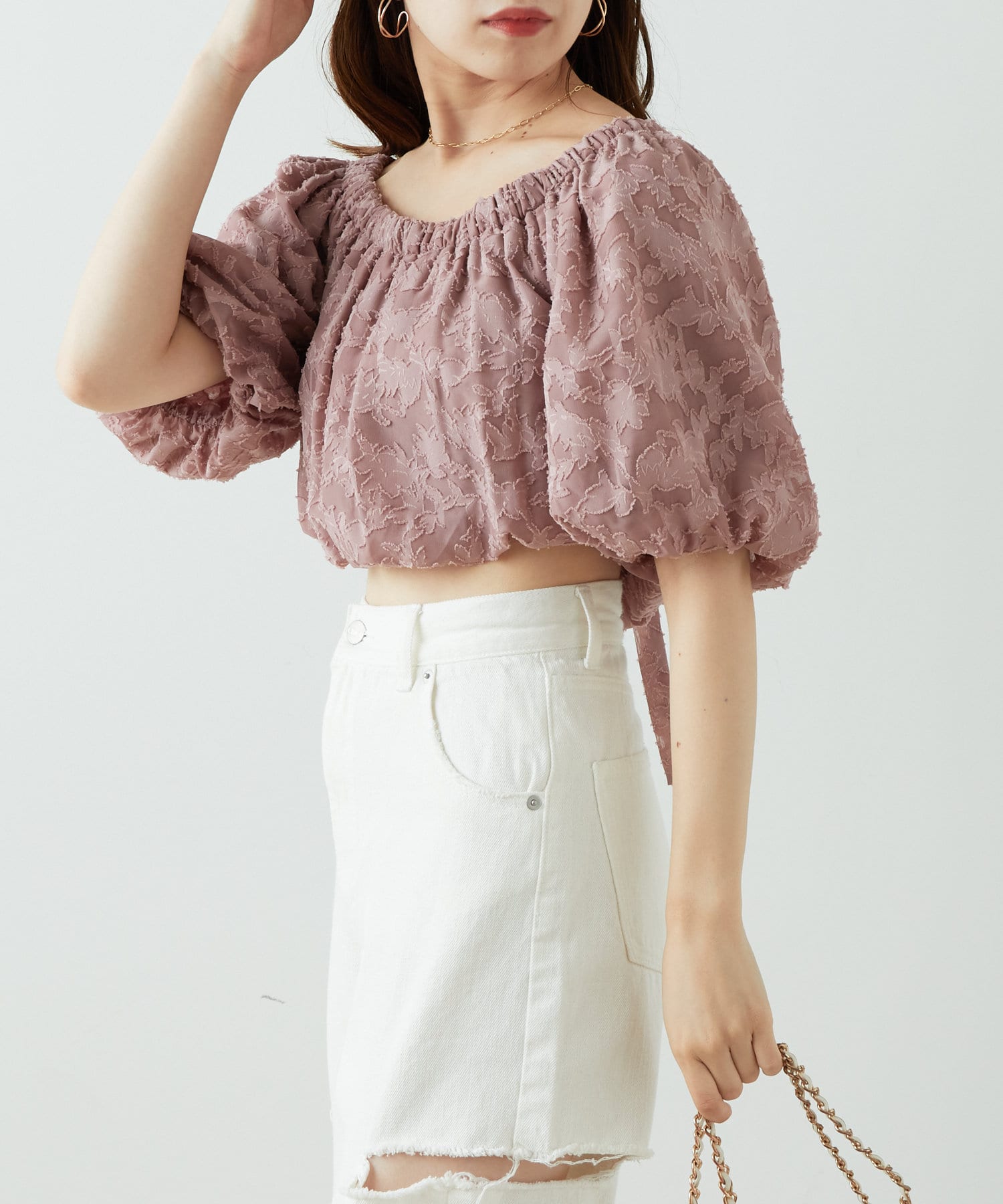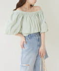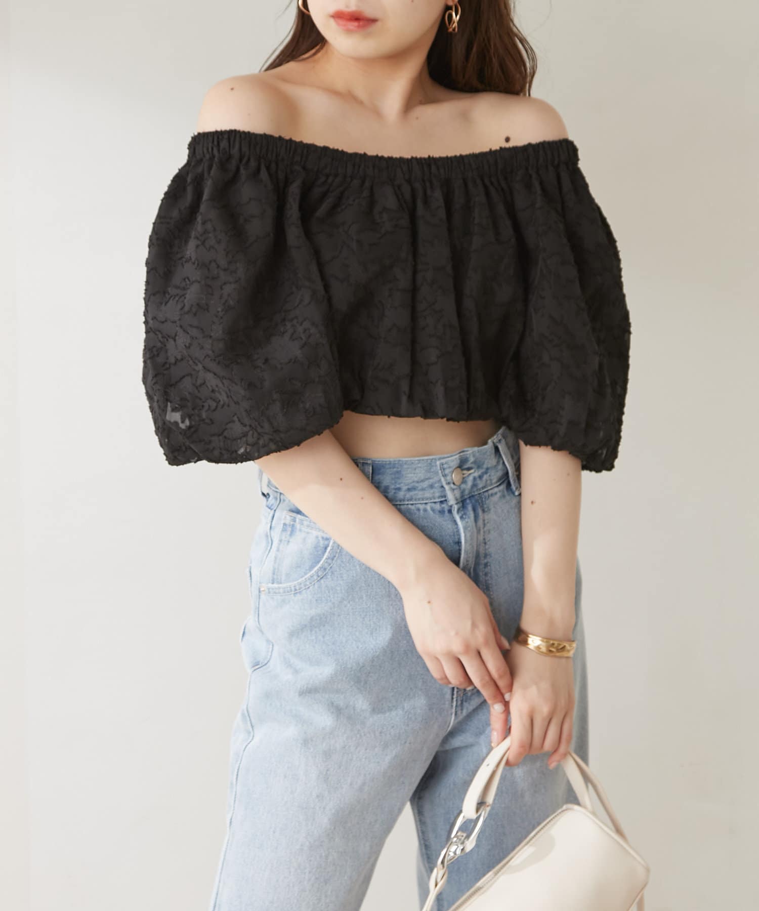 【Chico】バックリボンシアーバルーンオフショルブラウス