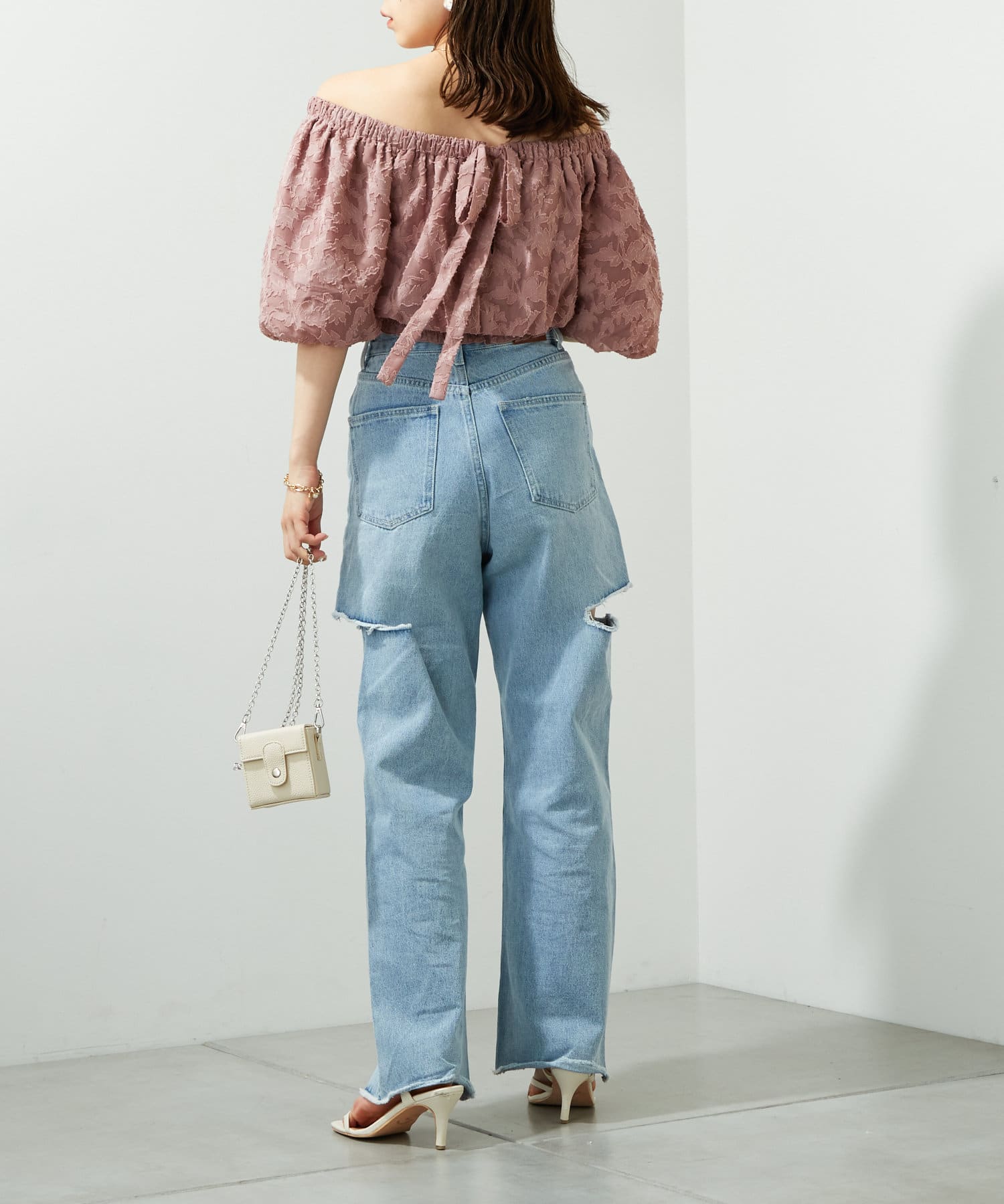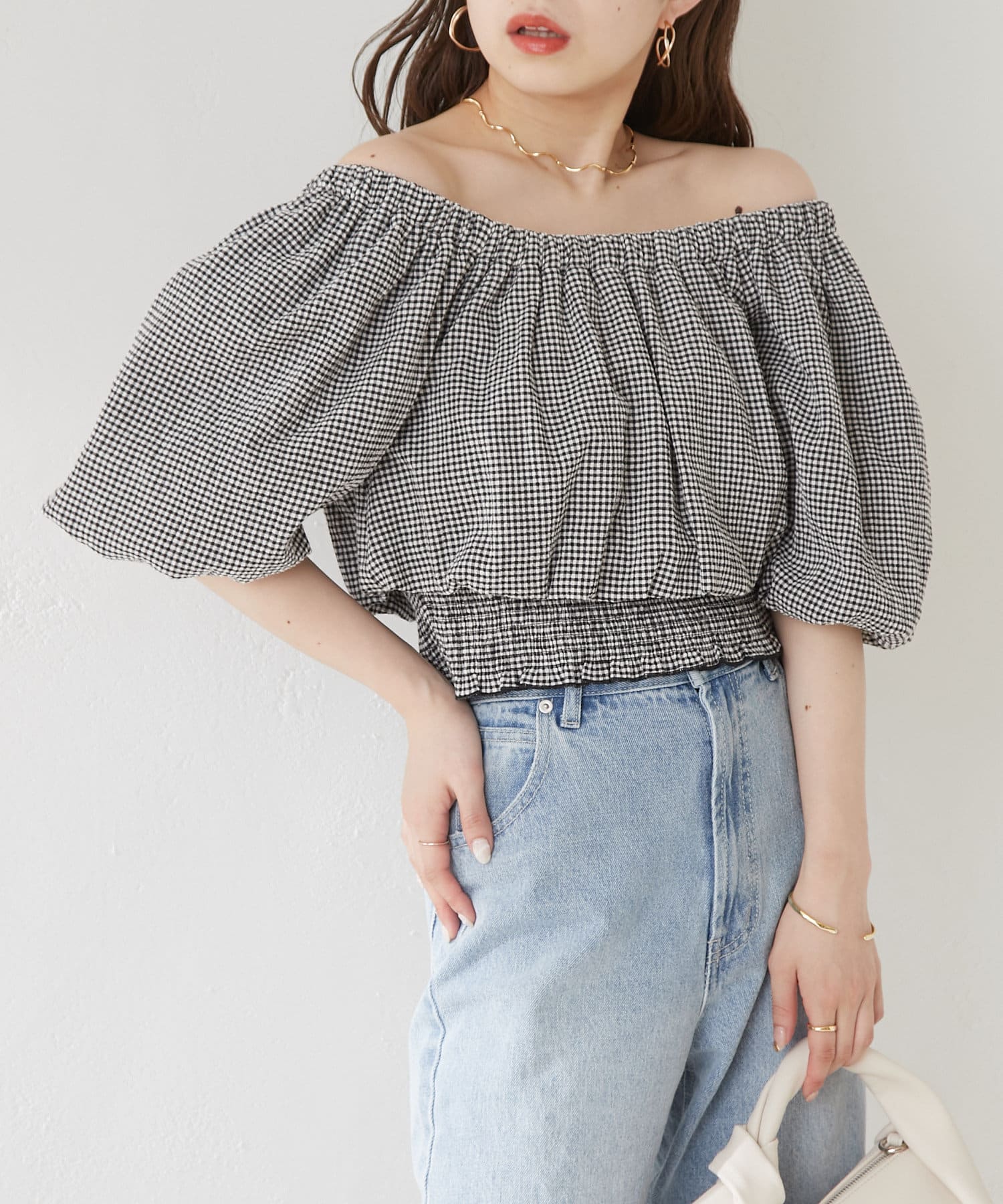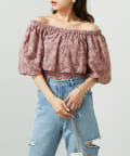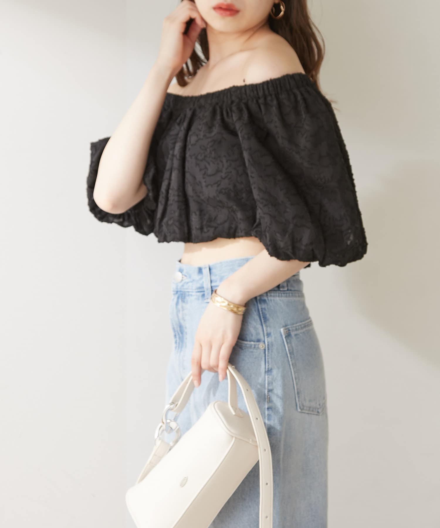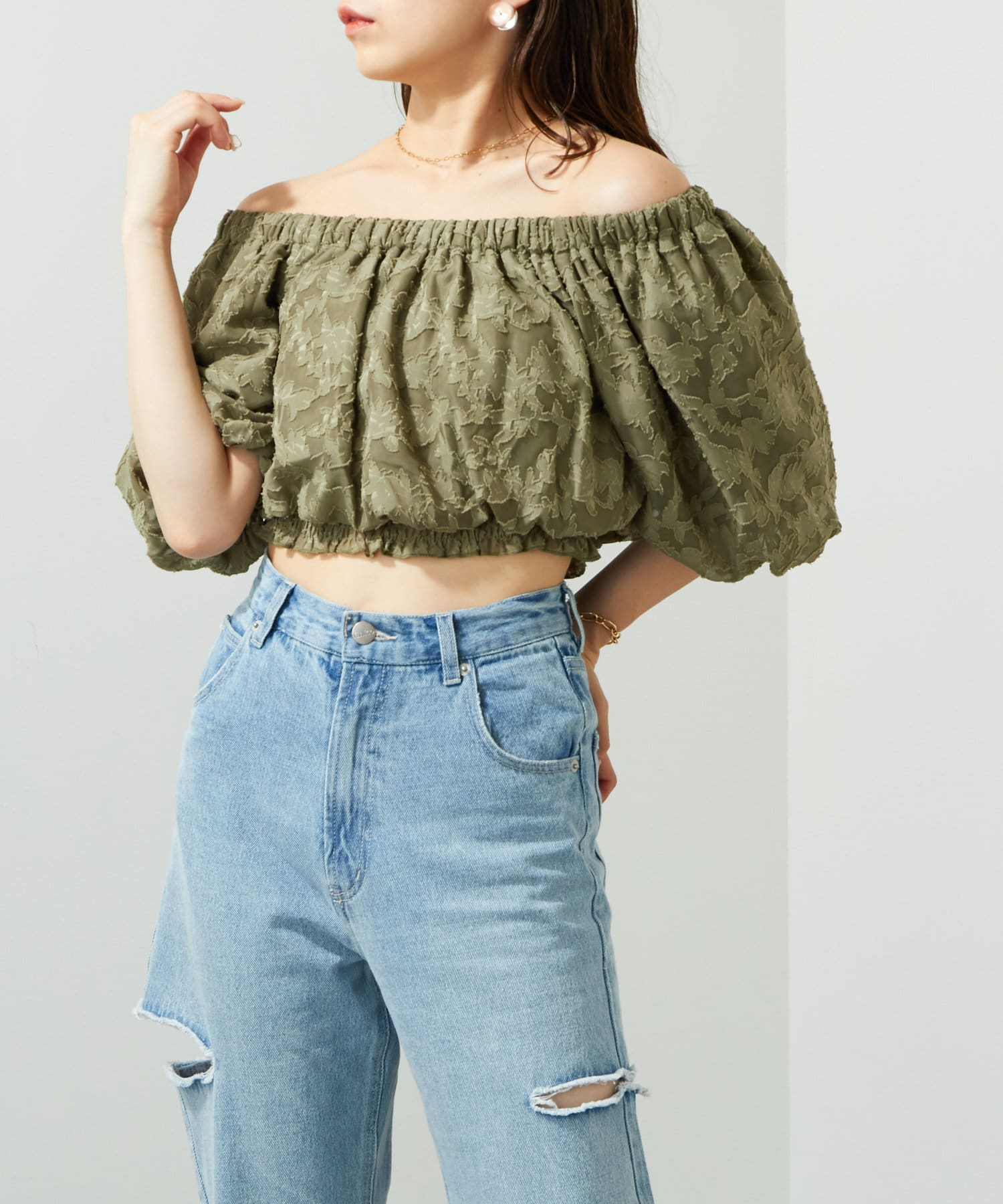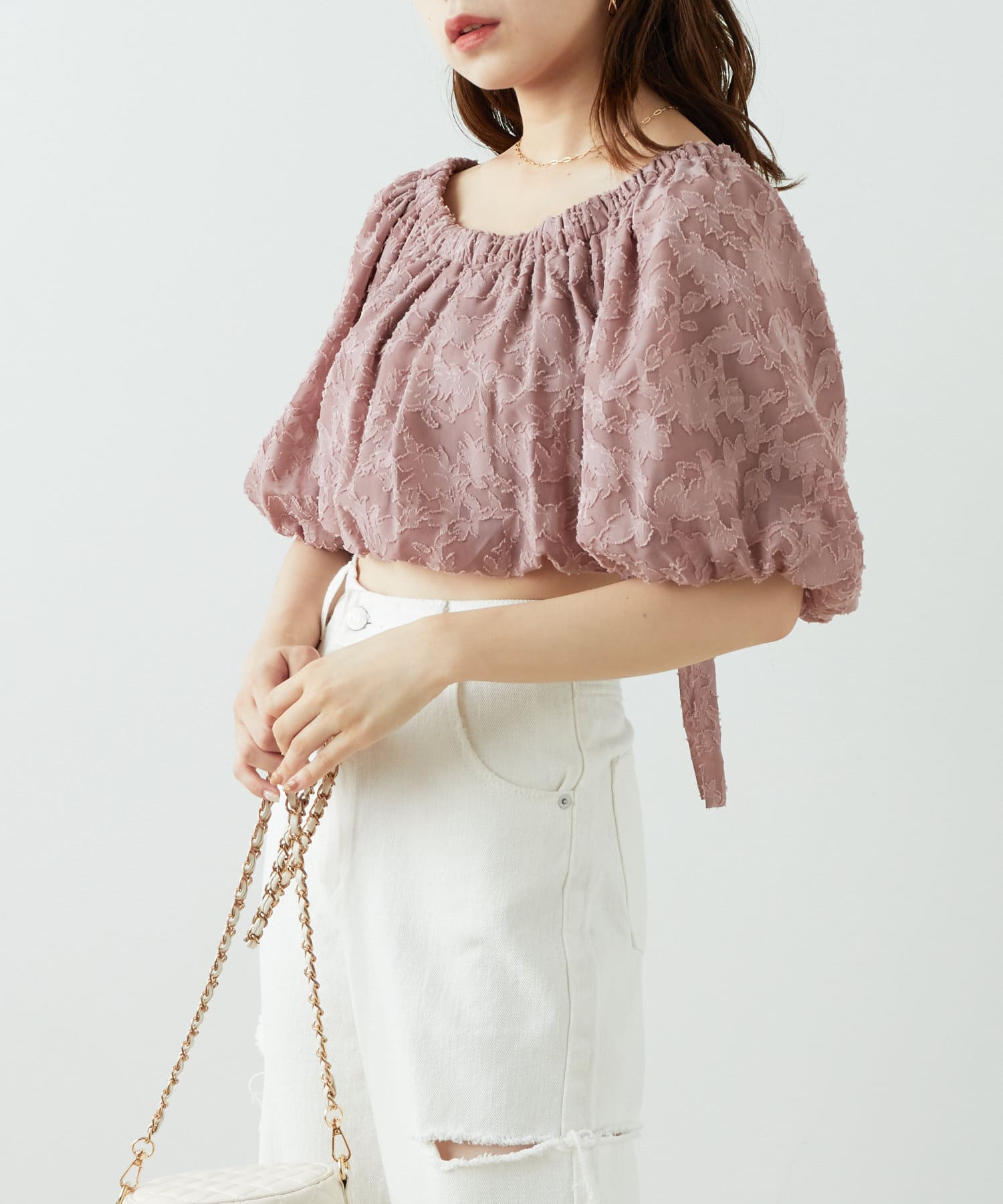 【Chico】バックリボンシアーバルーンオフショルブラウス