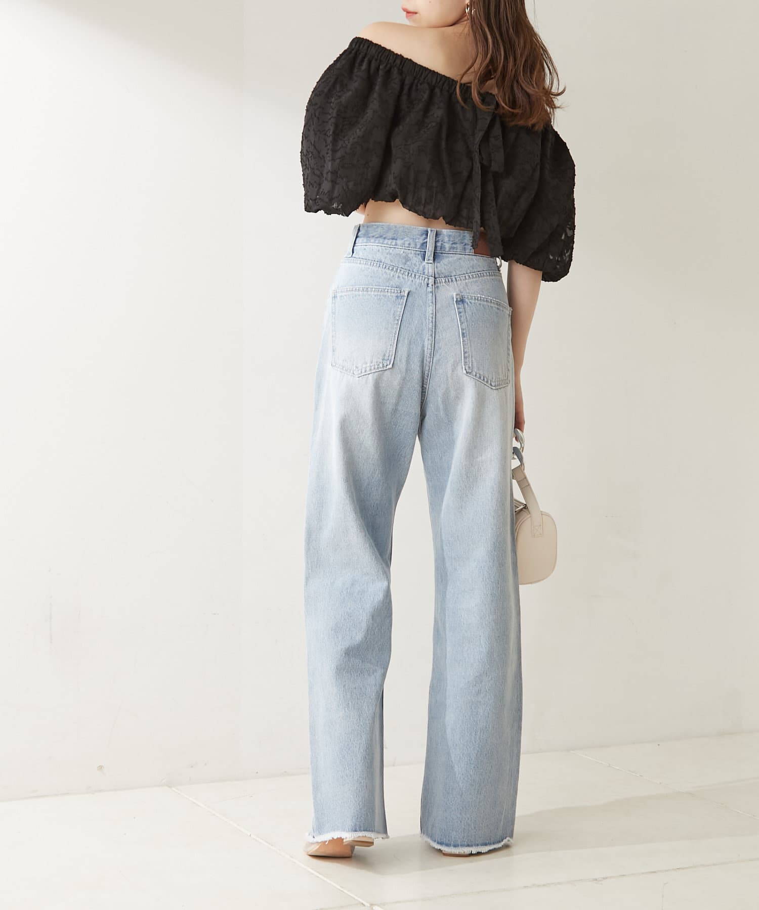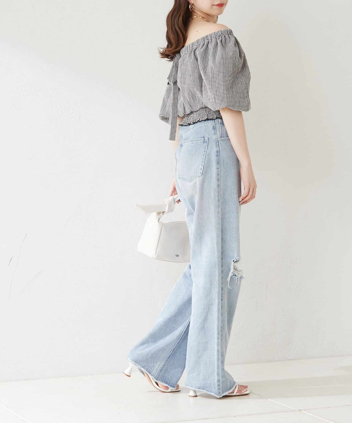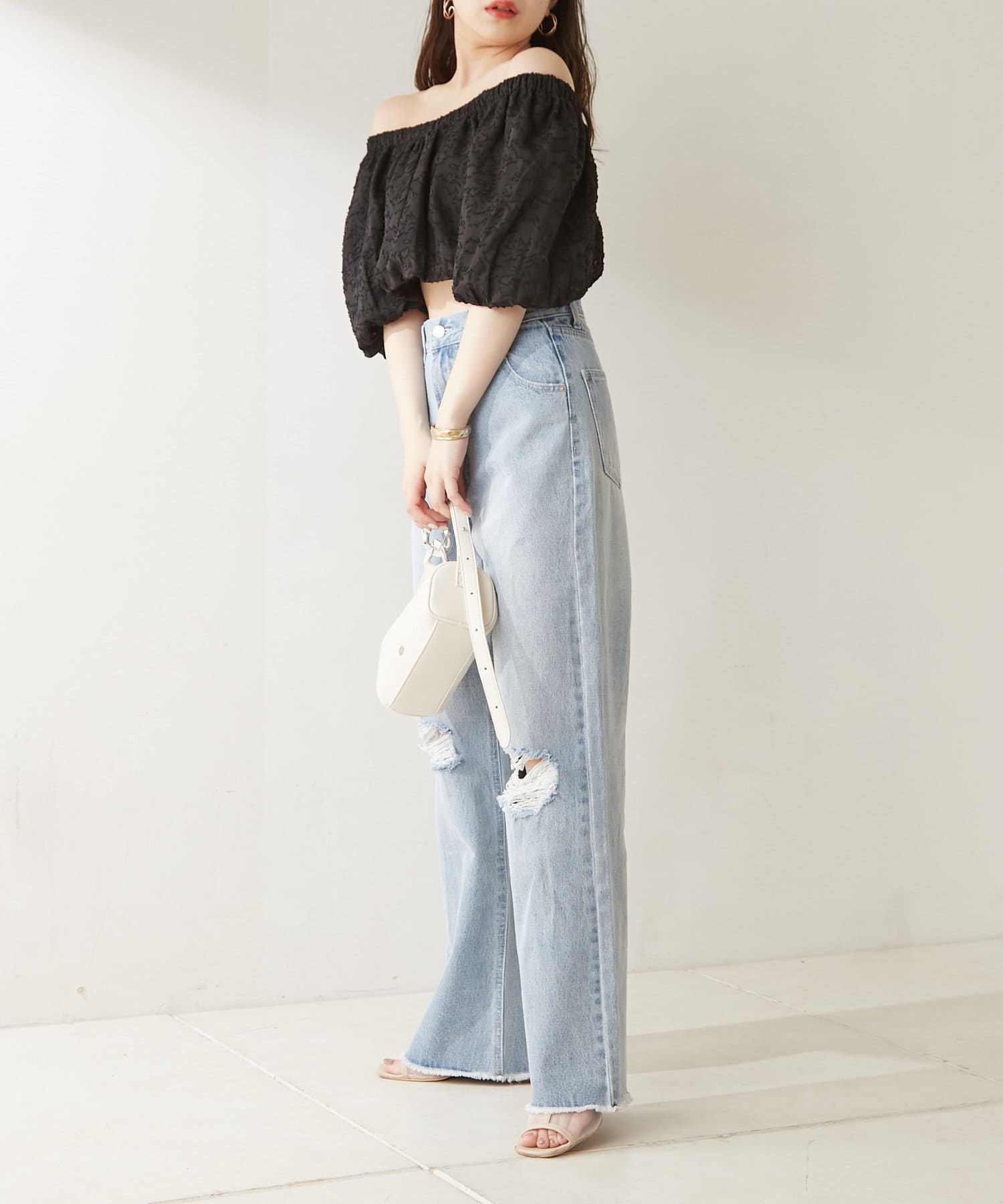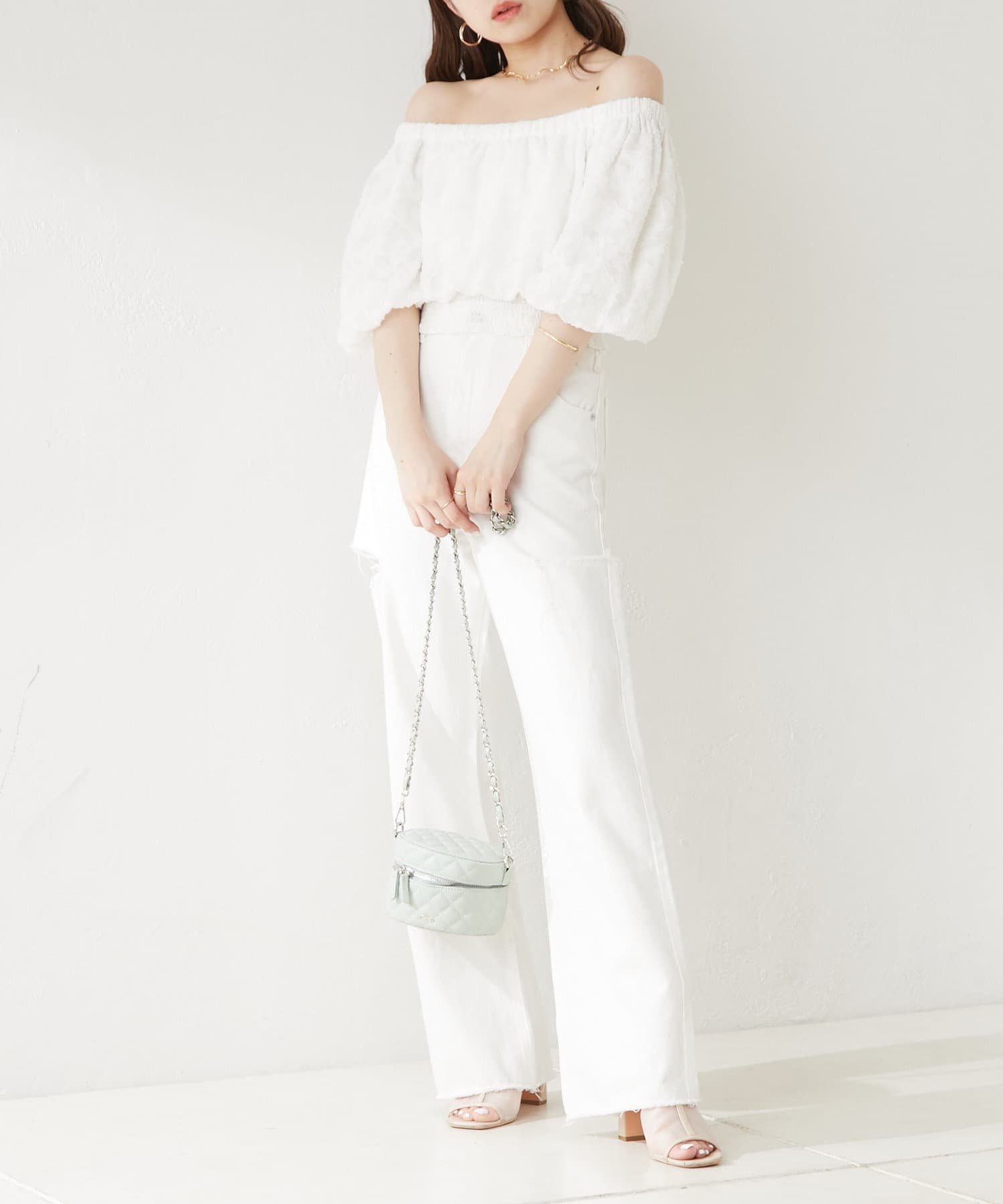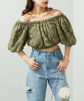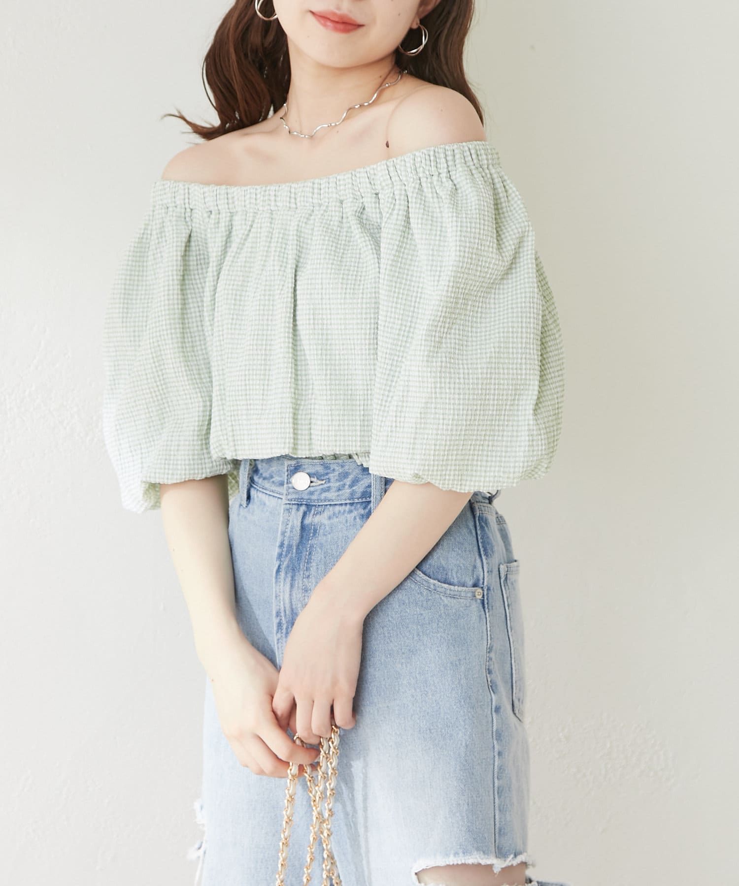 【Chico】バックリボンシアーバルーンオフショルブラウス