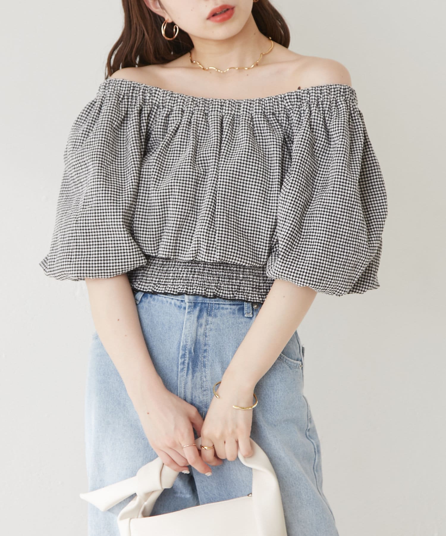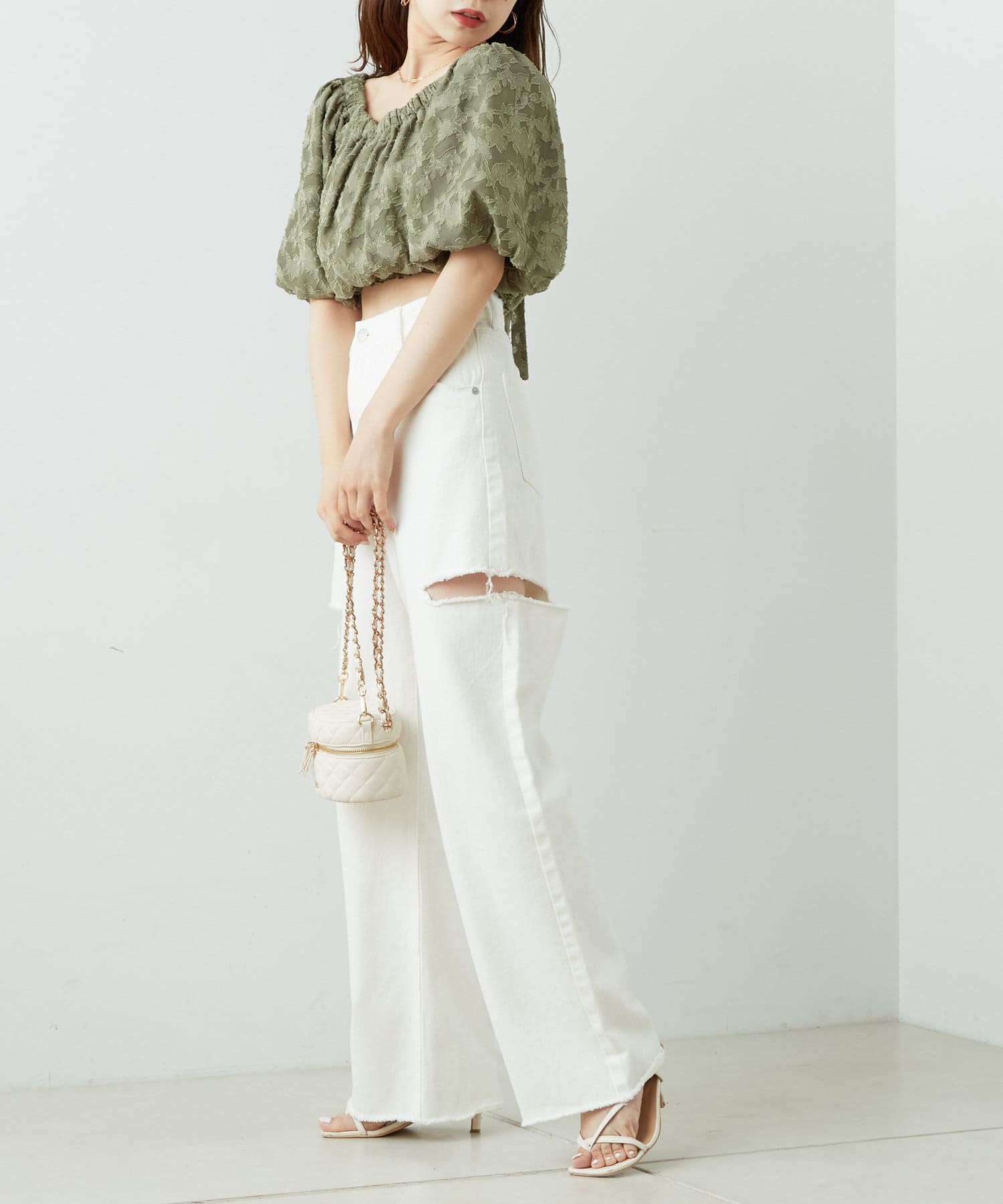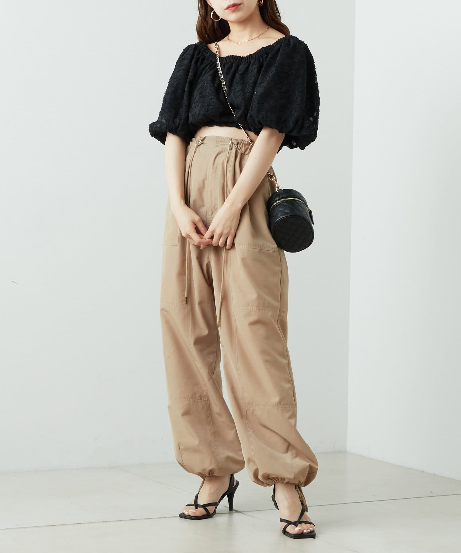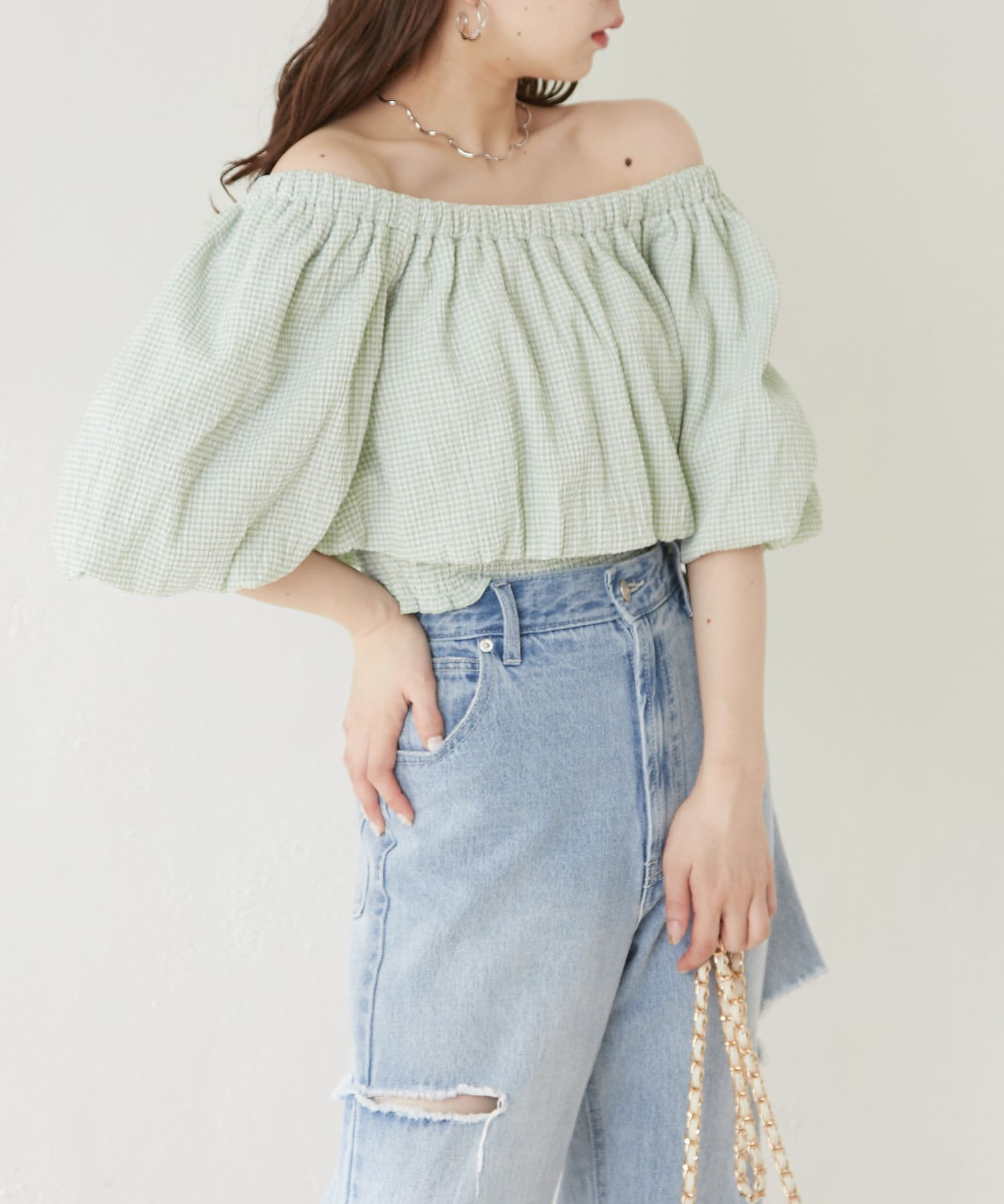 ・バルーンシルエットがデコルテラインを綺麗に見せるだけでなく、腕回りのカバーもしてくれるため、華奢見えします◎