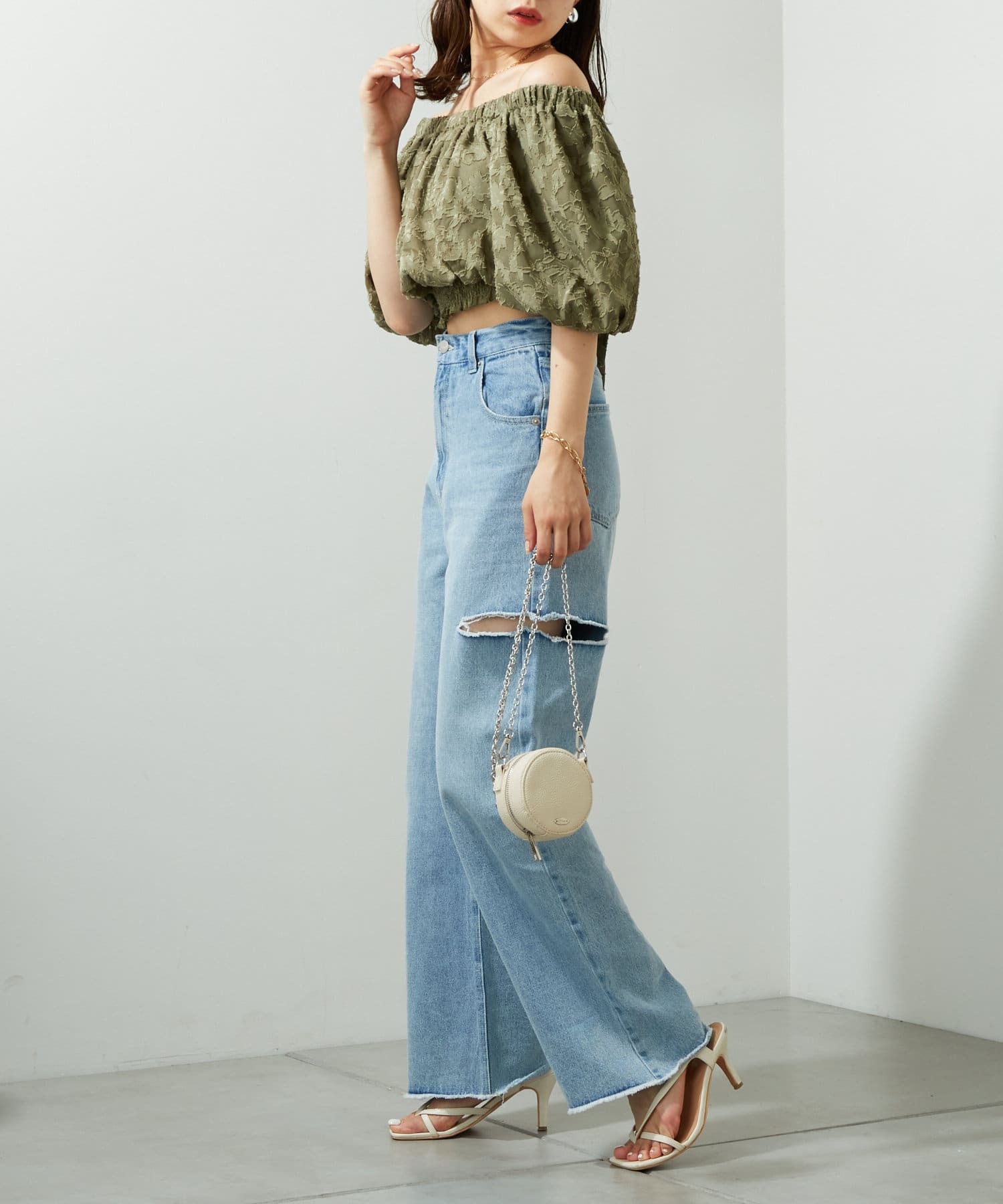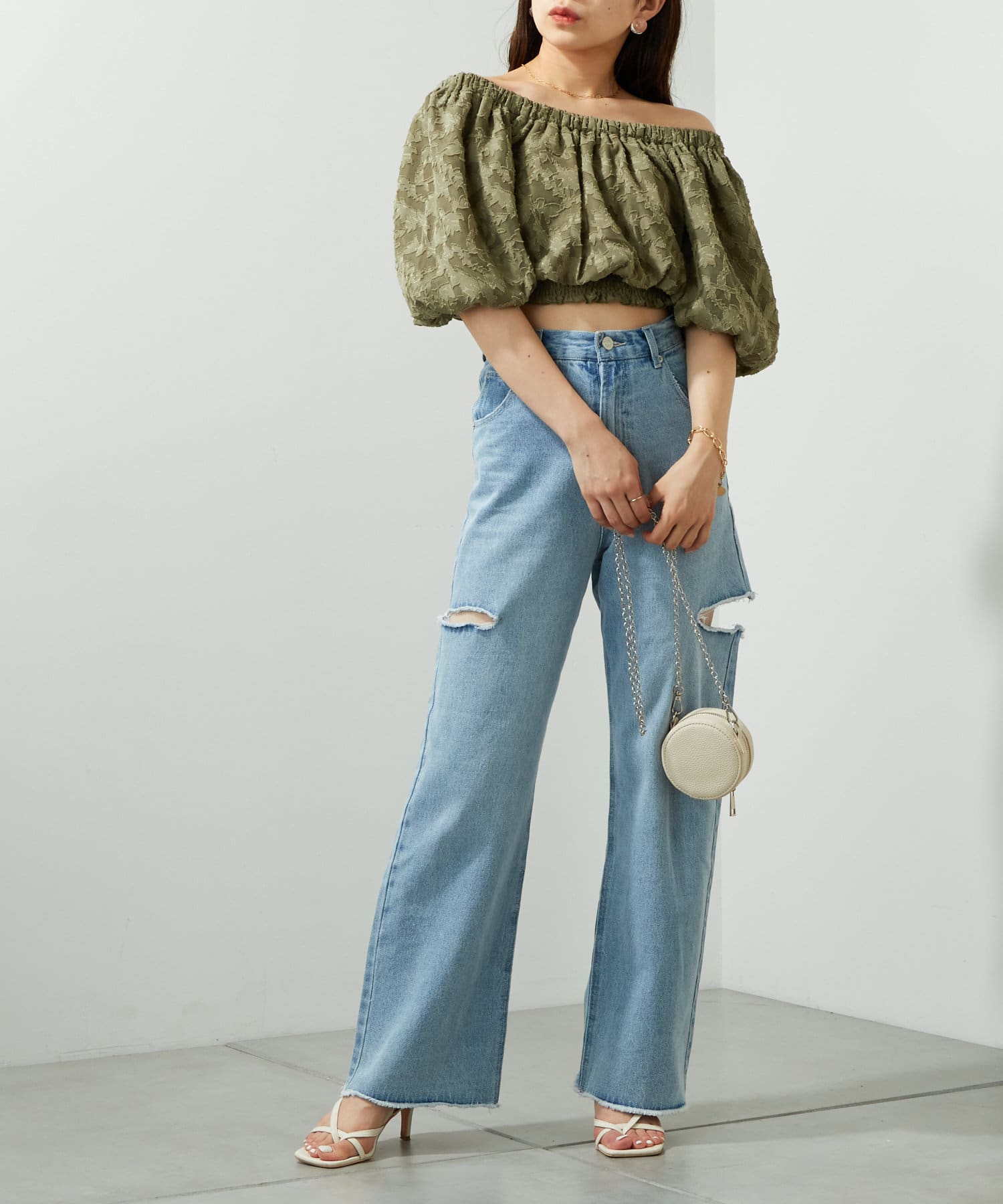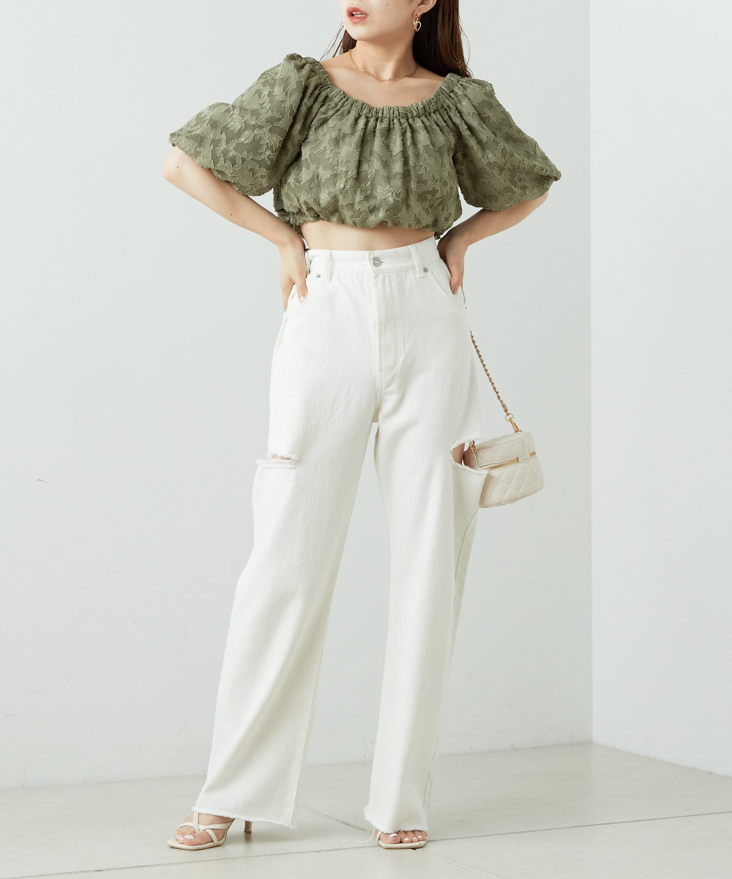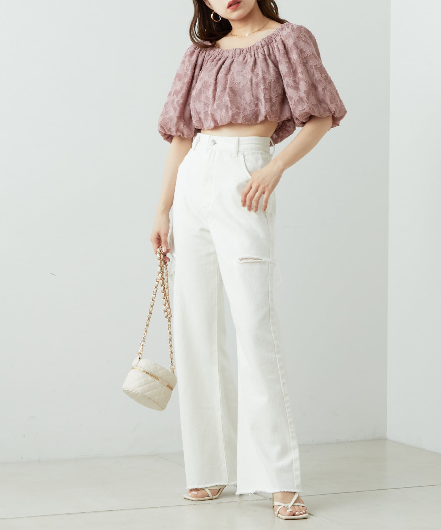 ・バルーンシルエットがデコルテラインを綺麗に見せるだけでなく、腕回りのカバーもしてくれるため、華奢見えします◎