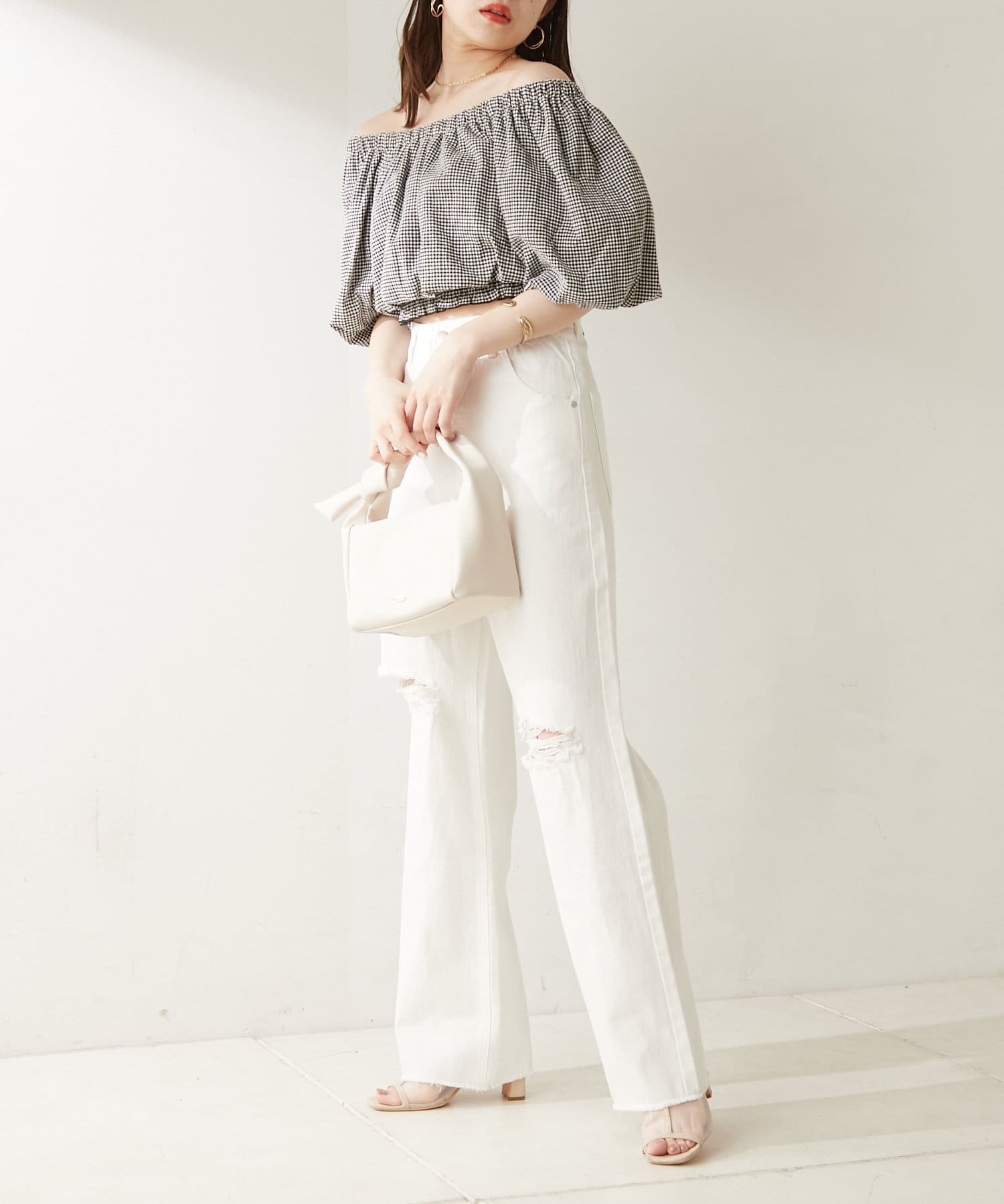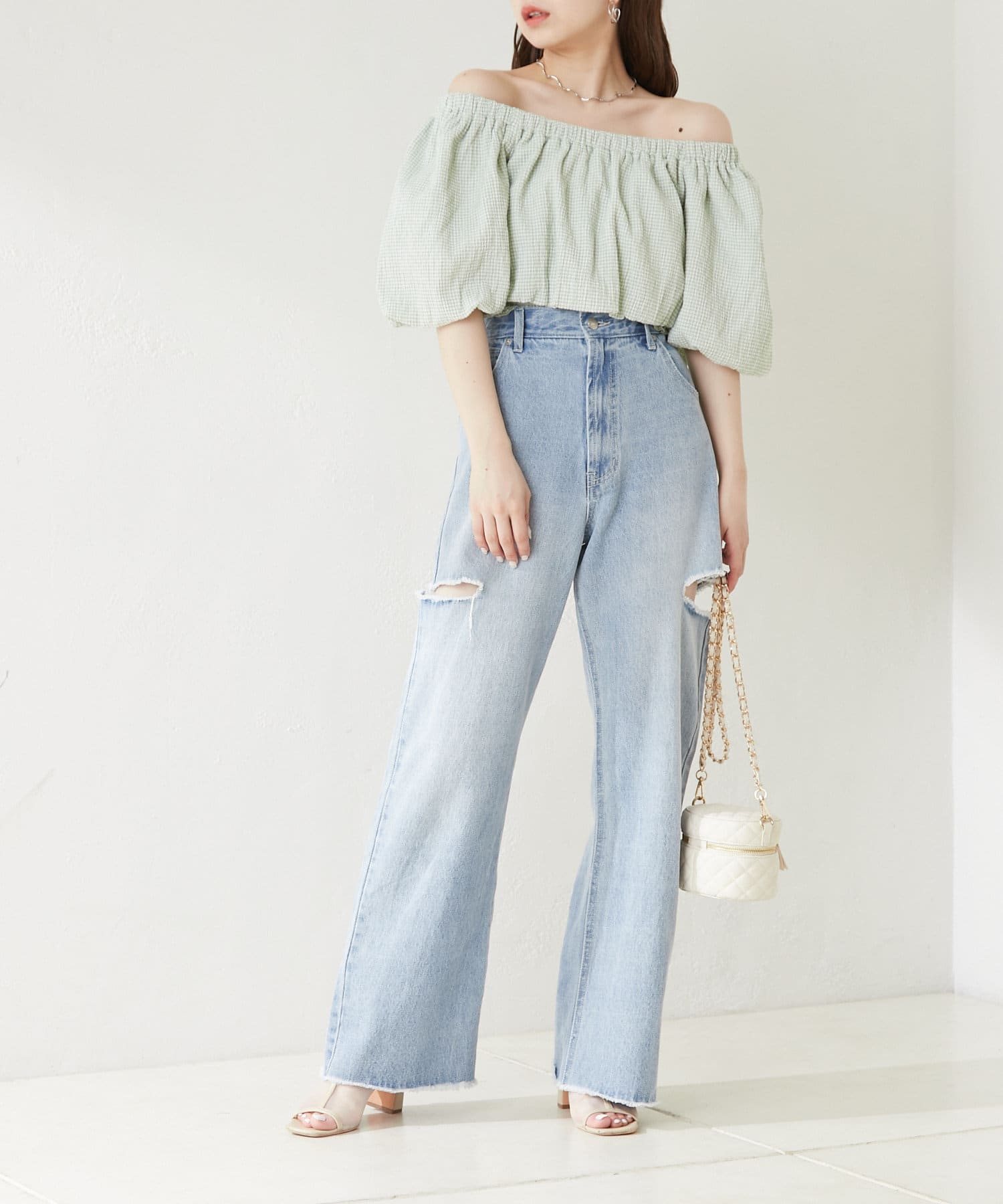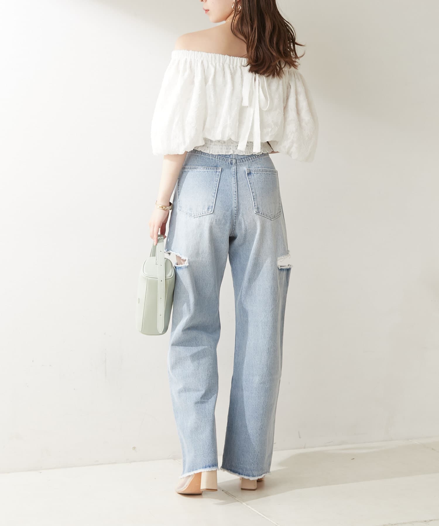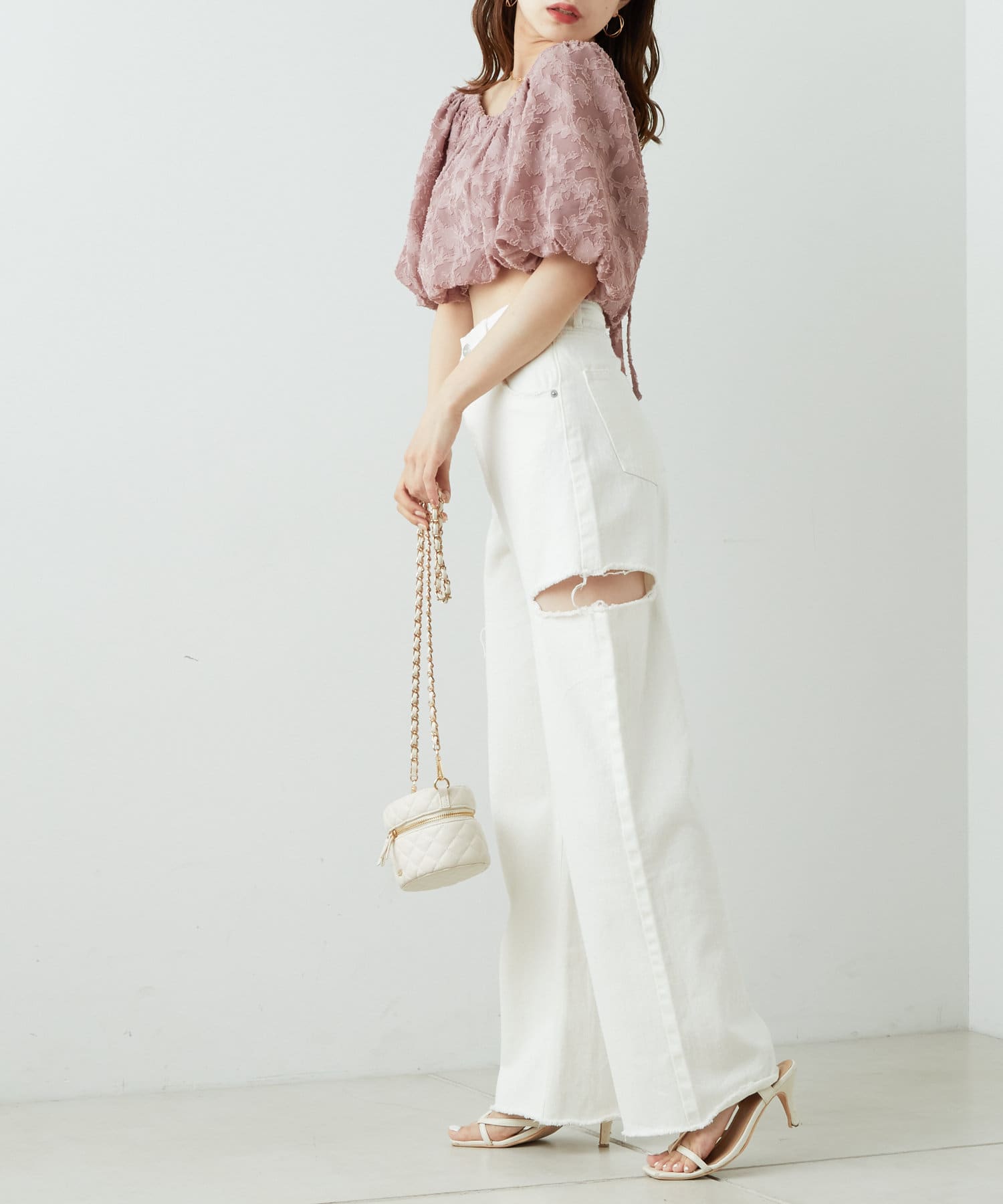 ・バルーンシルエットがデコルテラインを綺麗に見せるだけでなく、腕回りのカバーもしてくれるため、華奢見えします◎