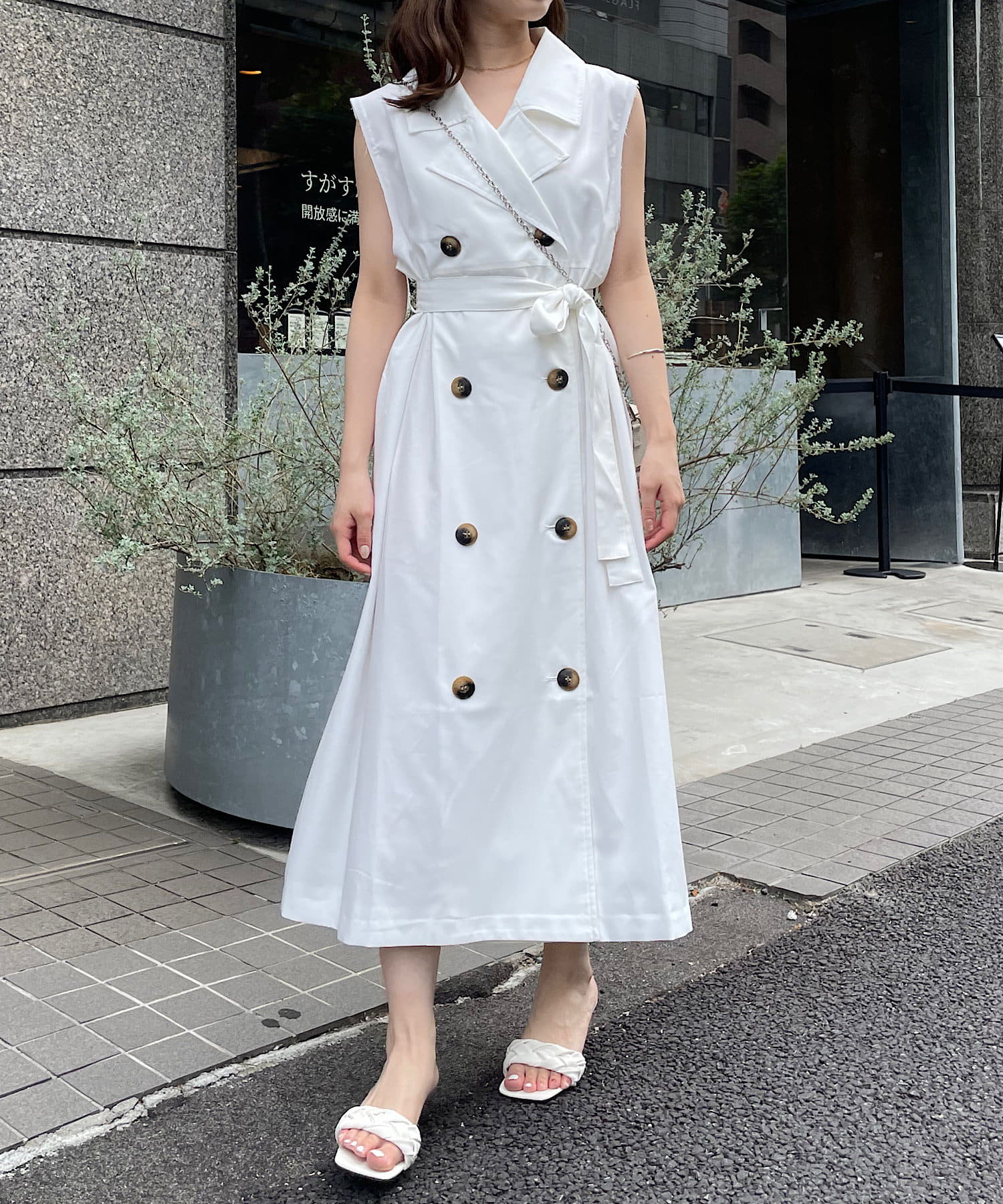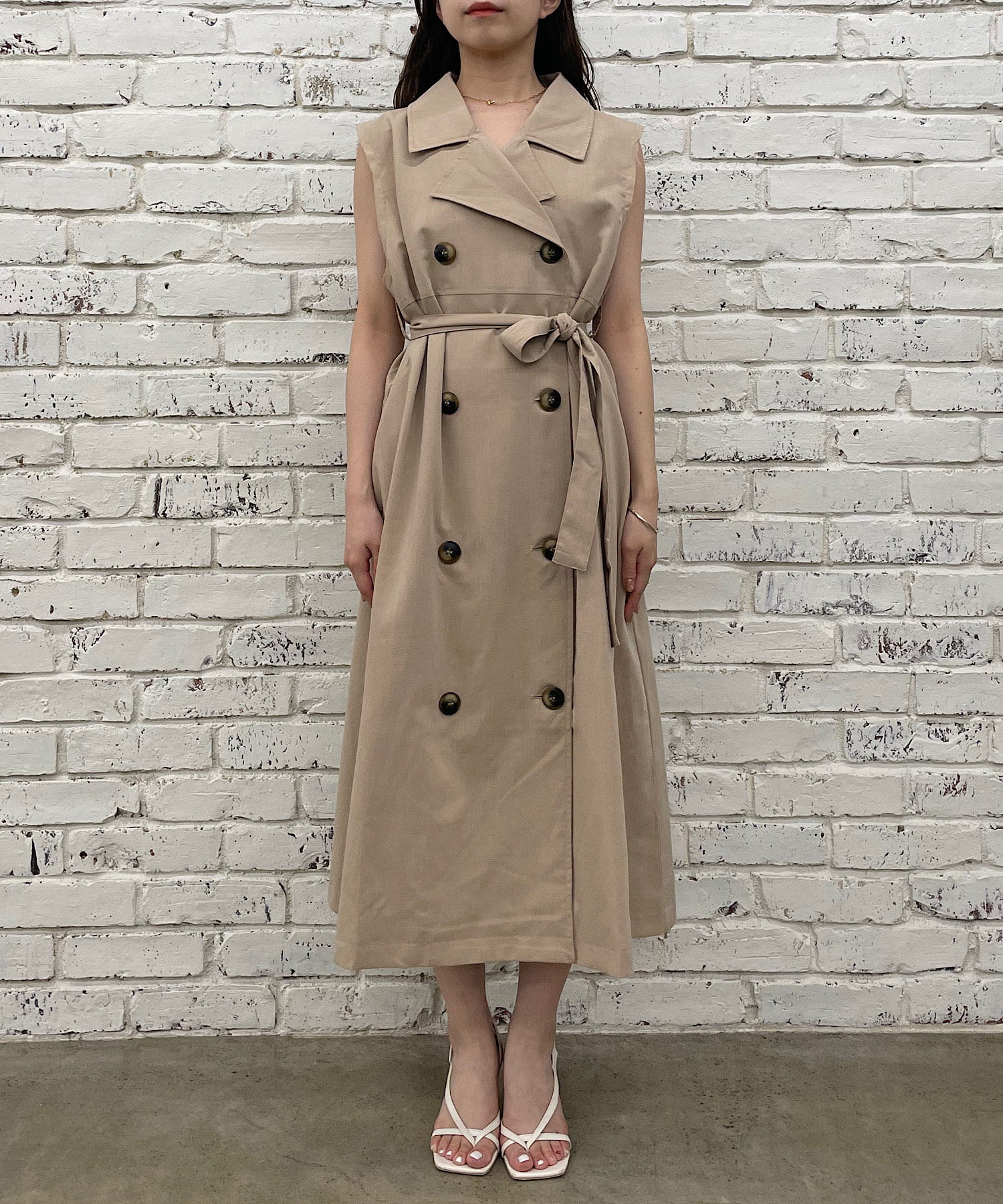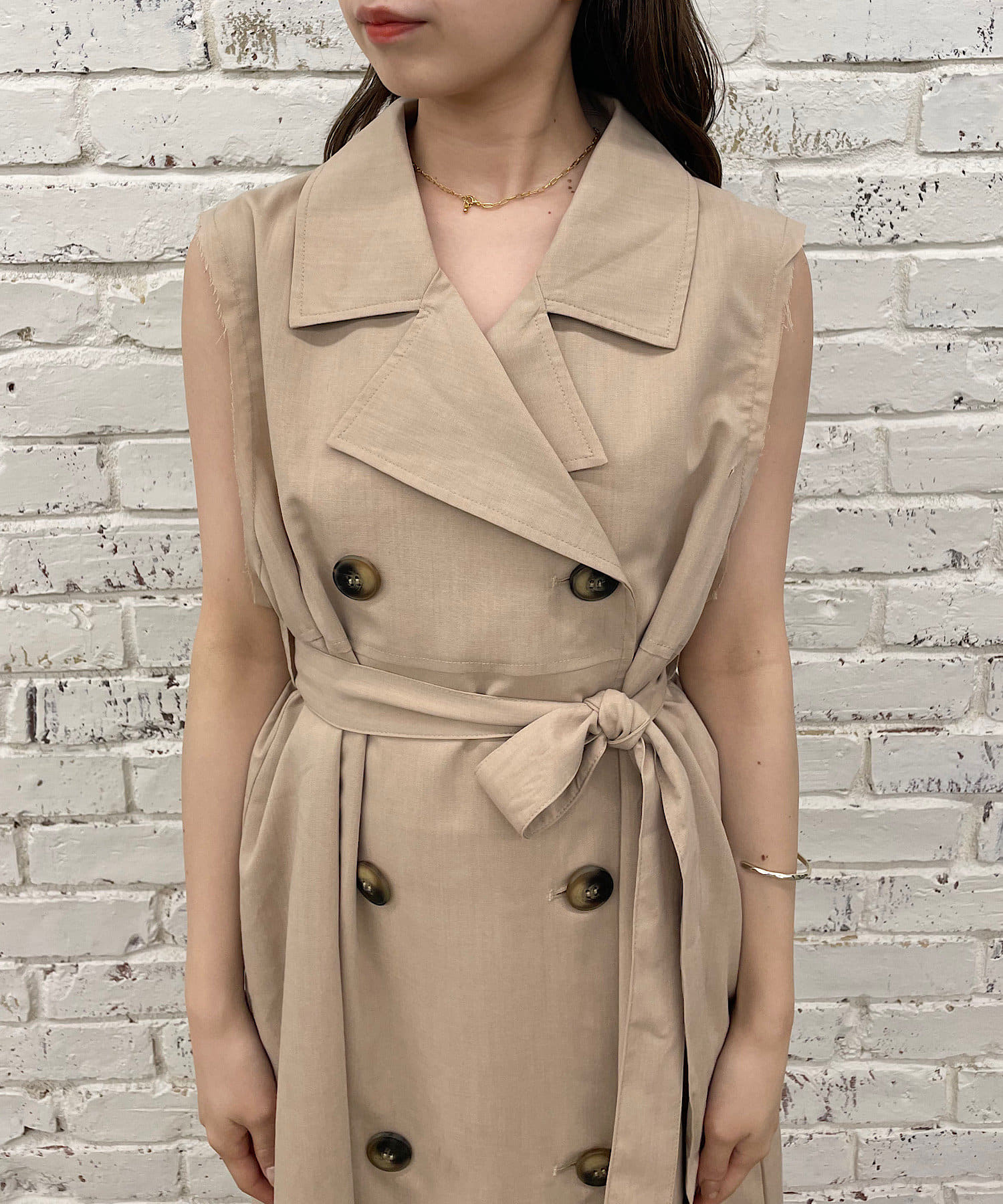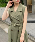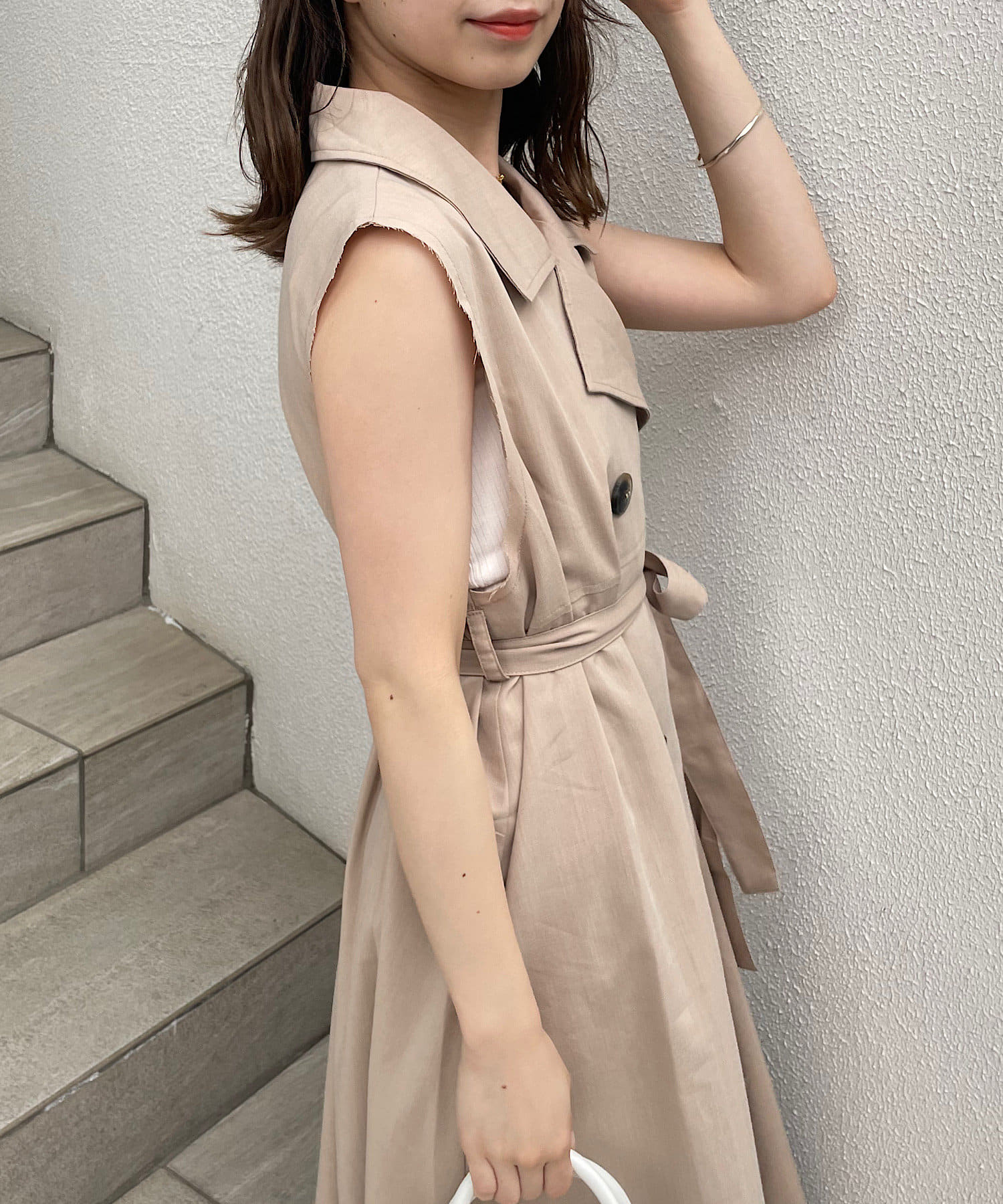 ・女性らしさたっぷりのトレンチデザインのベストワンピース。