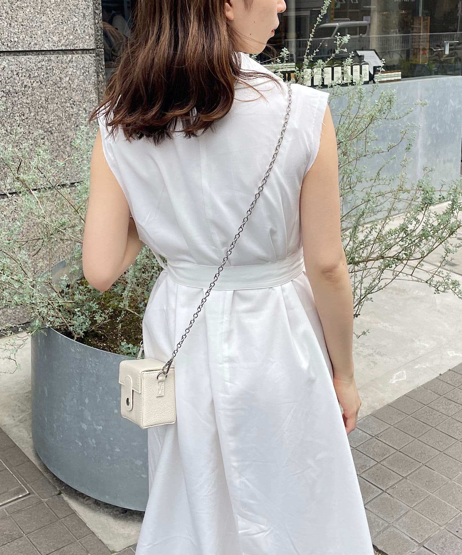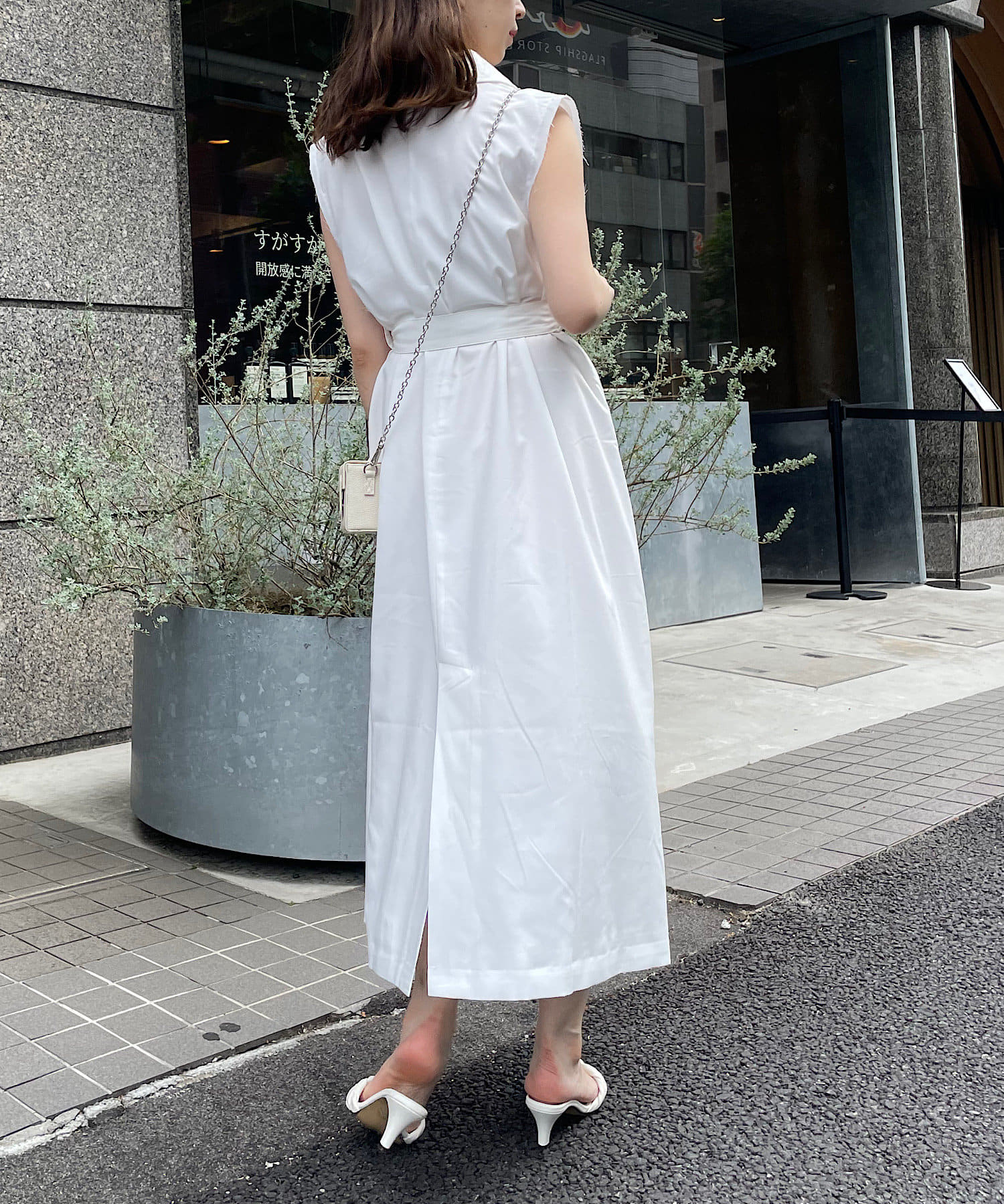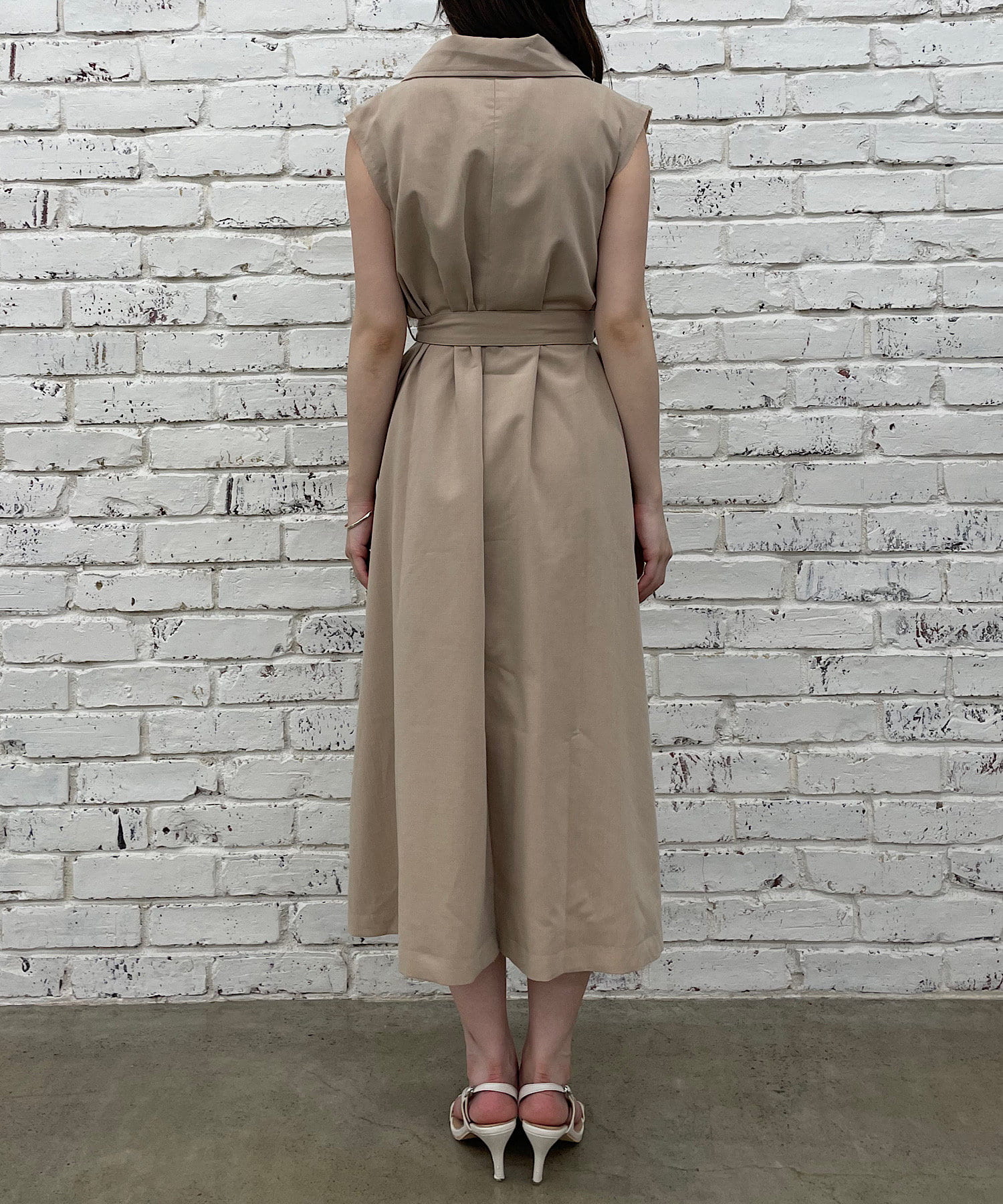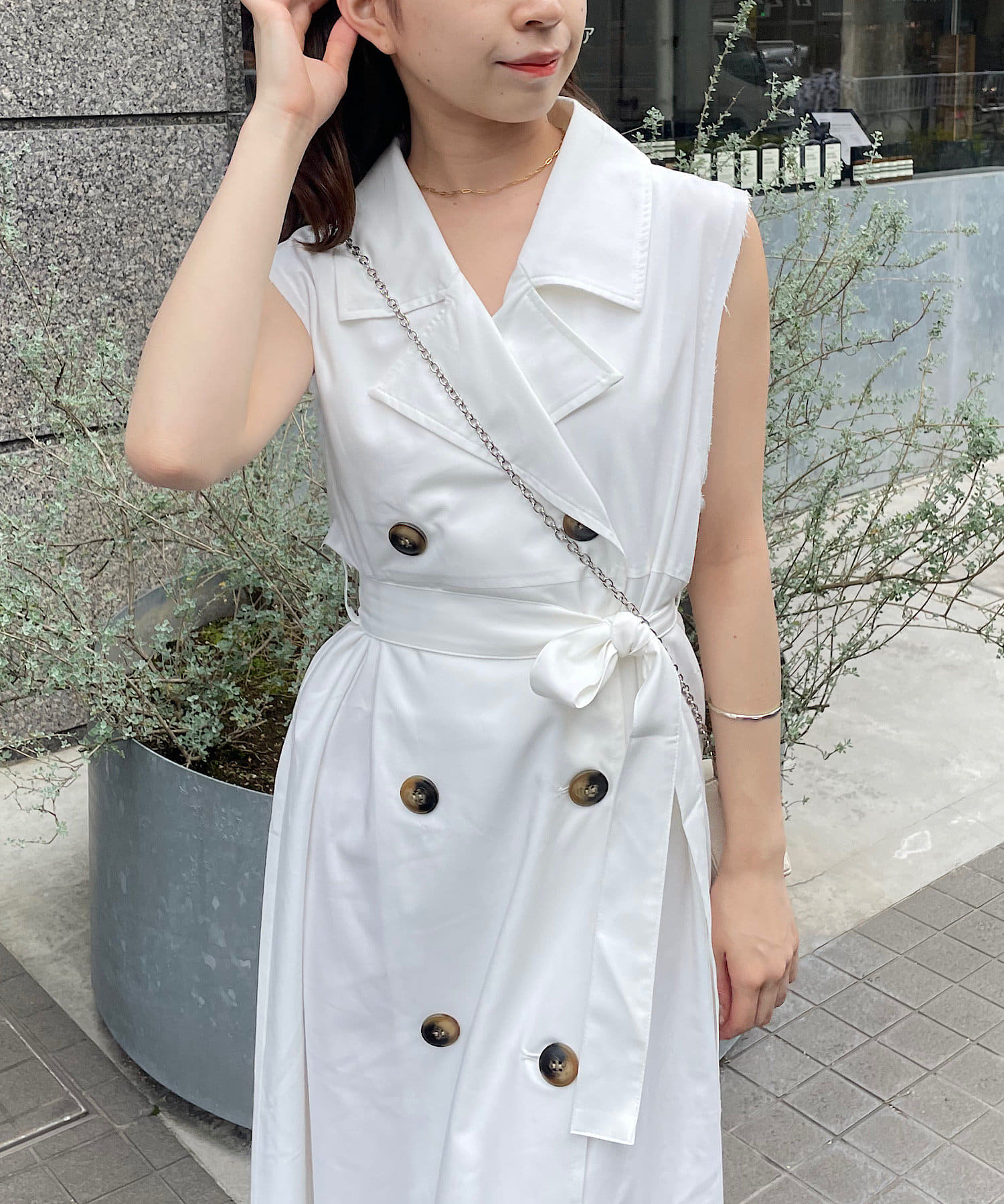 ・女性らしさたっぷりのトレンチデザインのベストワンピース。