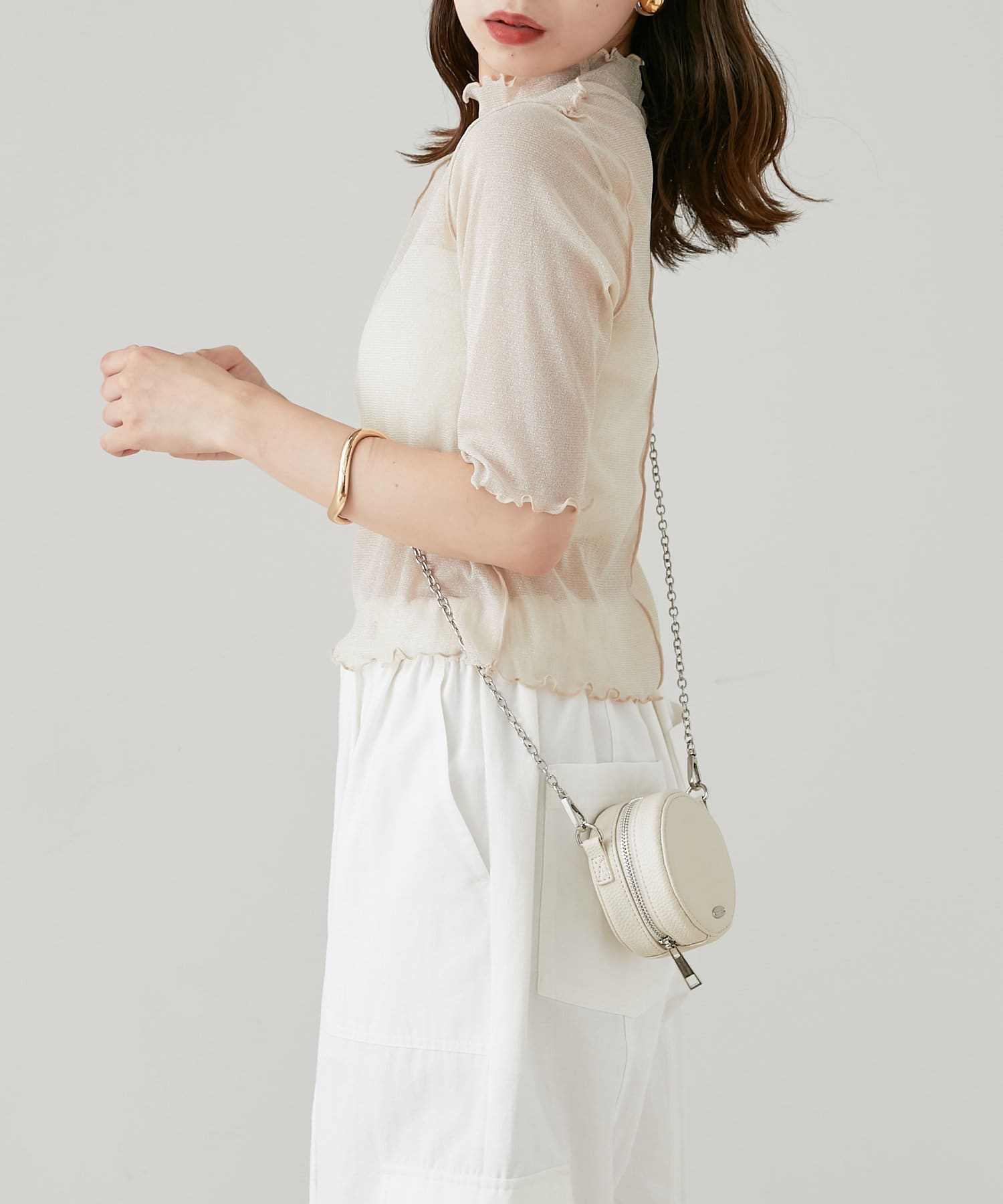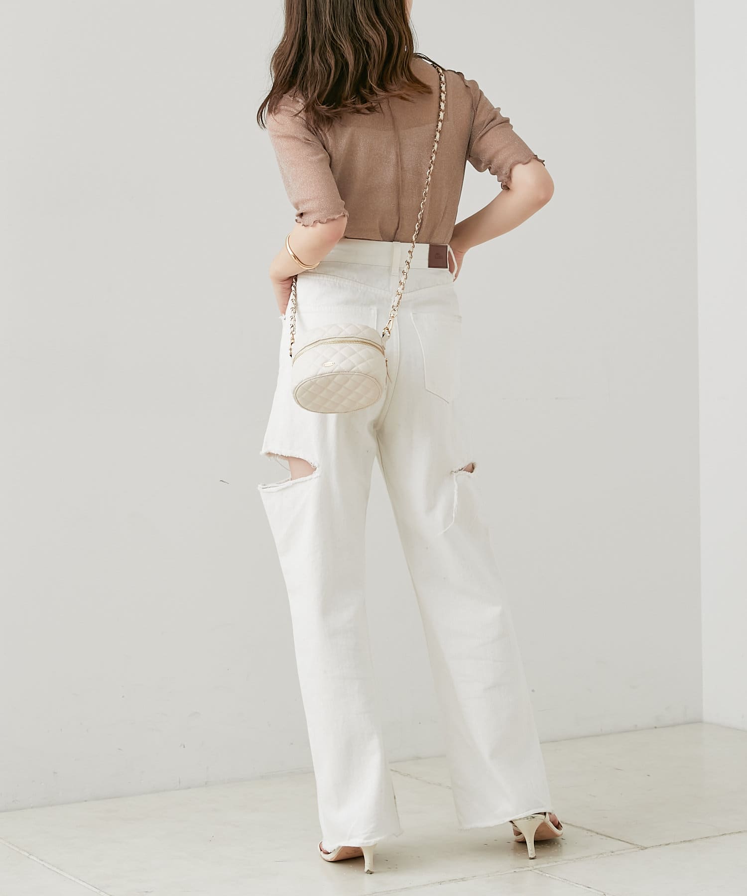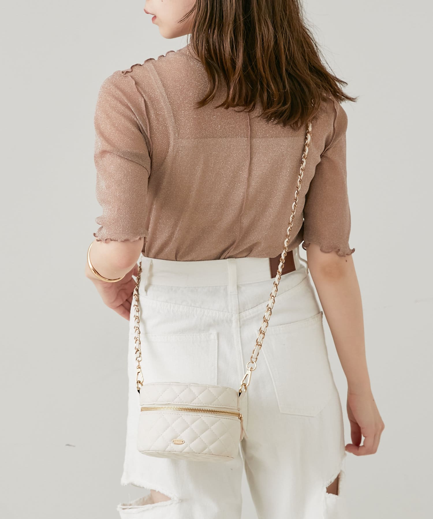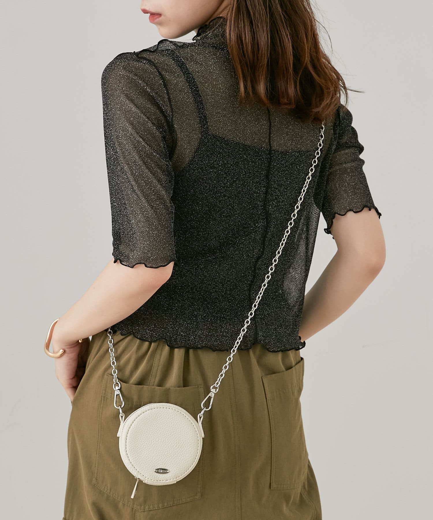 ・動くたびにきらきらするラメ感がかわいいトップスは、トレンドのメローデザインで女っぽく着こなせます。