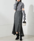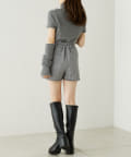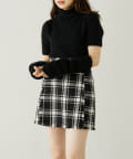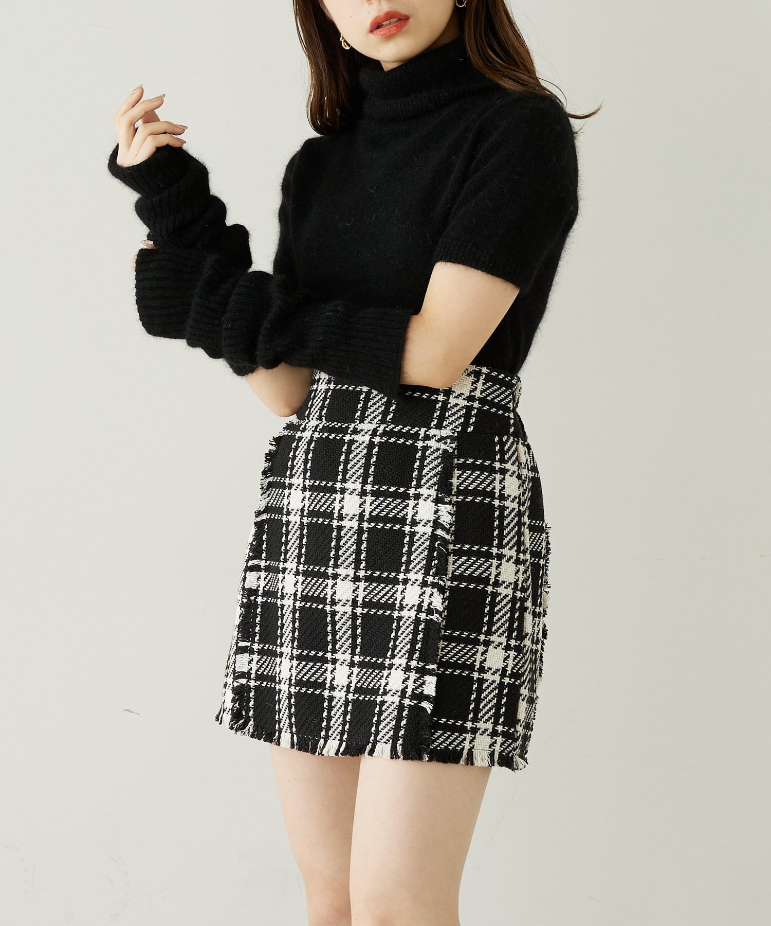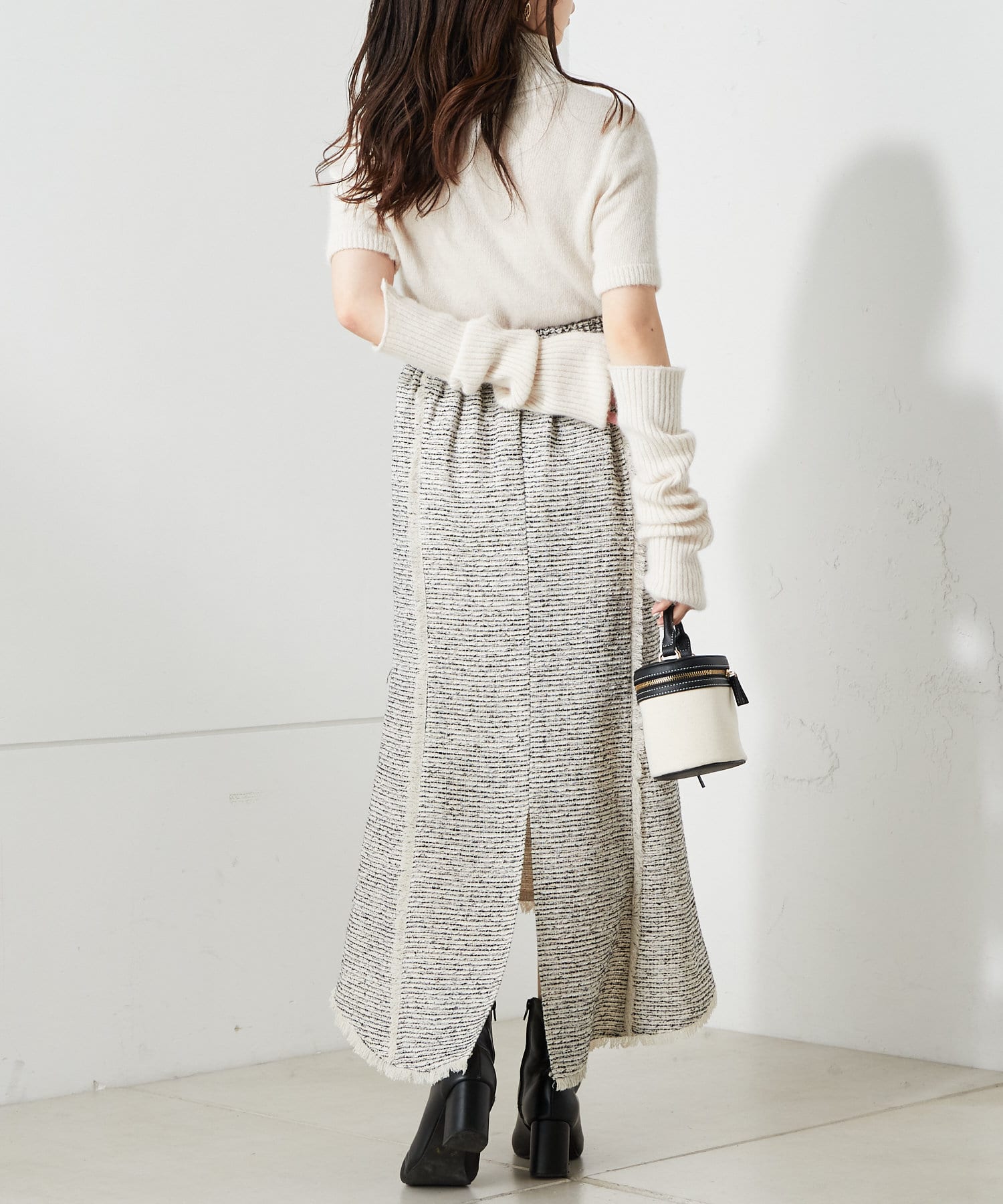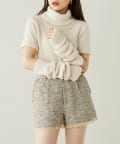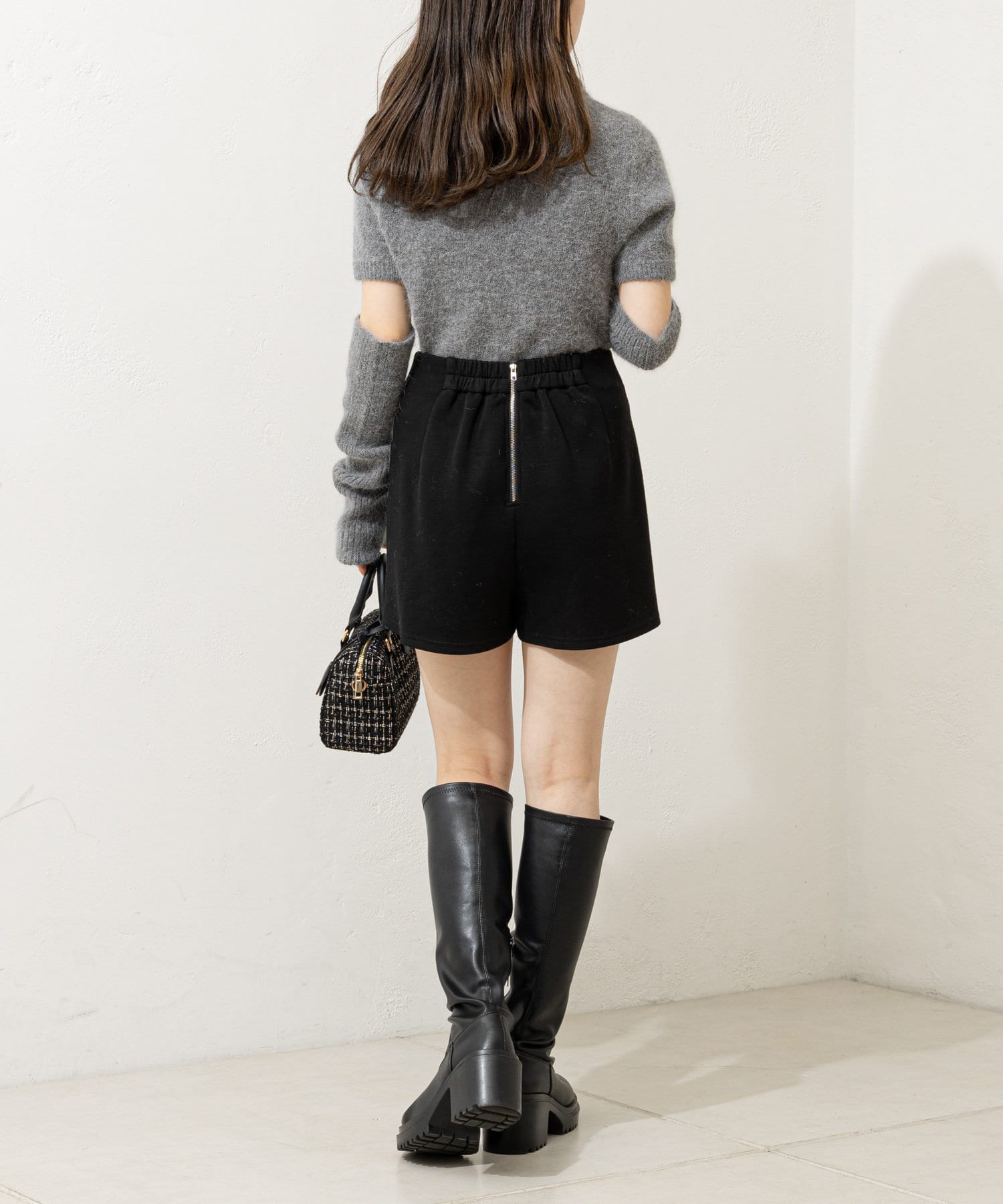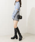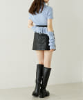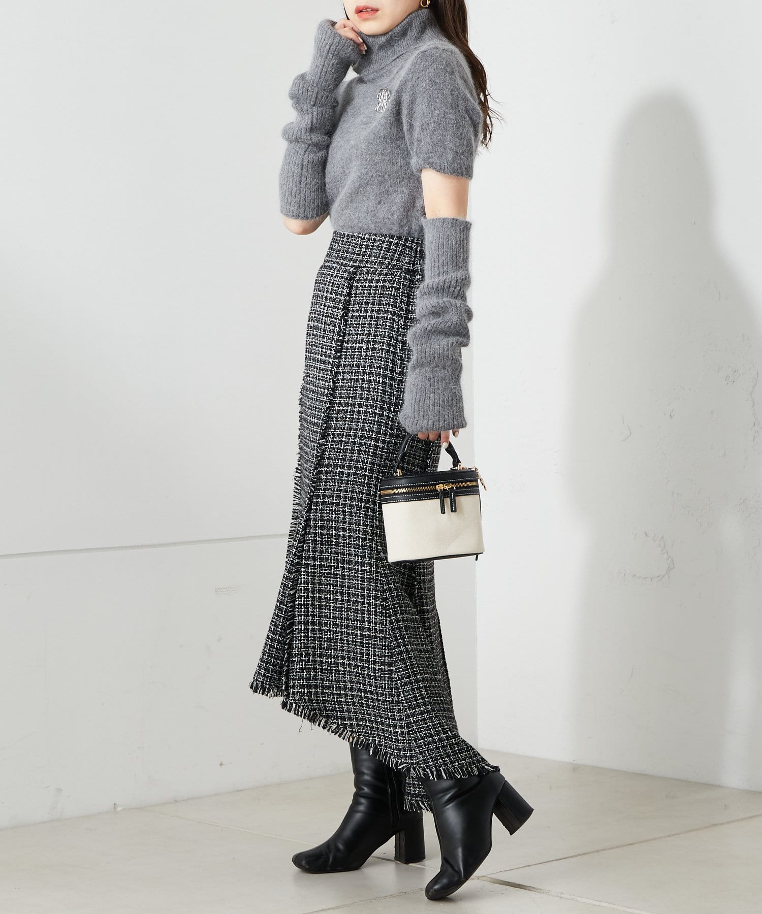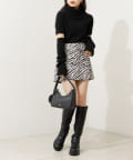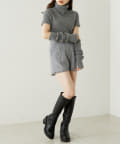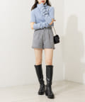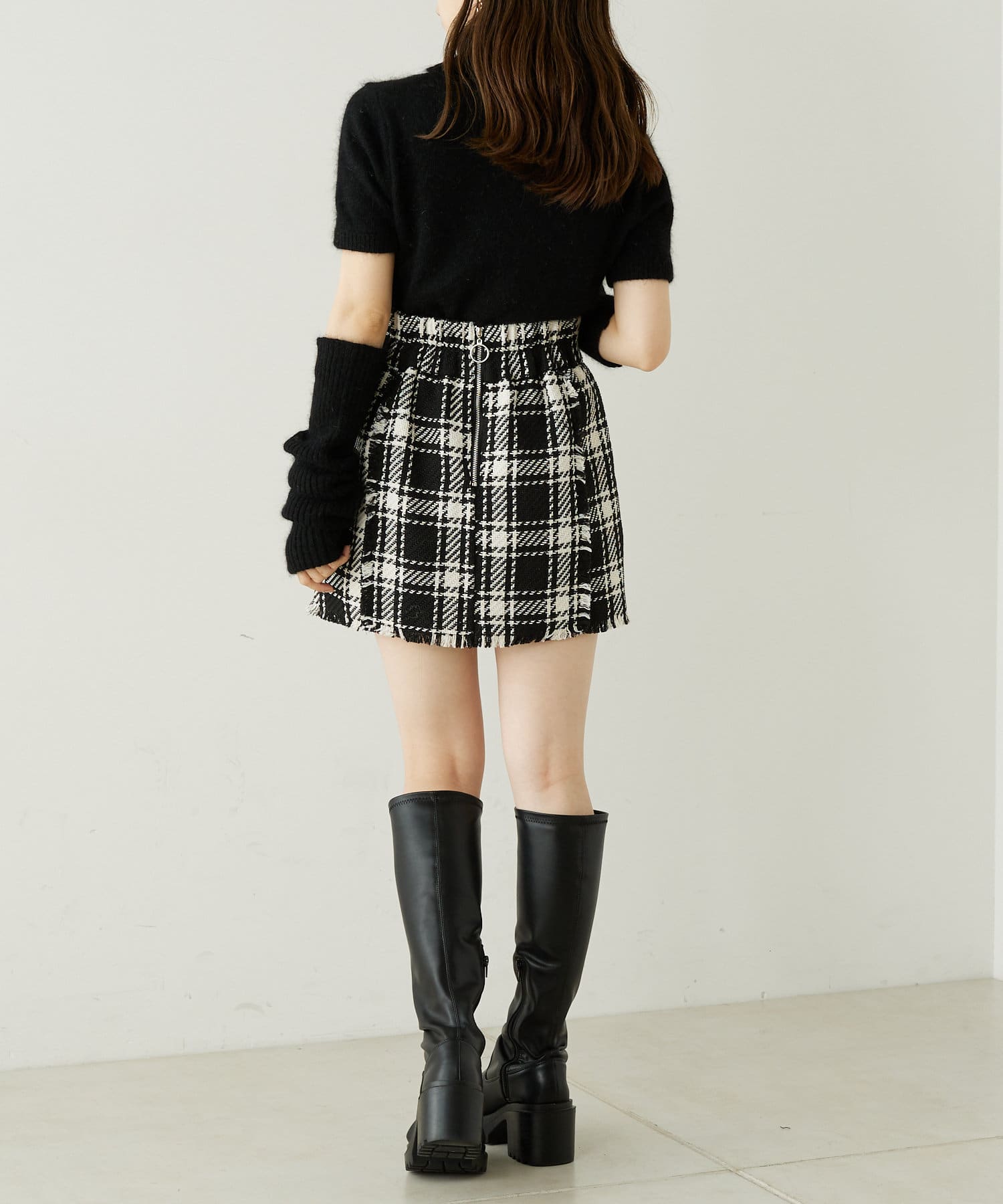 ・甘めに着こなすならプリーツスカートやツイードのショートパンツに、ロングブーツをプラスするとトレンドコーデに。