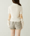 ・ボタンで袖が取り外しが出来るので半袖ニットとアームウォーマーデザインの2wayで着用ができ、今から冬までロングシーズンお使いいただけます。