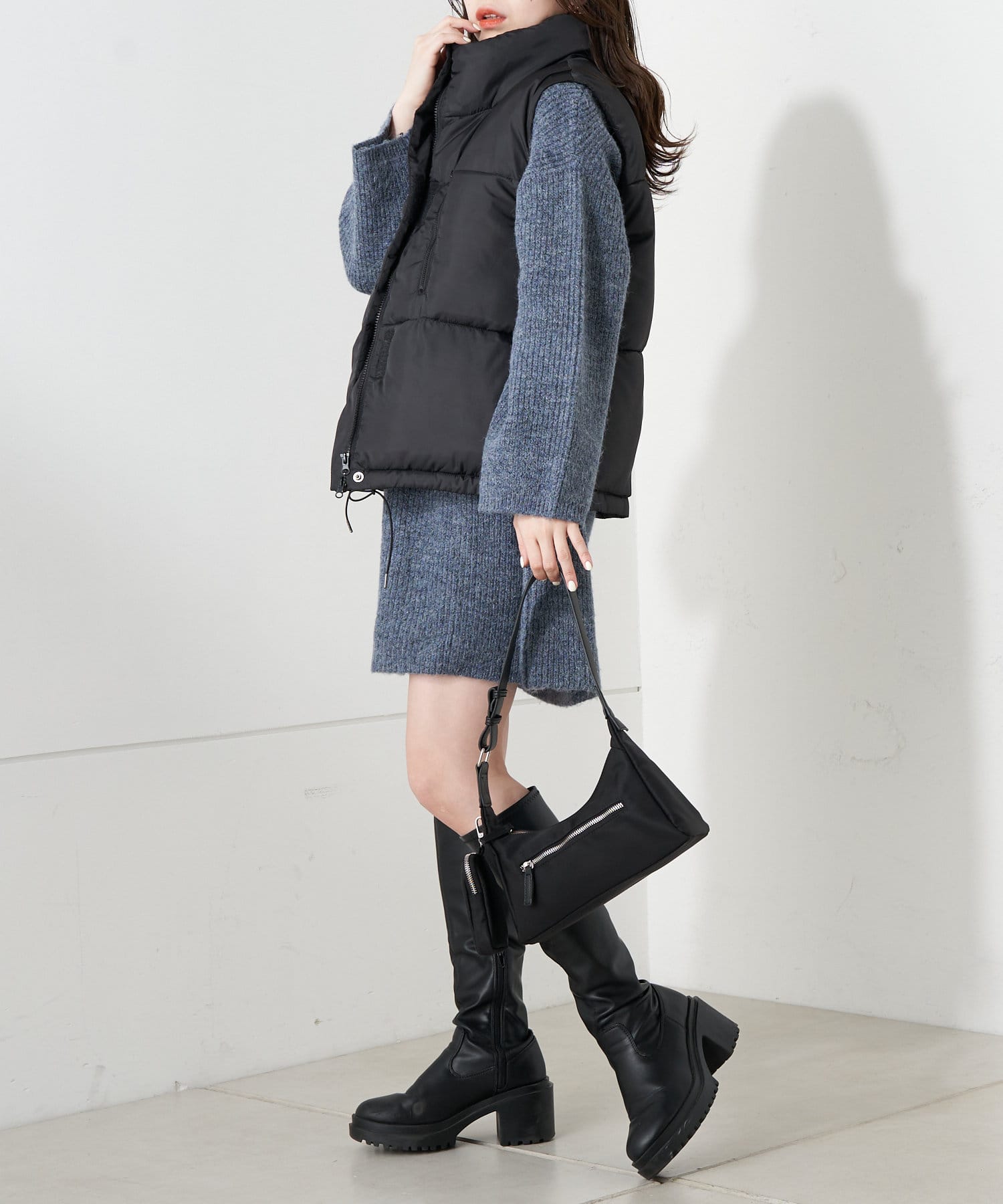 甘めなコーデにナイロン素材で辛さをプラスするのがおすすめです。