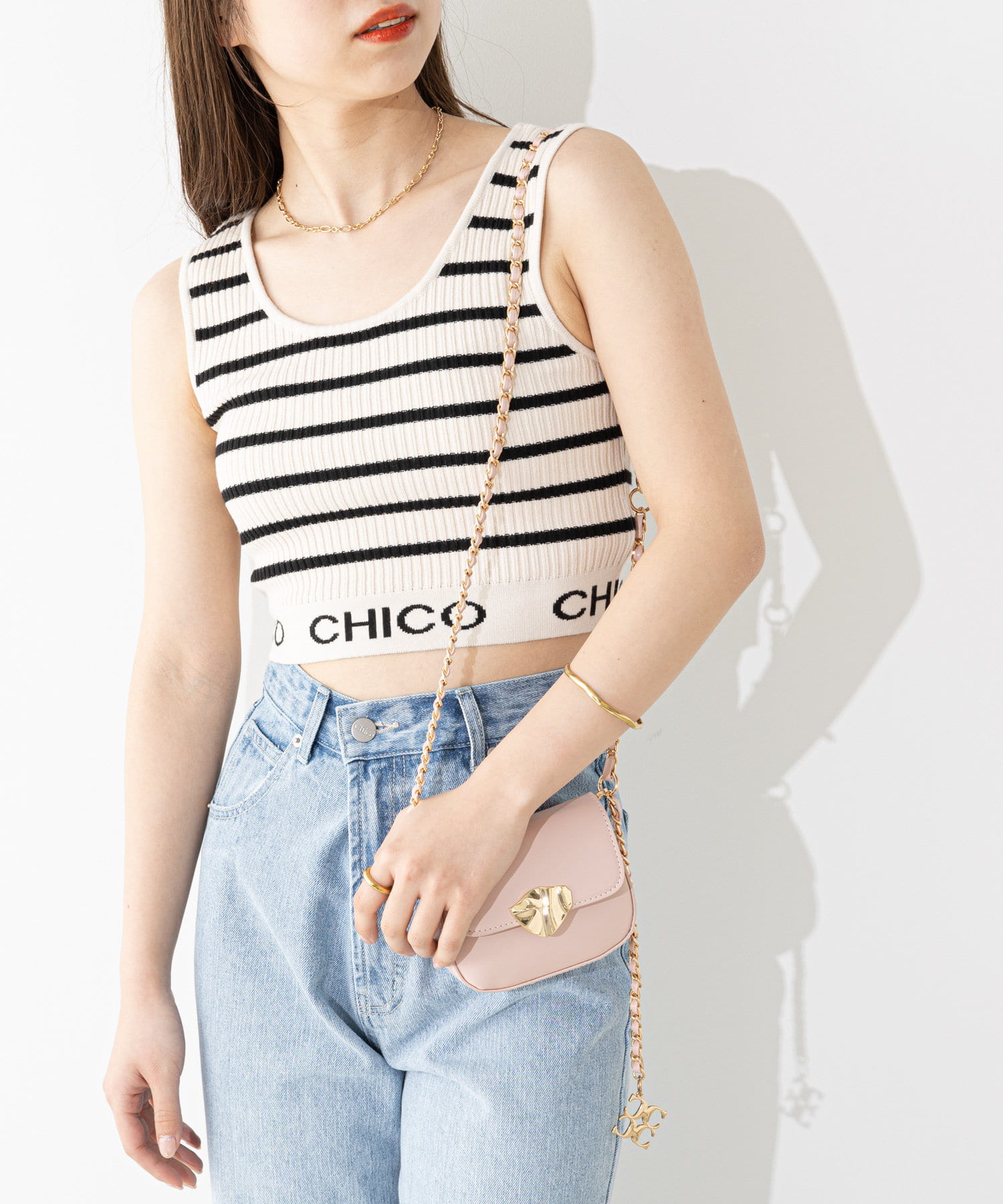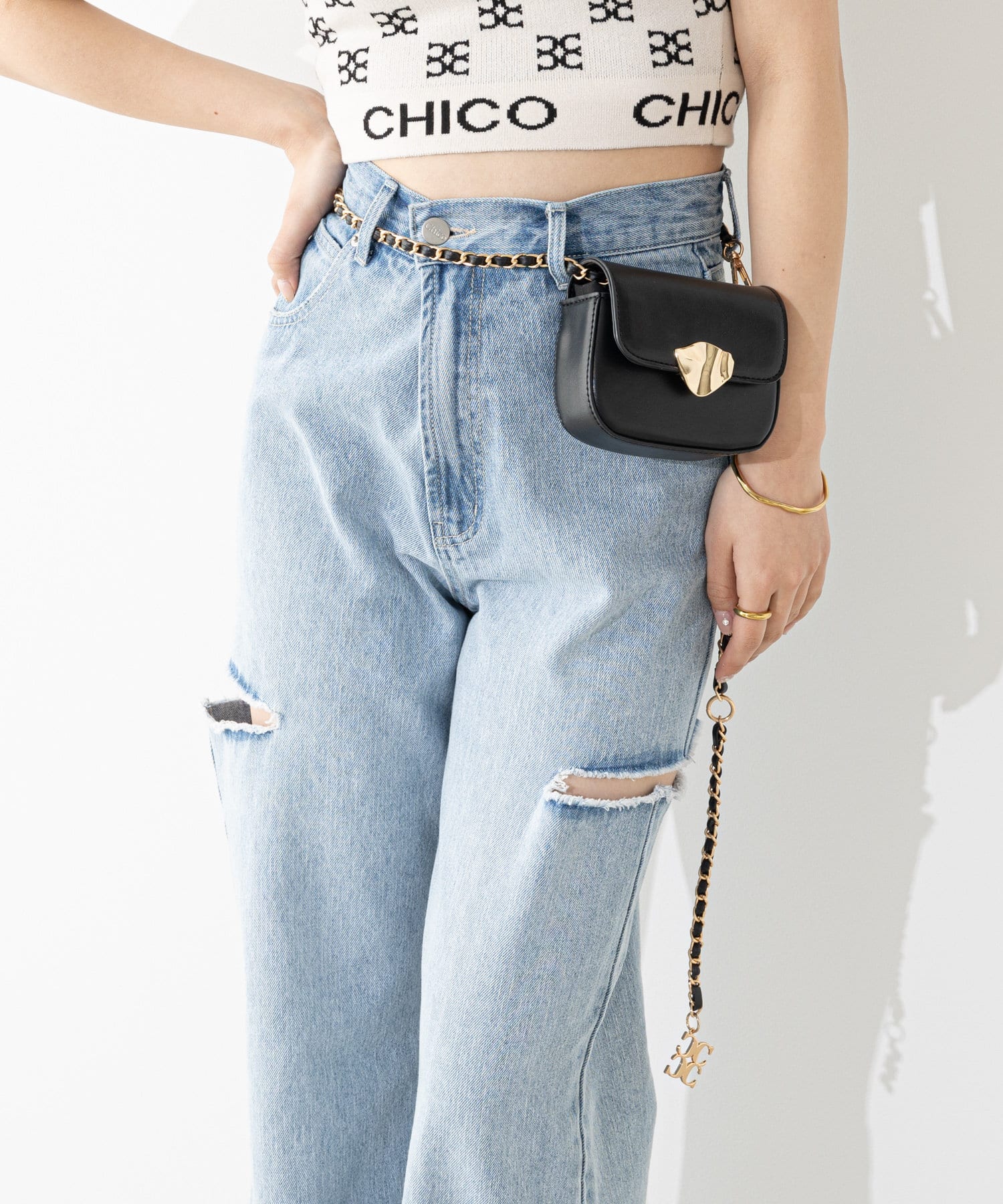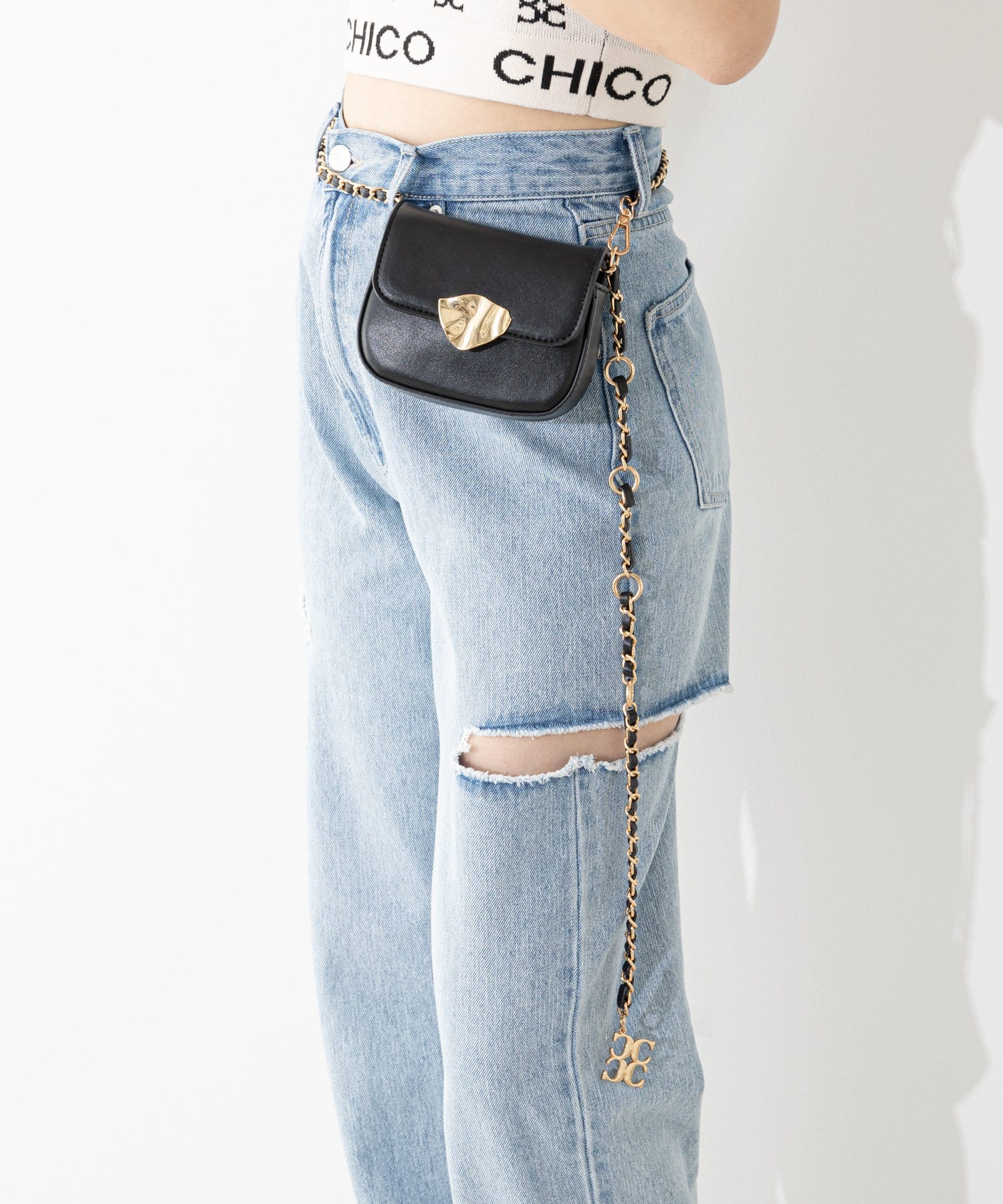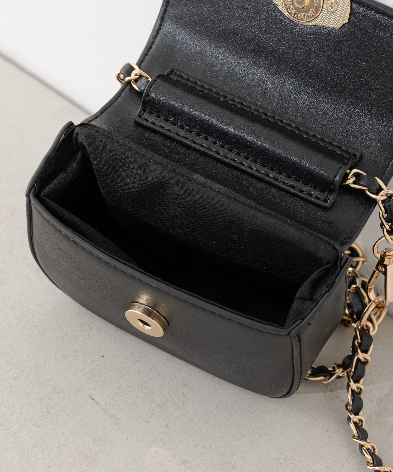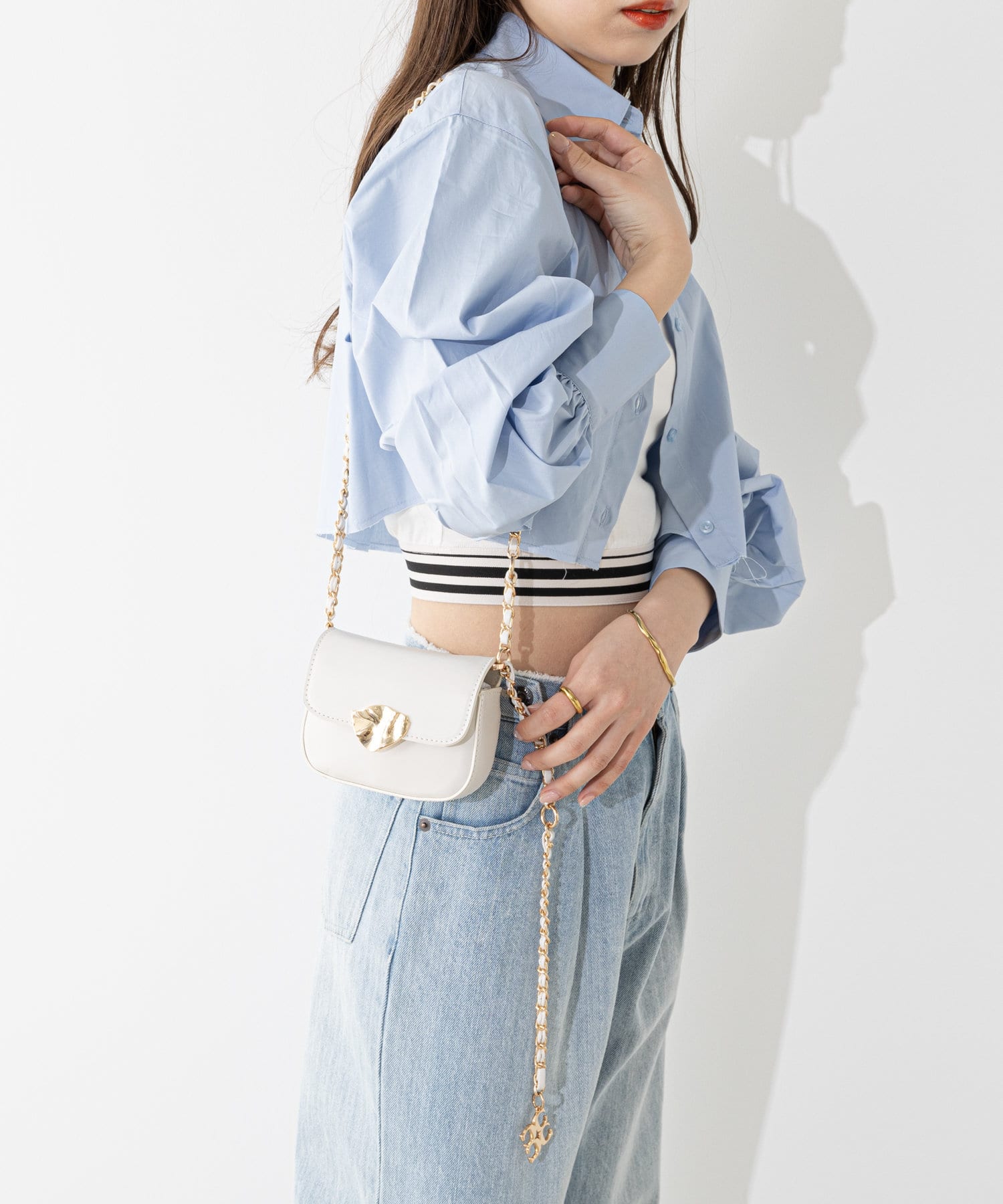 華奢なチェーンとミニバッグが女性らしい印象に。