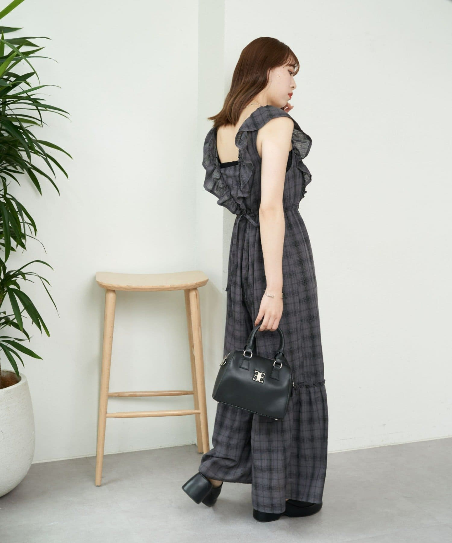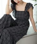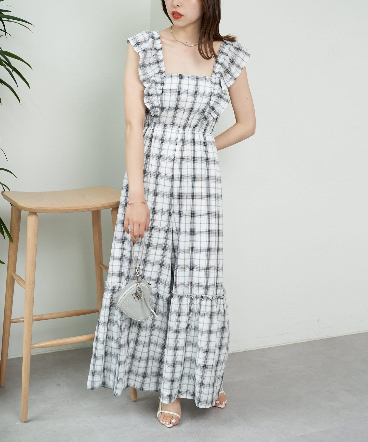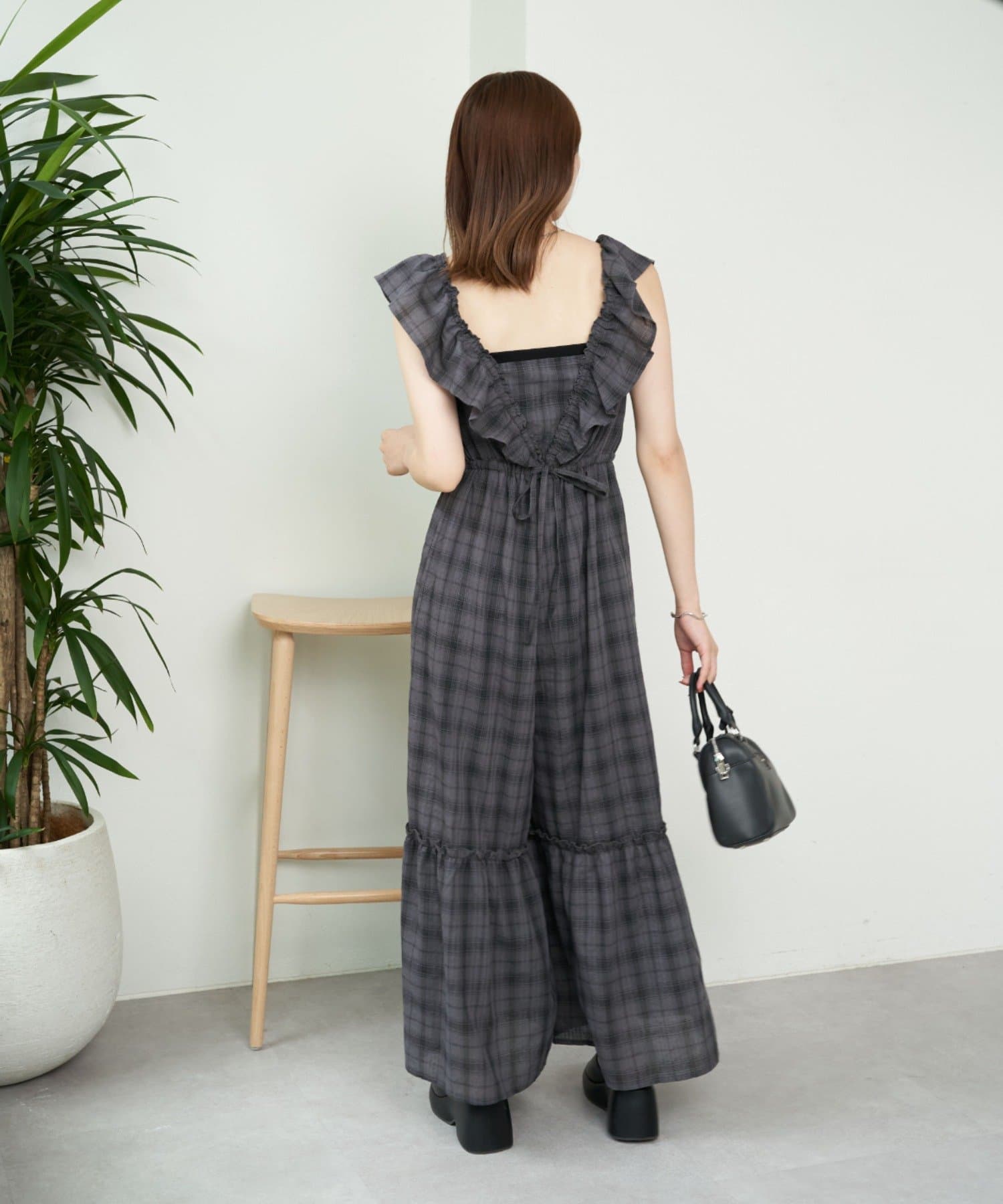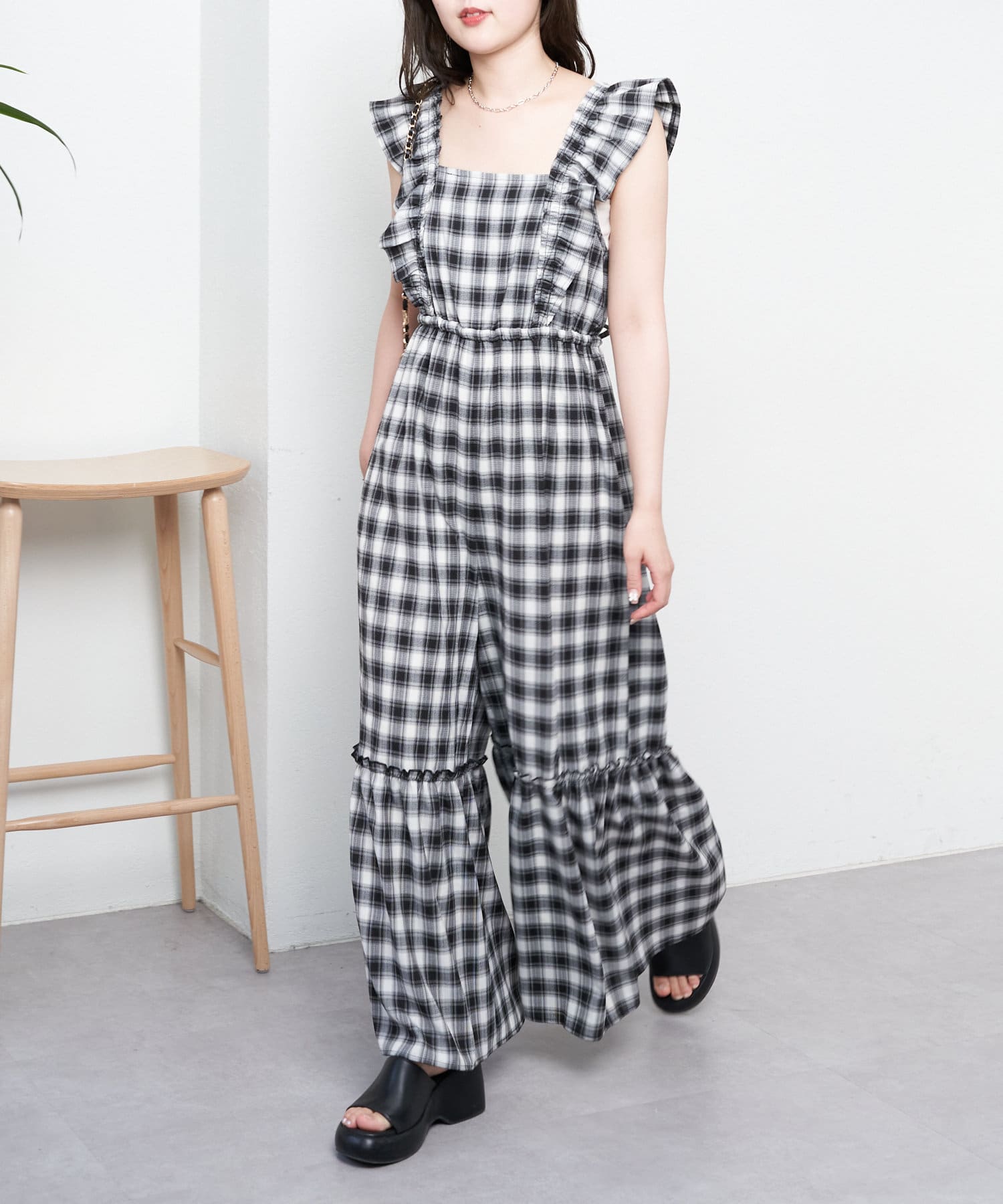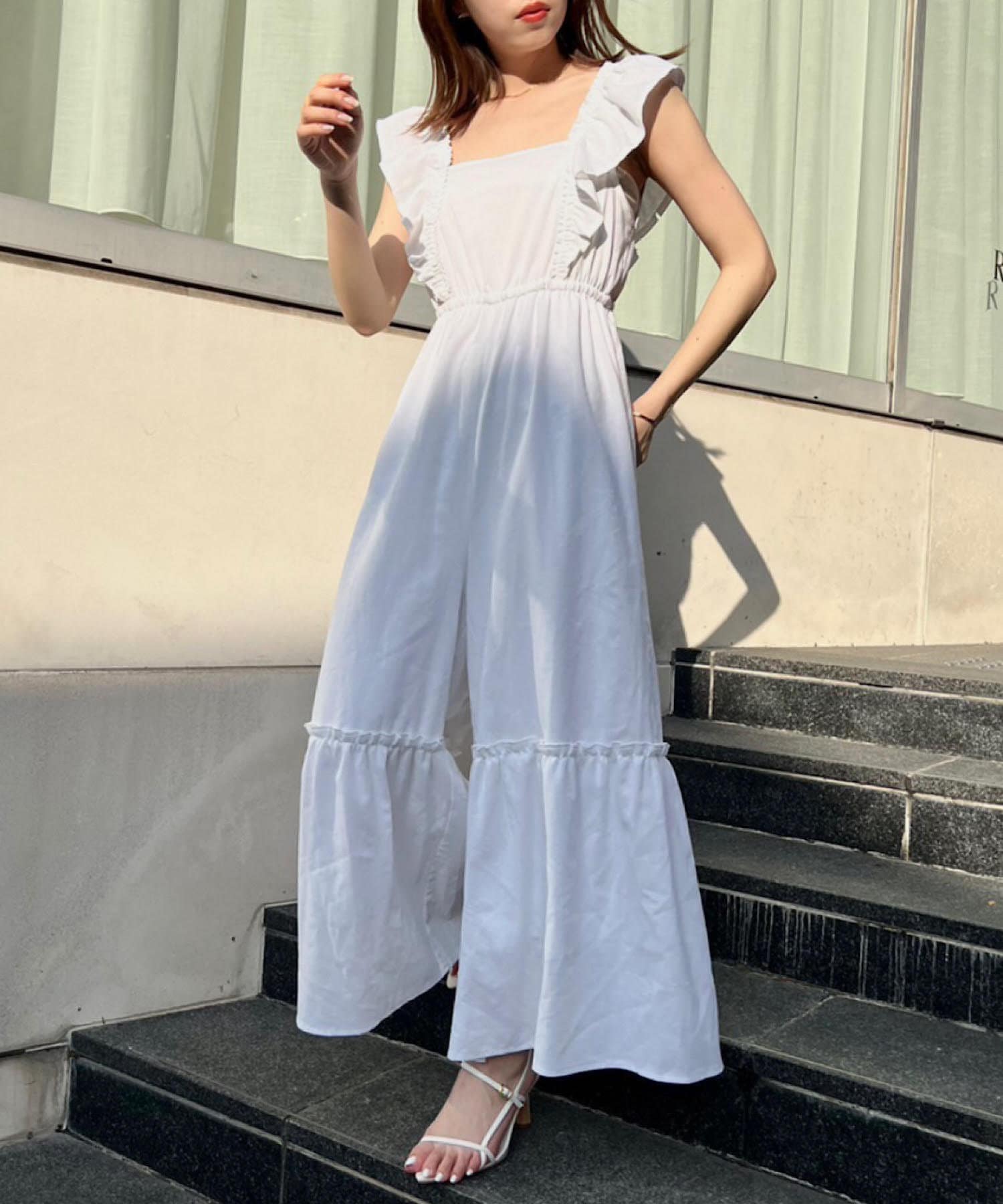 大胆なフリルが目を惹くサロペ