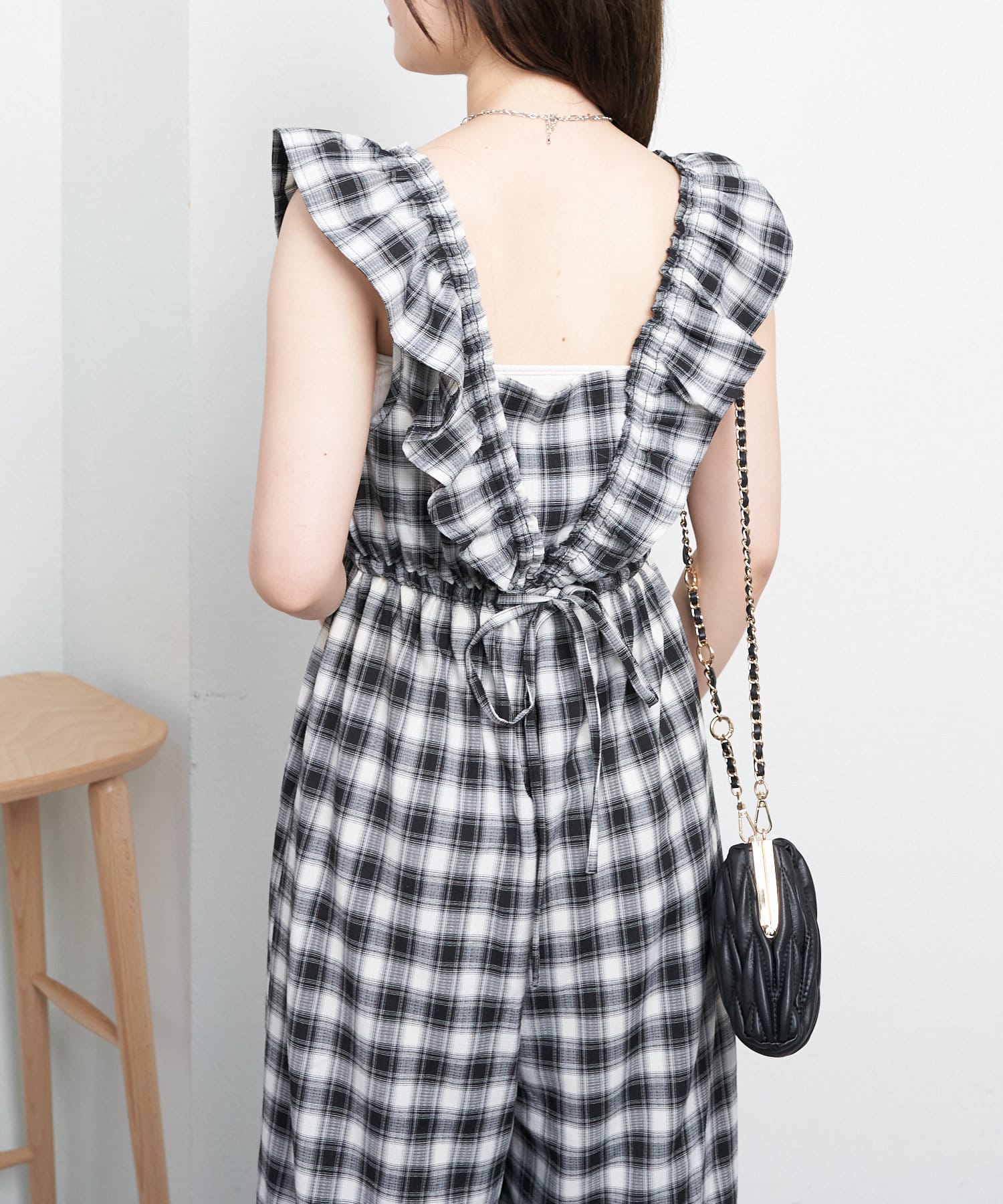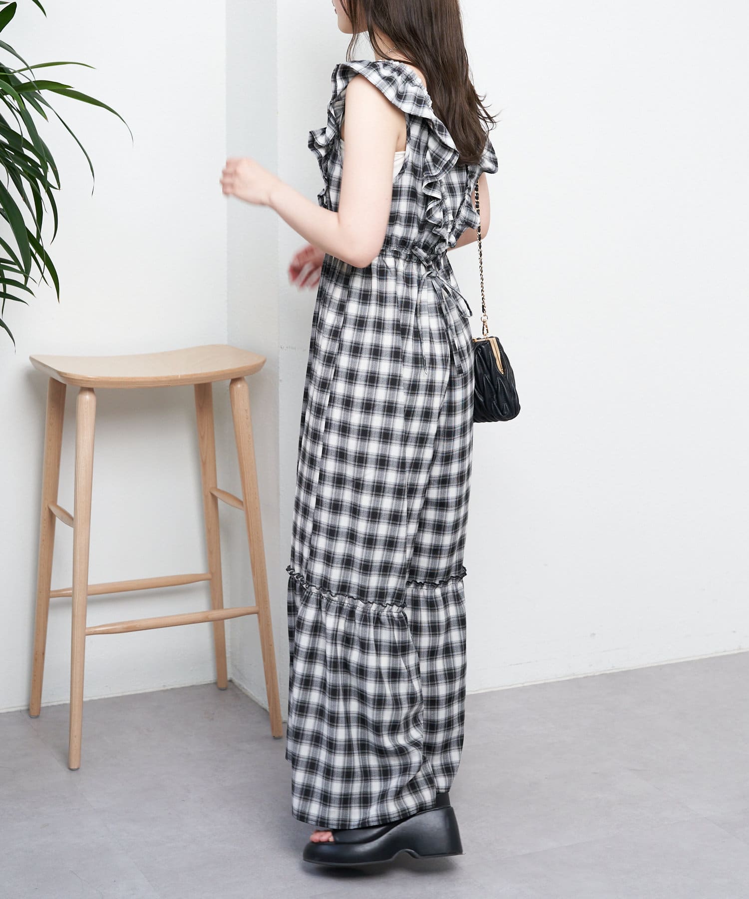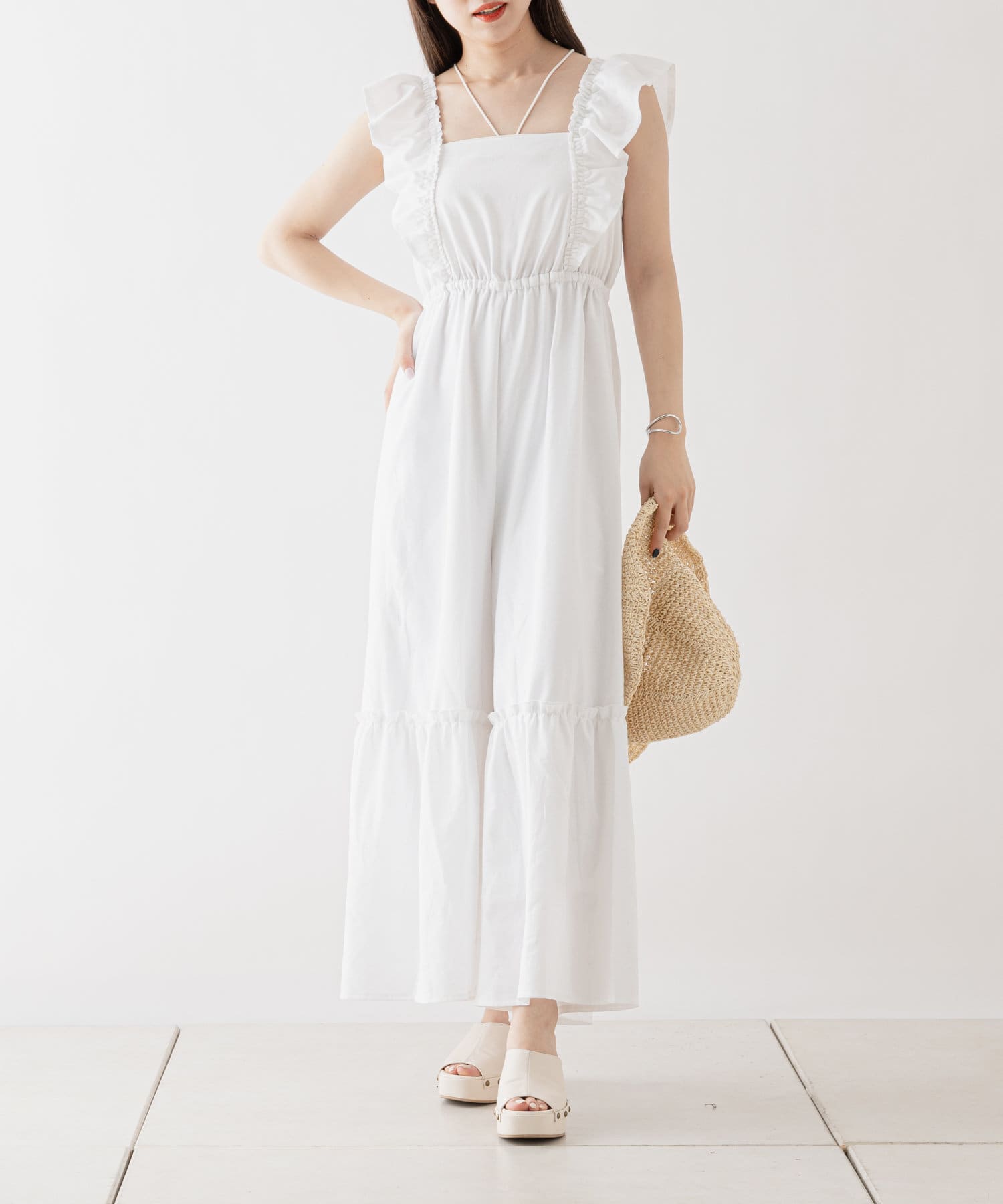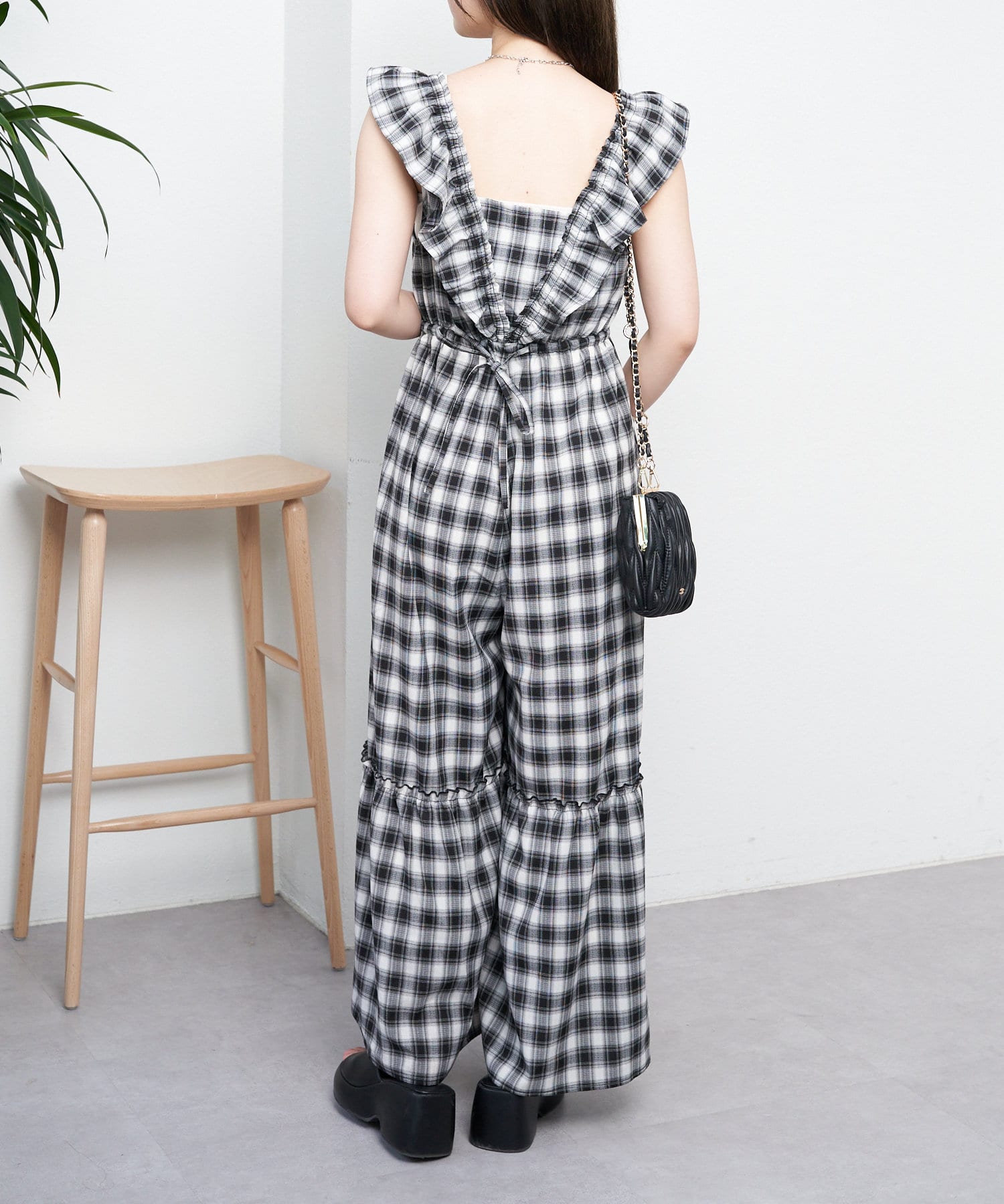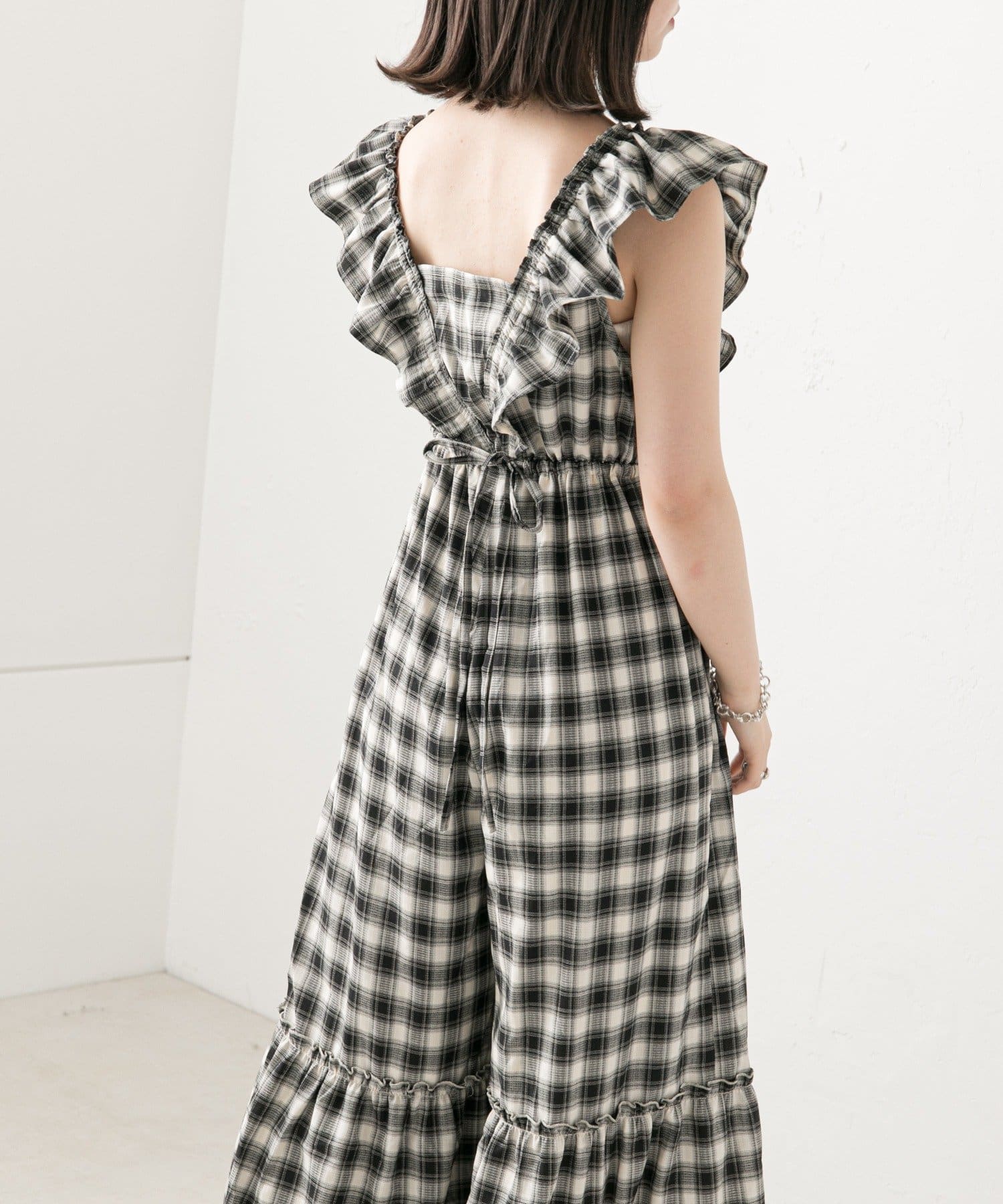 大胆なフリルが目を惹くサロペ
